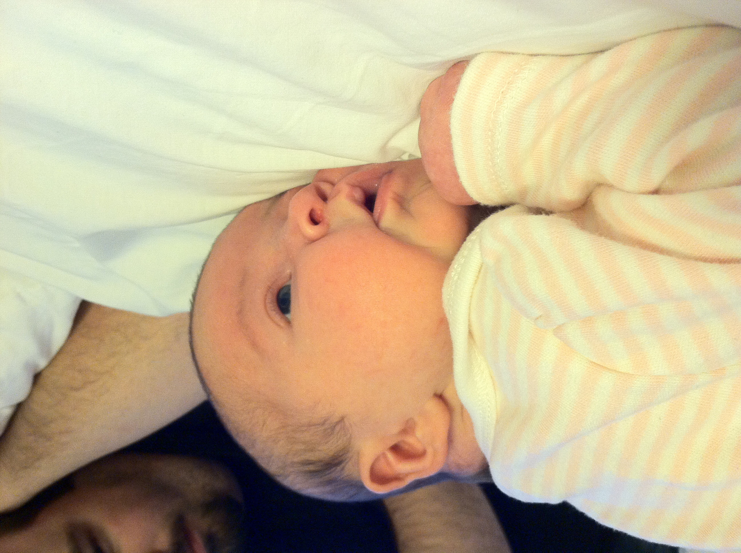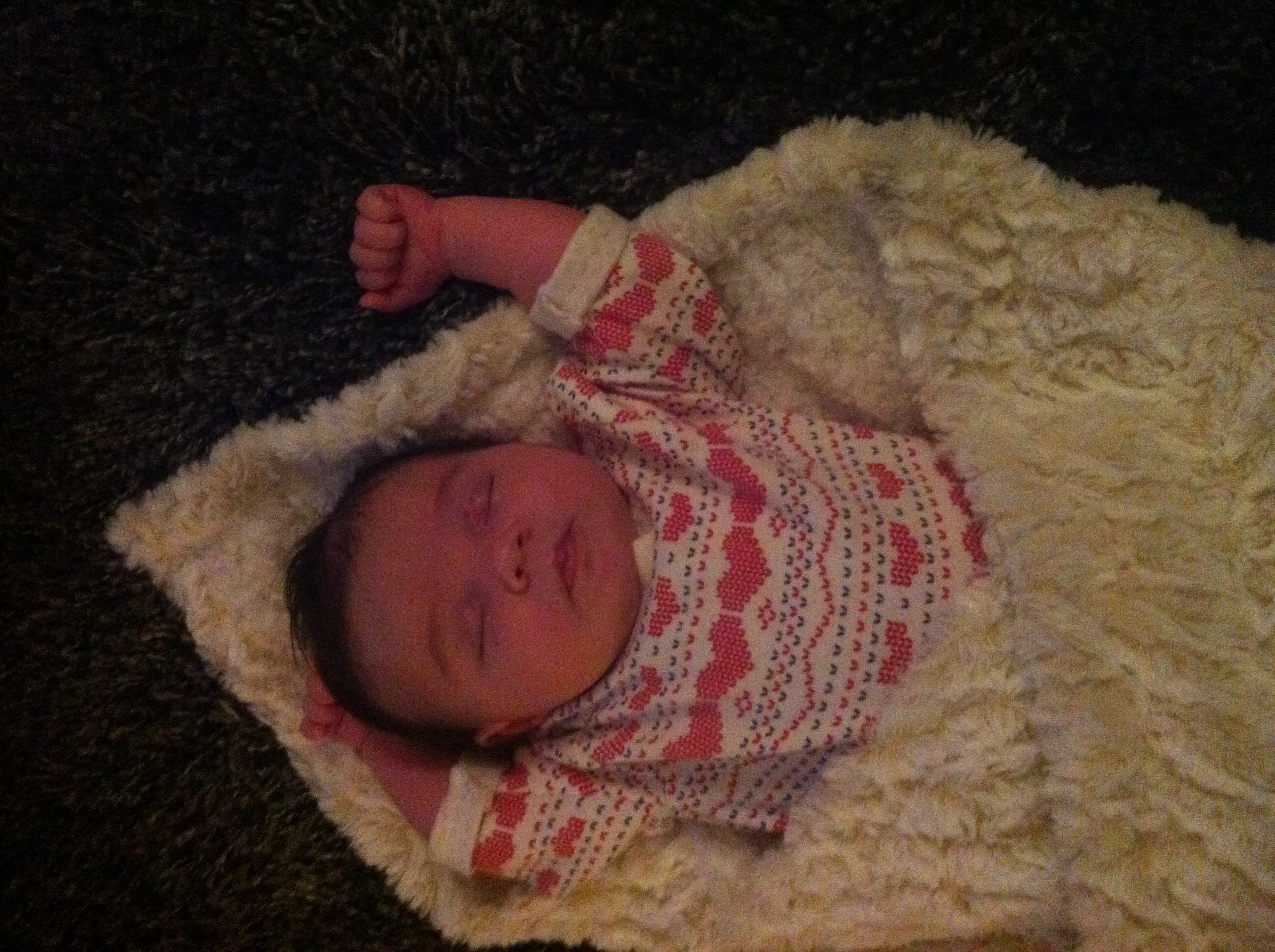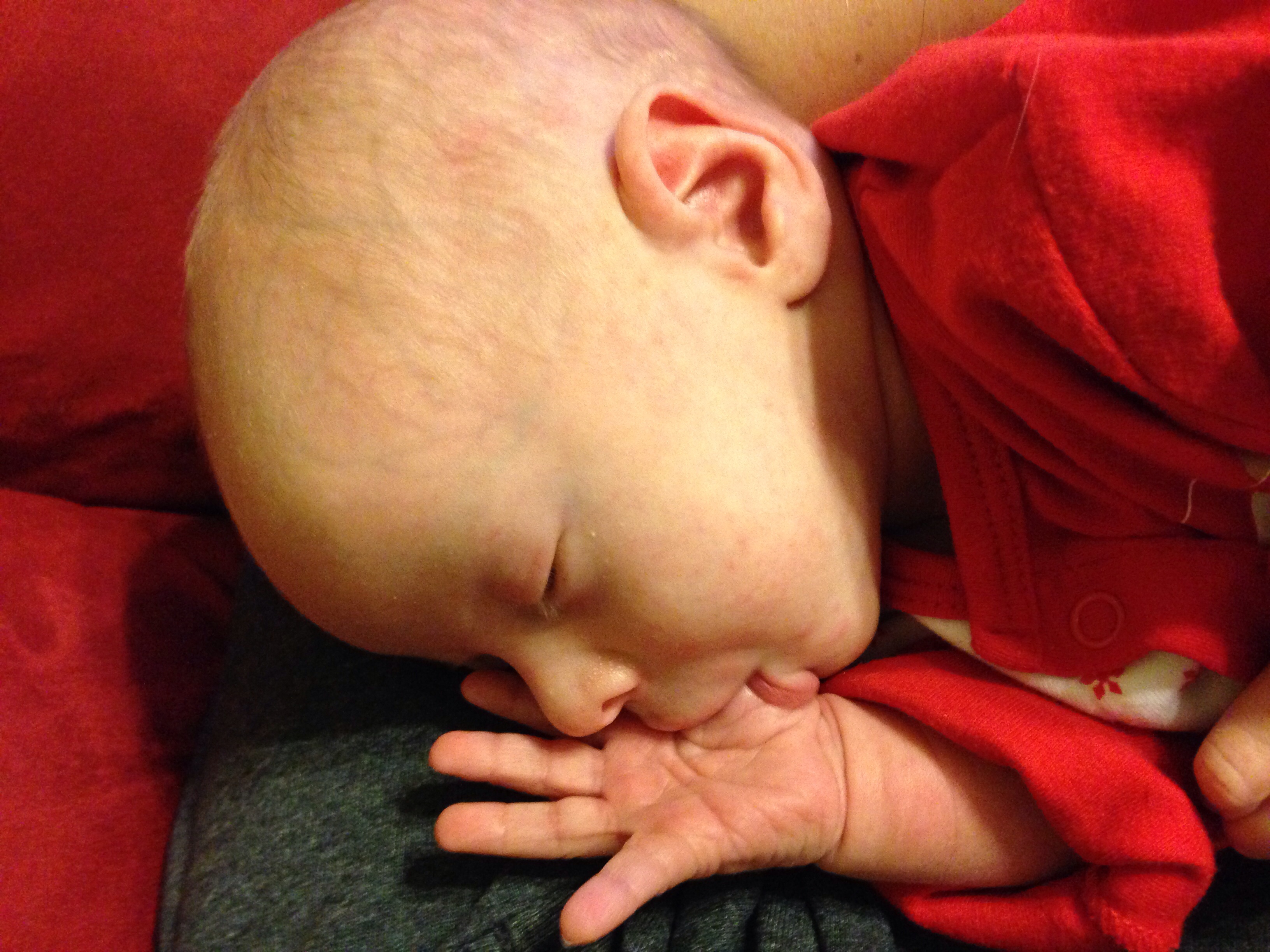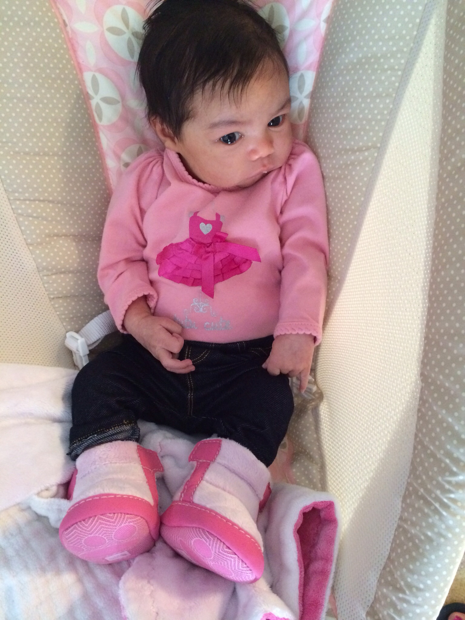 I'm going to take pictures of her on this couch monthly through the first year to see how she grows!