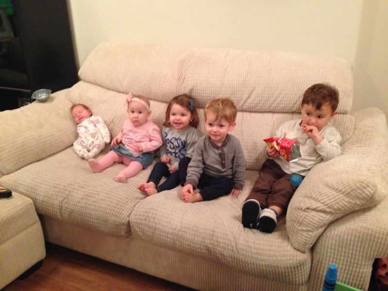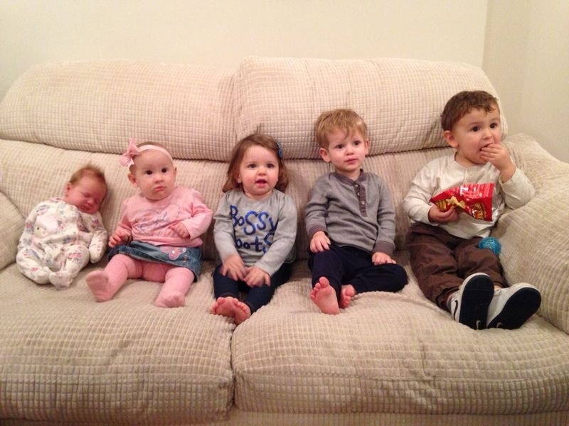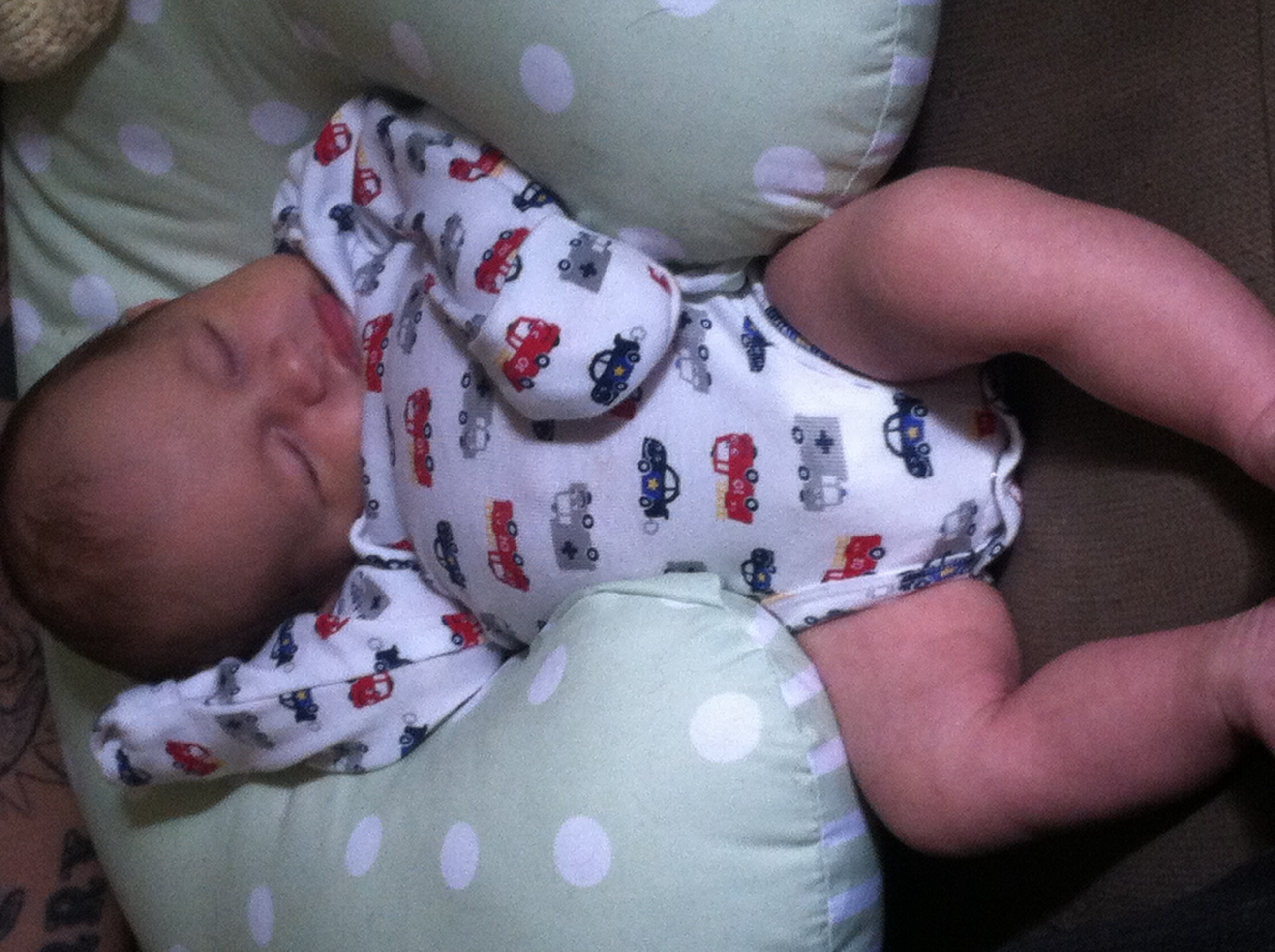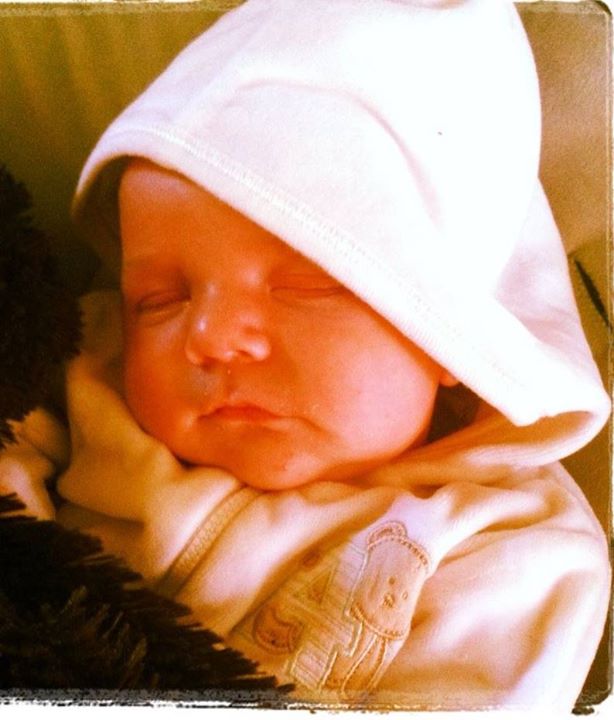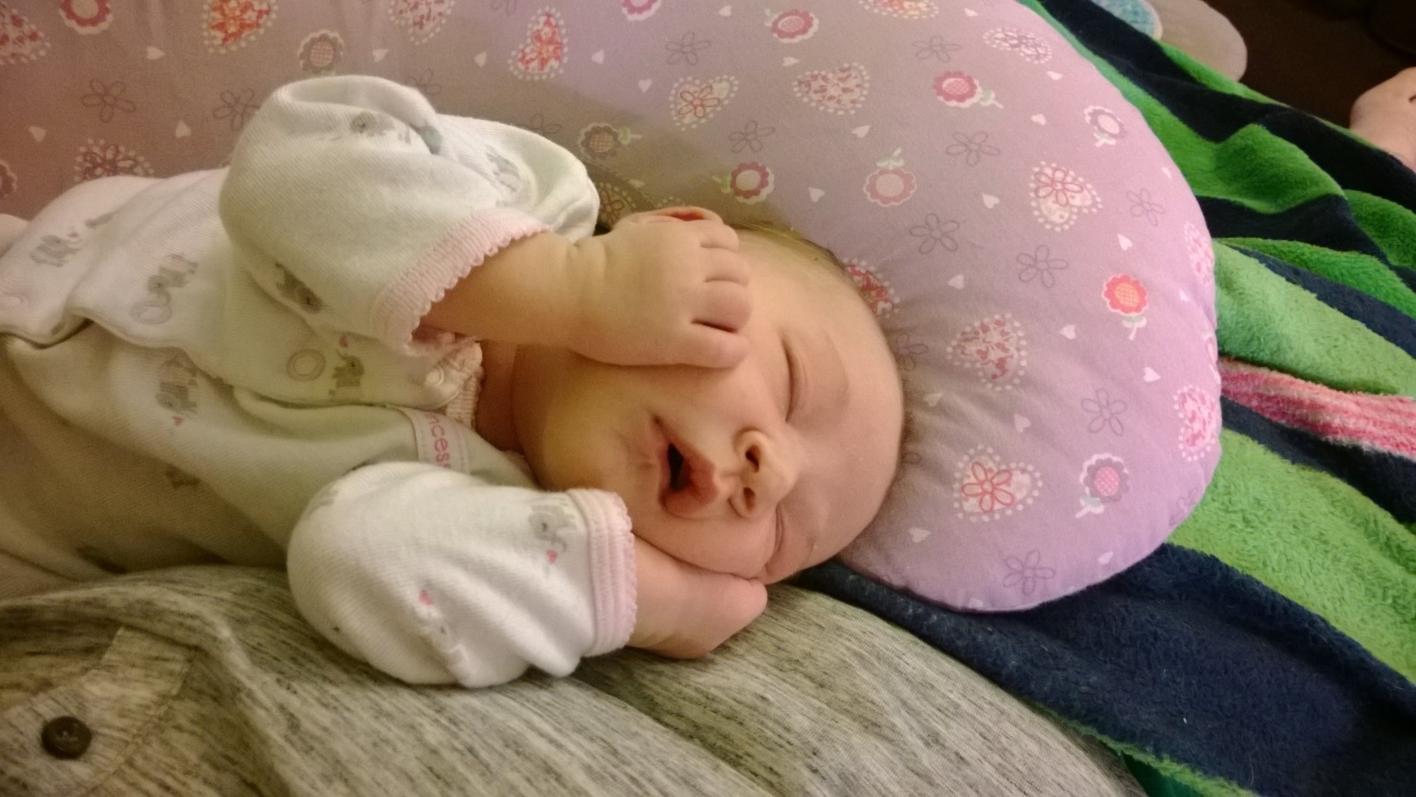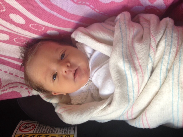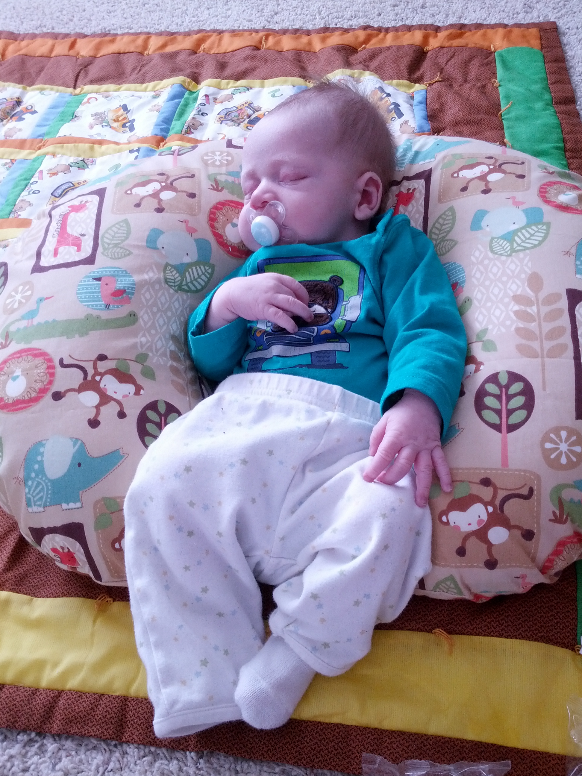 I'm going to take pictures of her on this couch monthly through the first year to see how she grows!