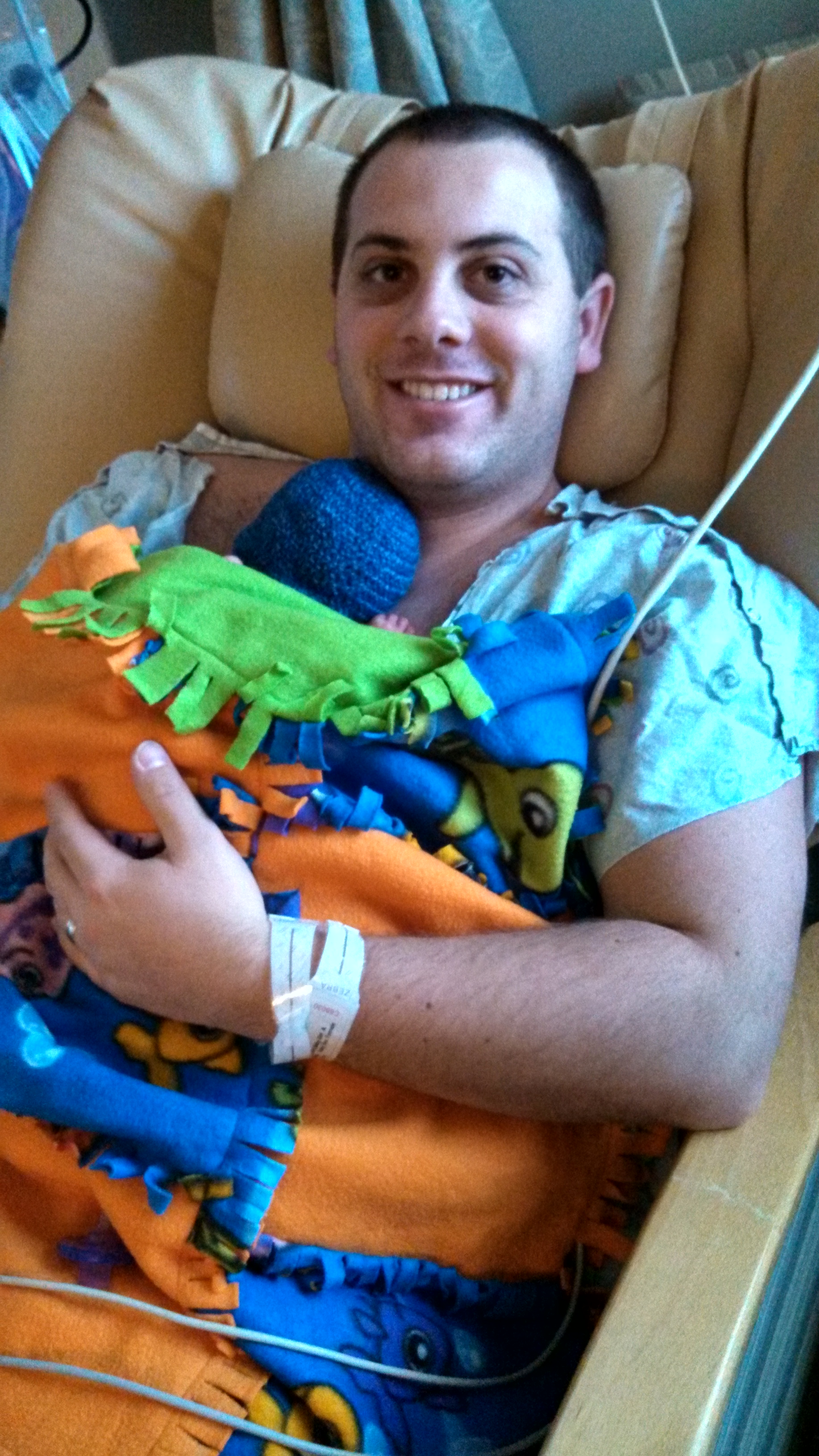 Bentley and Karley continue to make amazing progress! They are both on room air already. They both have gotten breast milk. They got introduced to the bilirubin lights as their levels were elevated. DH and I got to hold them for the first time today doing kangaroo care!