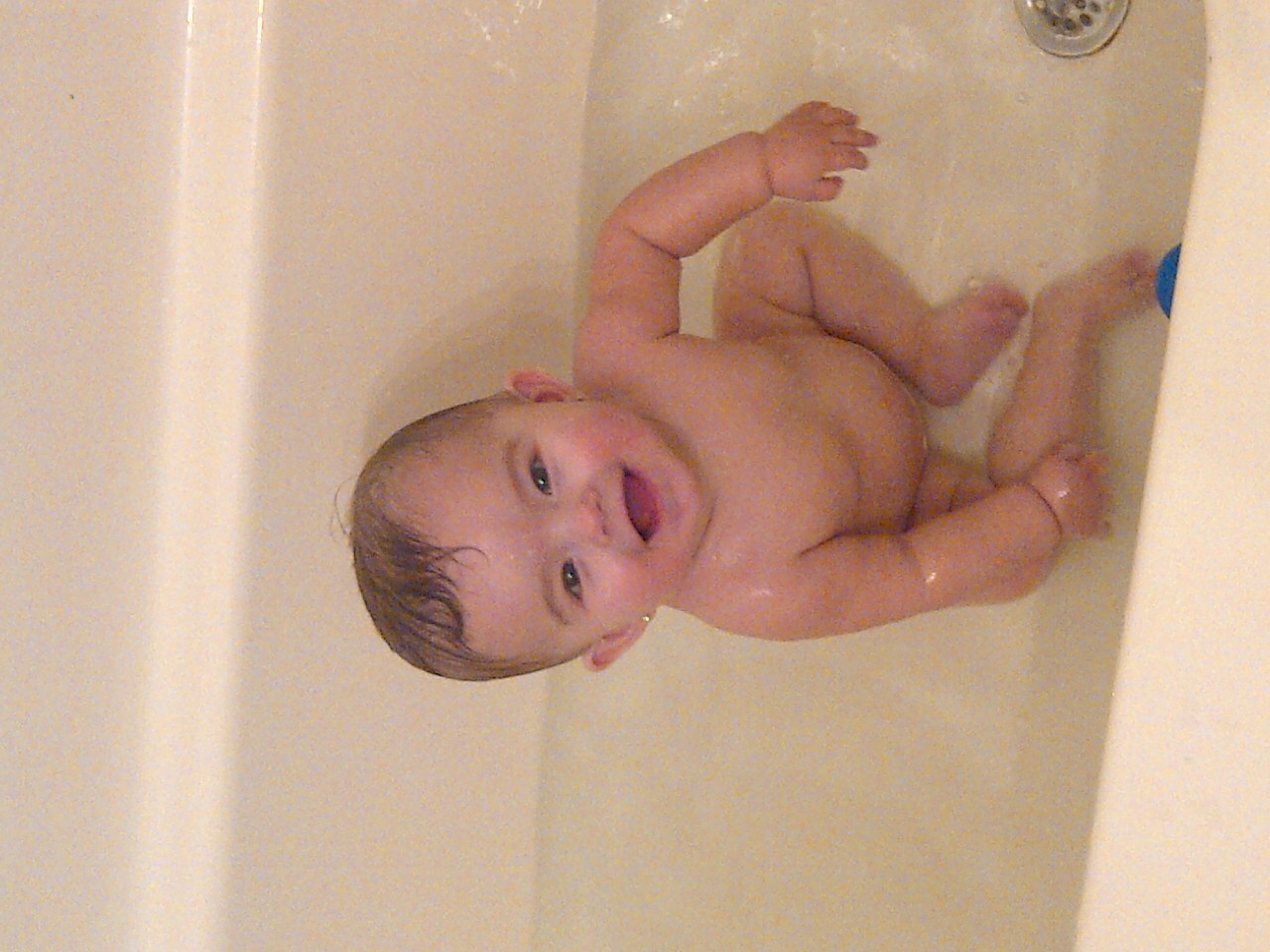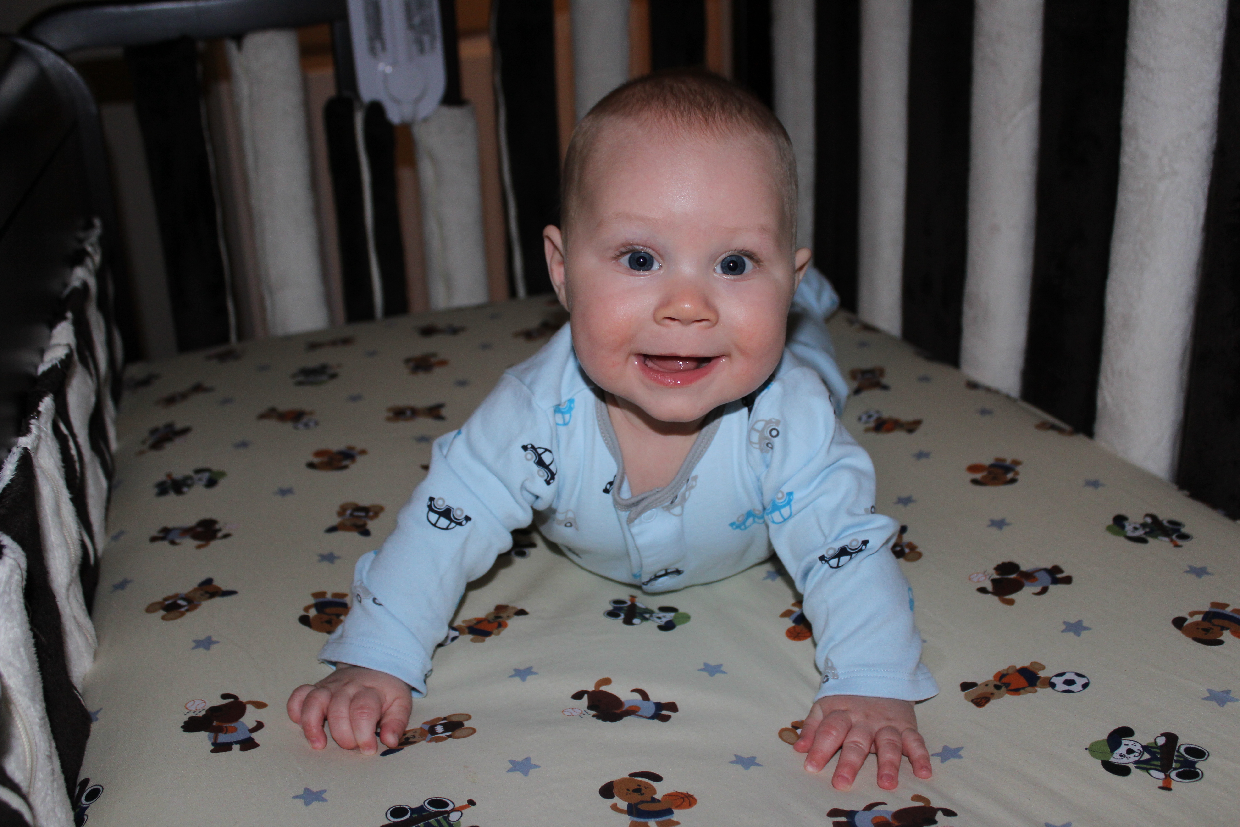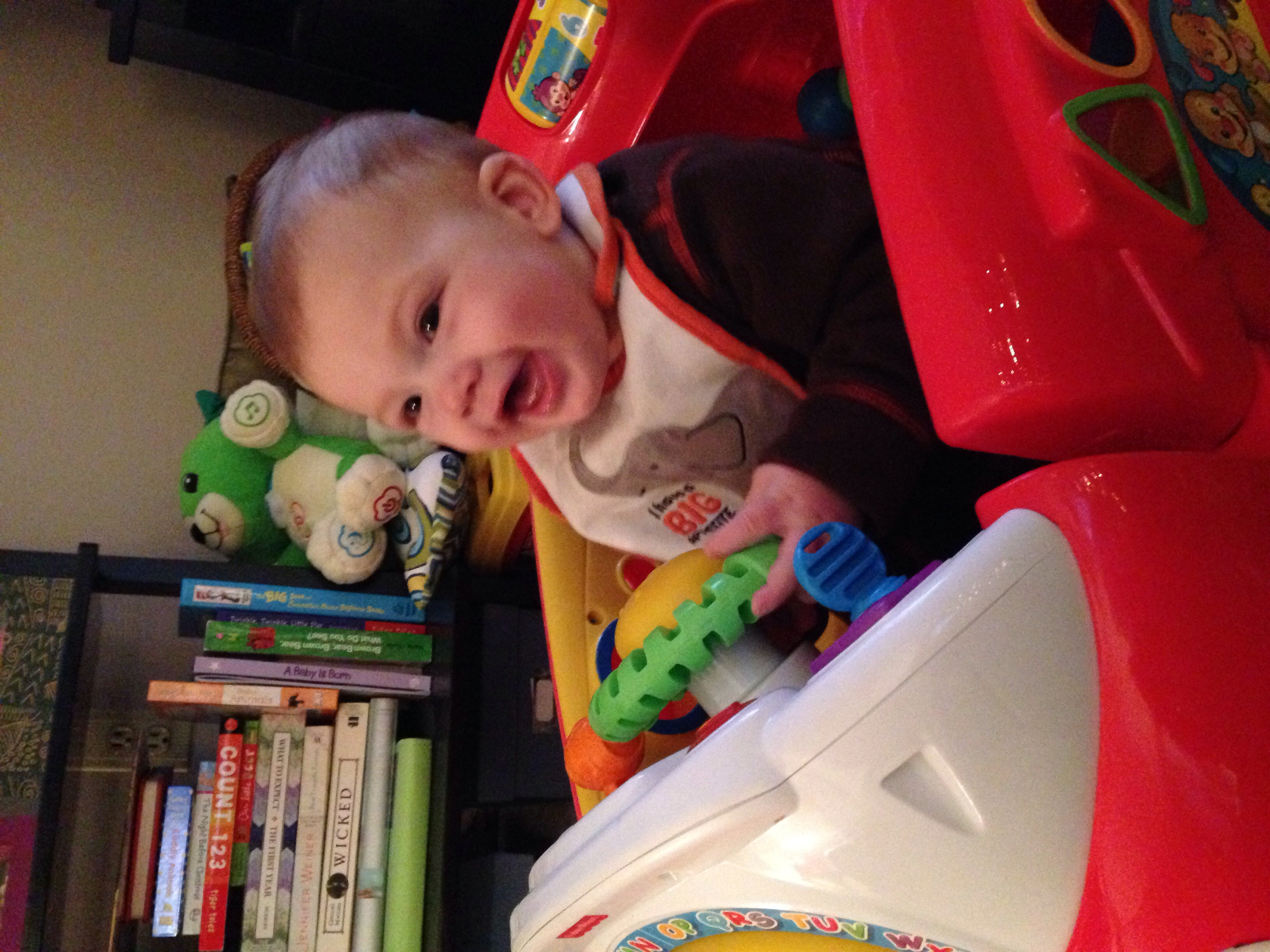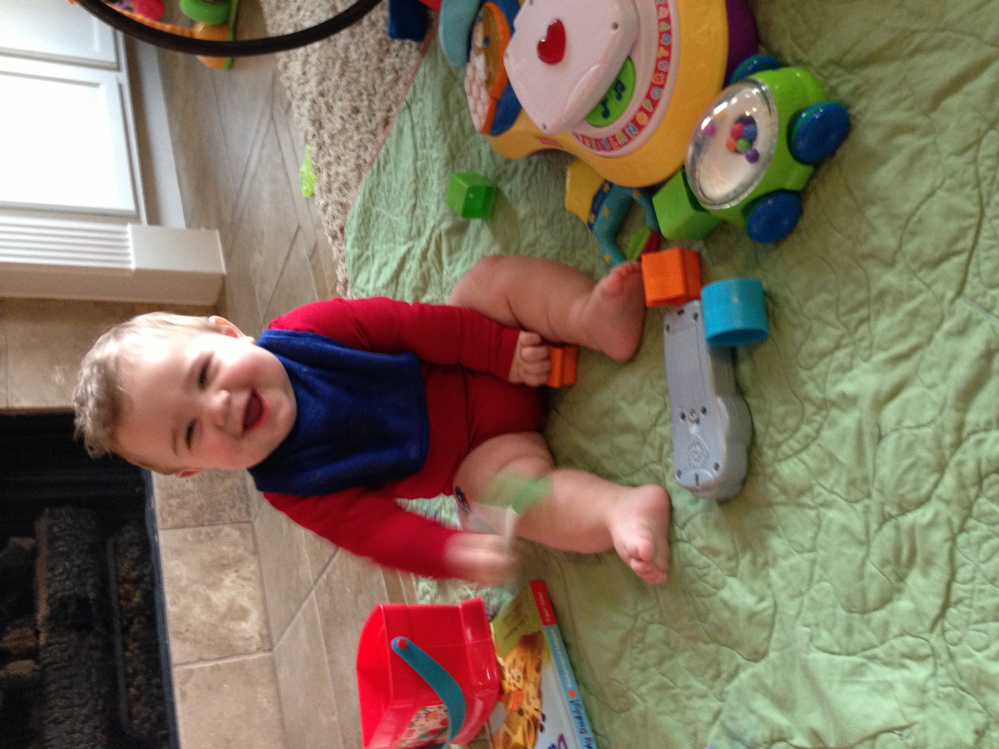 This was after his shots yesterday when he was tricking Mommy into thinking he wasn't going to be effected by them. Little turkey.