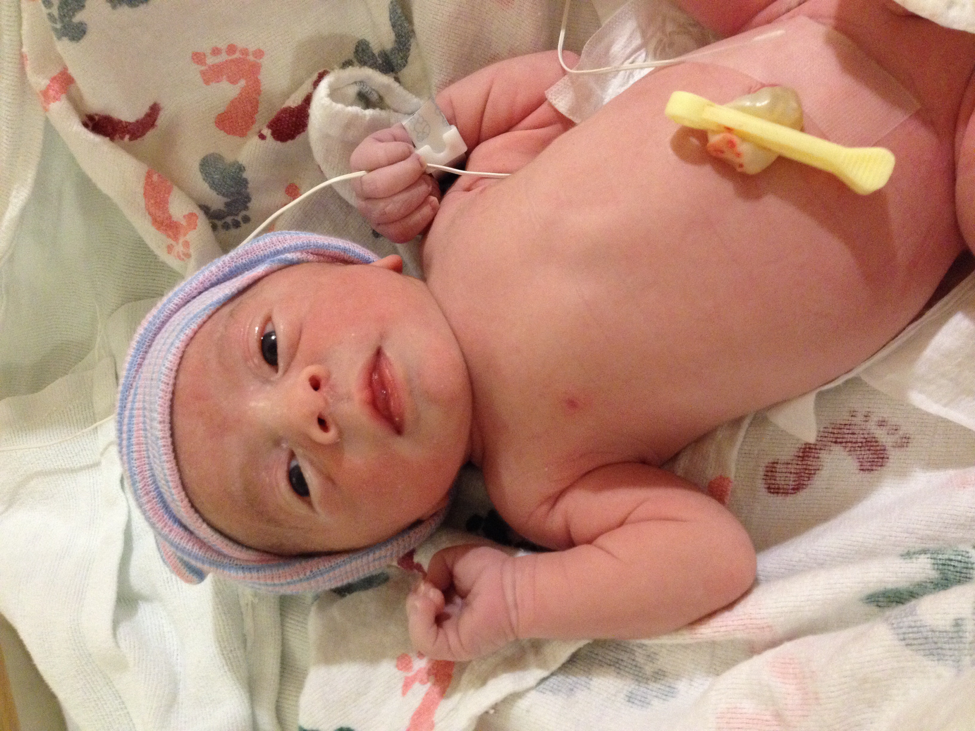 arrived on Friday January 11, at 2:29pm via repeat csection. My 38 week ultrasound showed little fetal growth so instead of waiting for something to go wrong, they wanted to deliver. I got to actually be awake for this delivery and DH got to be there which is what we really wanted this time around.