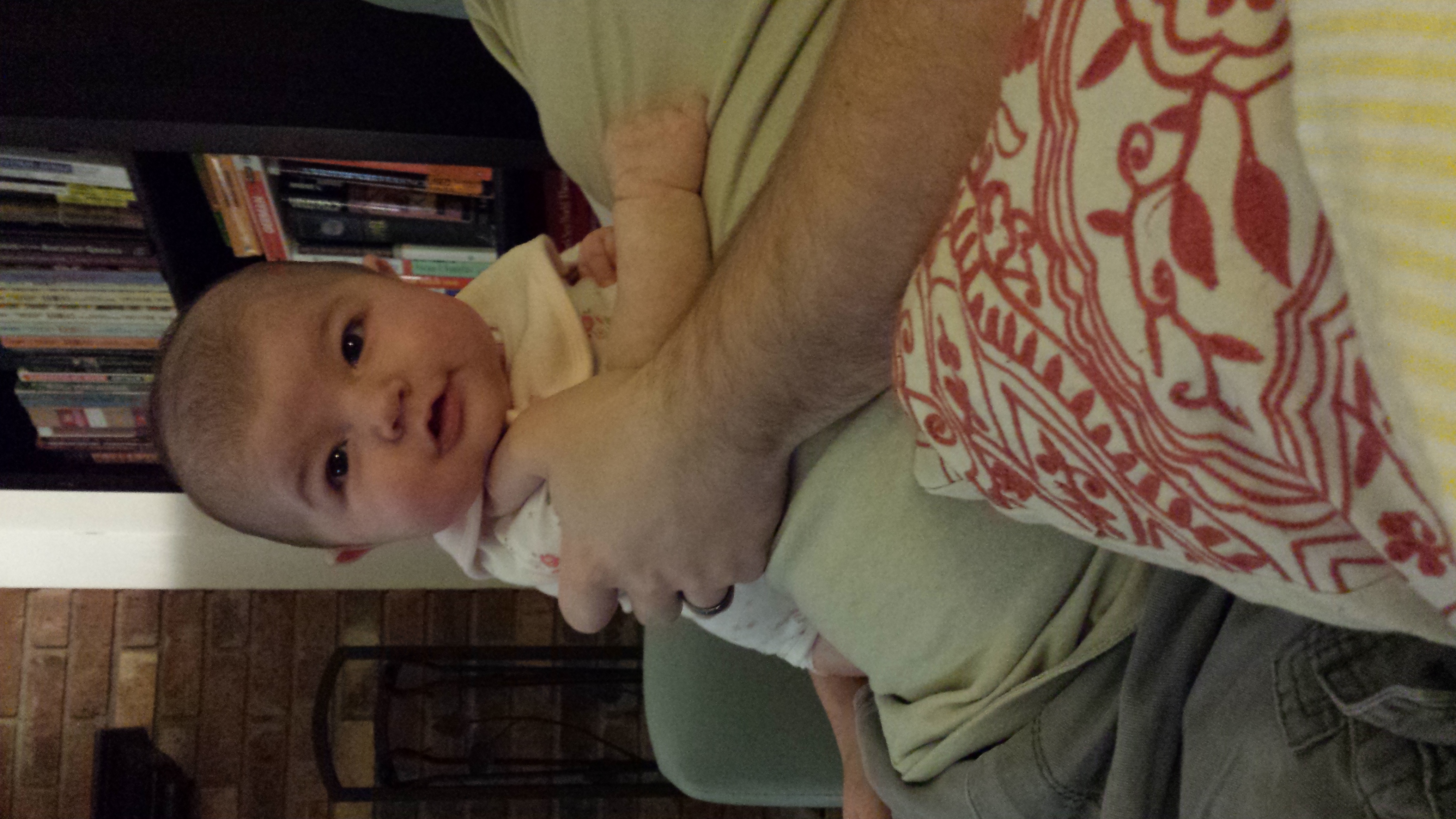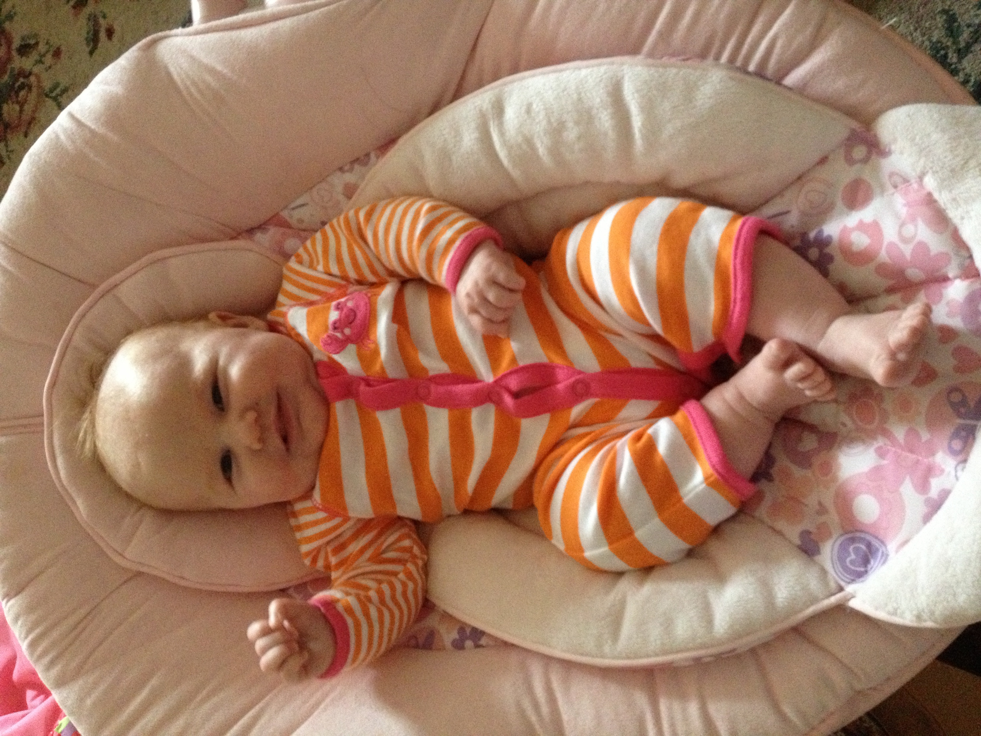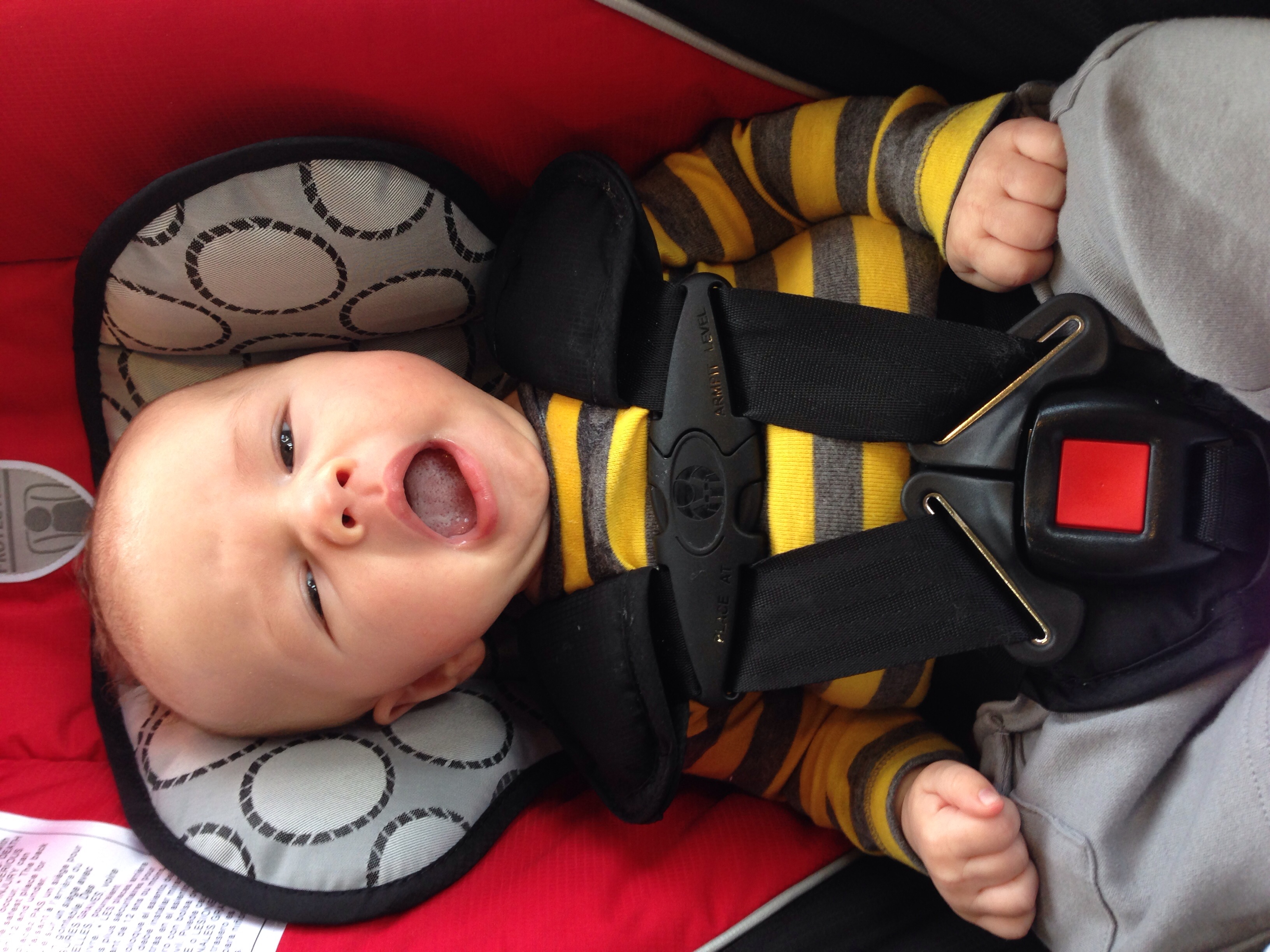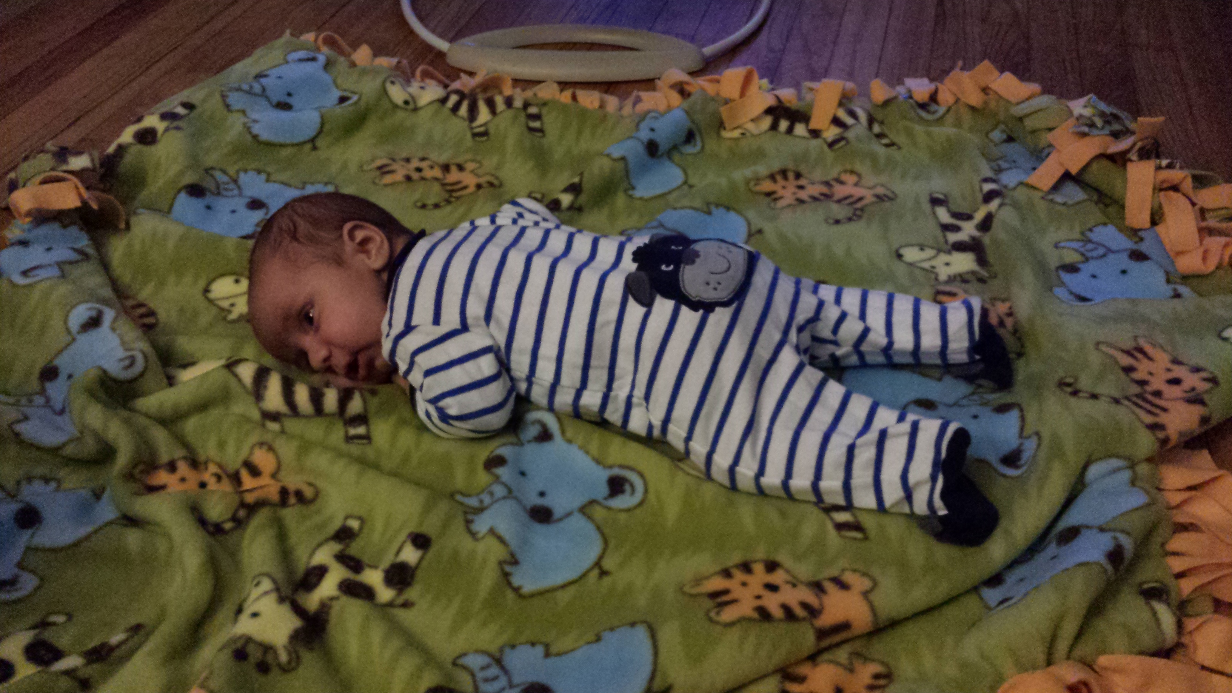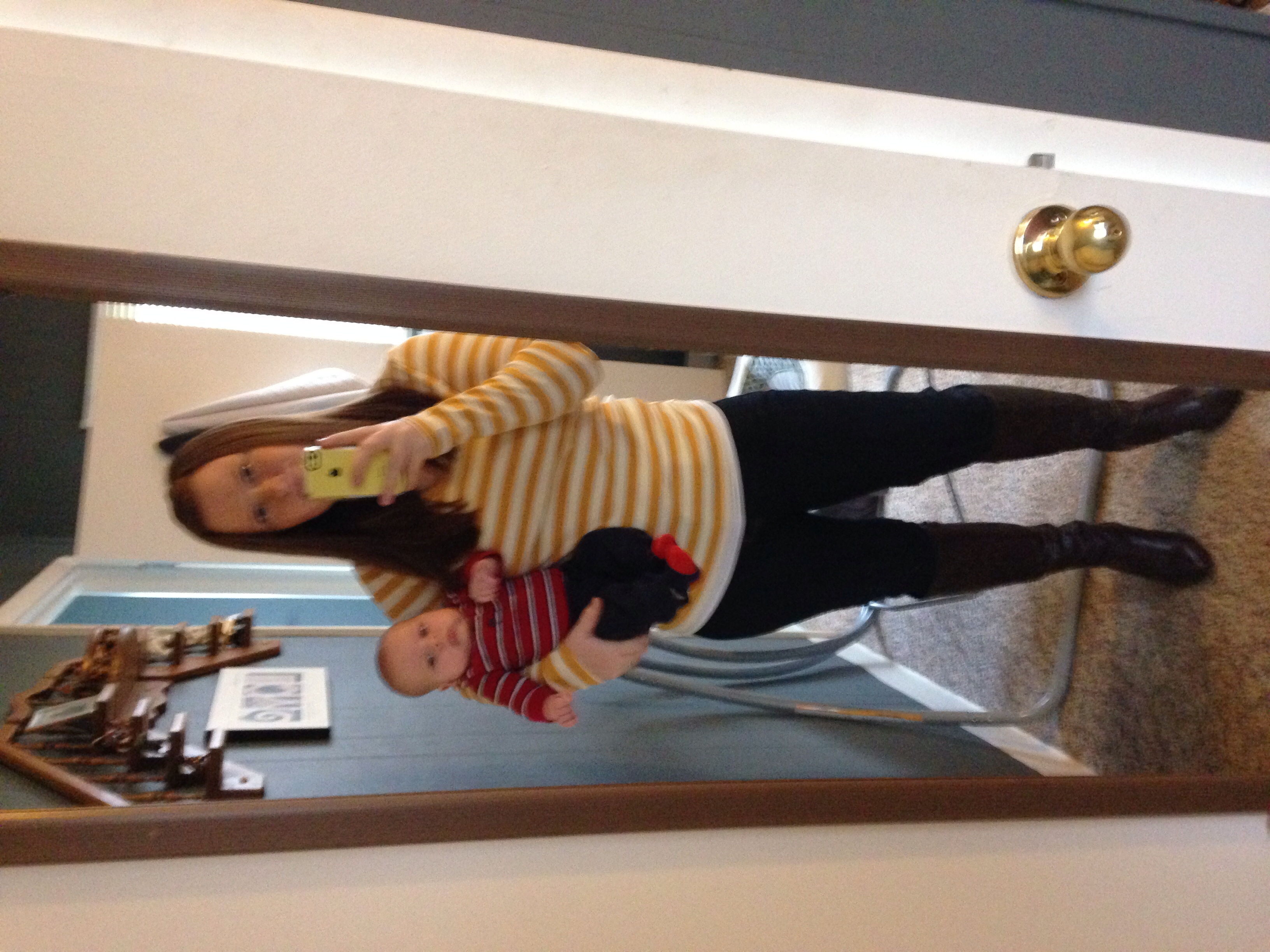 He - obviously - needed to make sure I take a nice picture this morning. I'm impressed that the mirror is actually clean! He's a little rocket and never sits still. He coos and babbles his heart out when he's being talked to (most of the time).