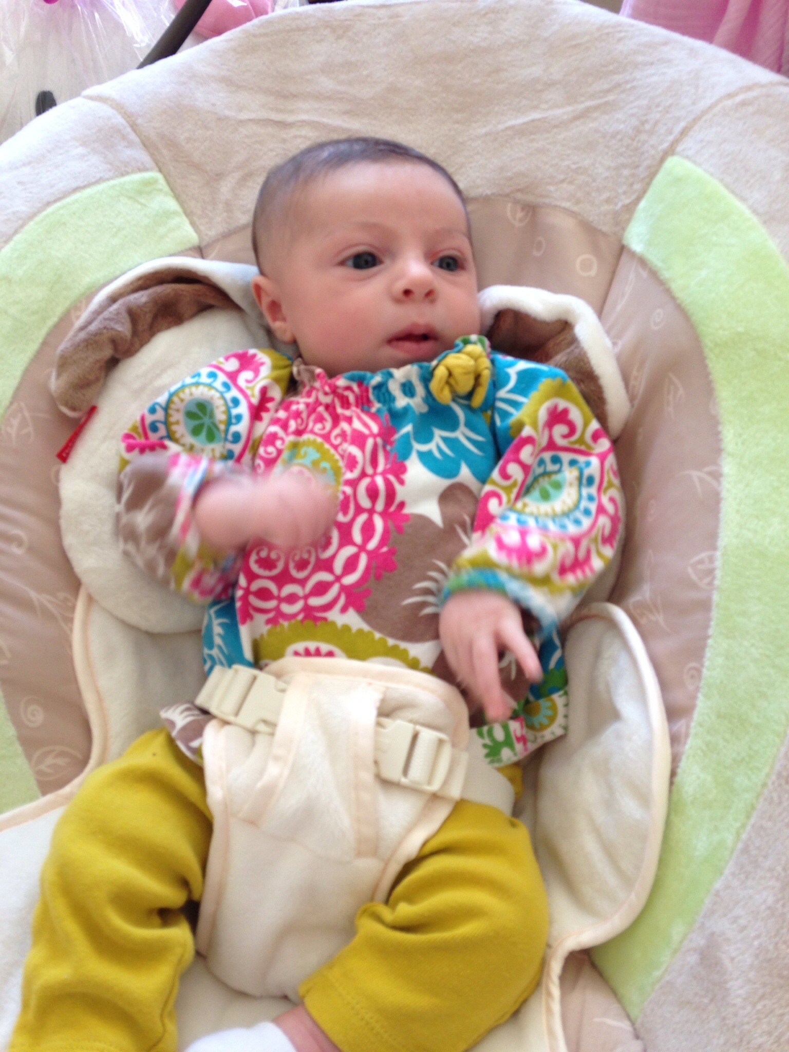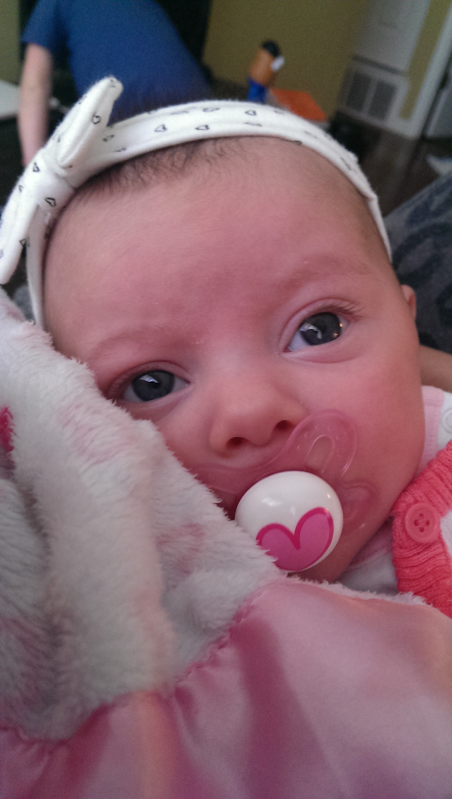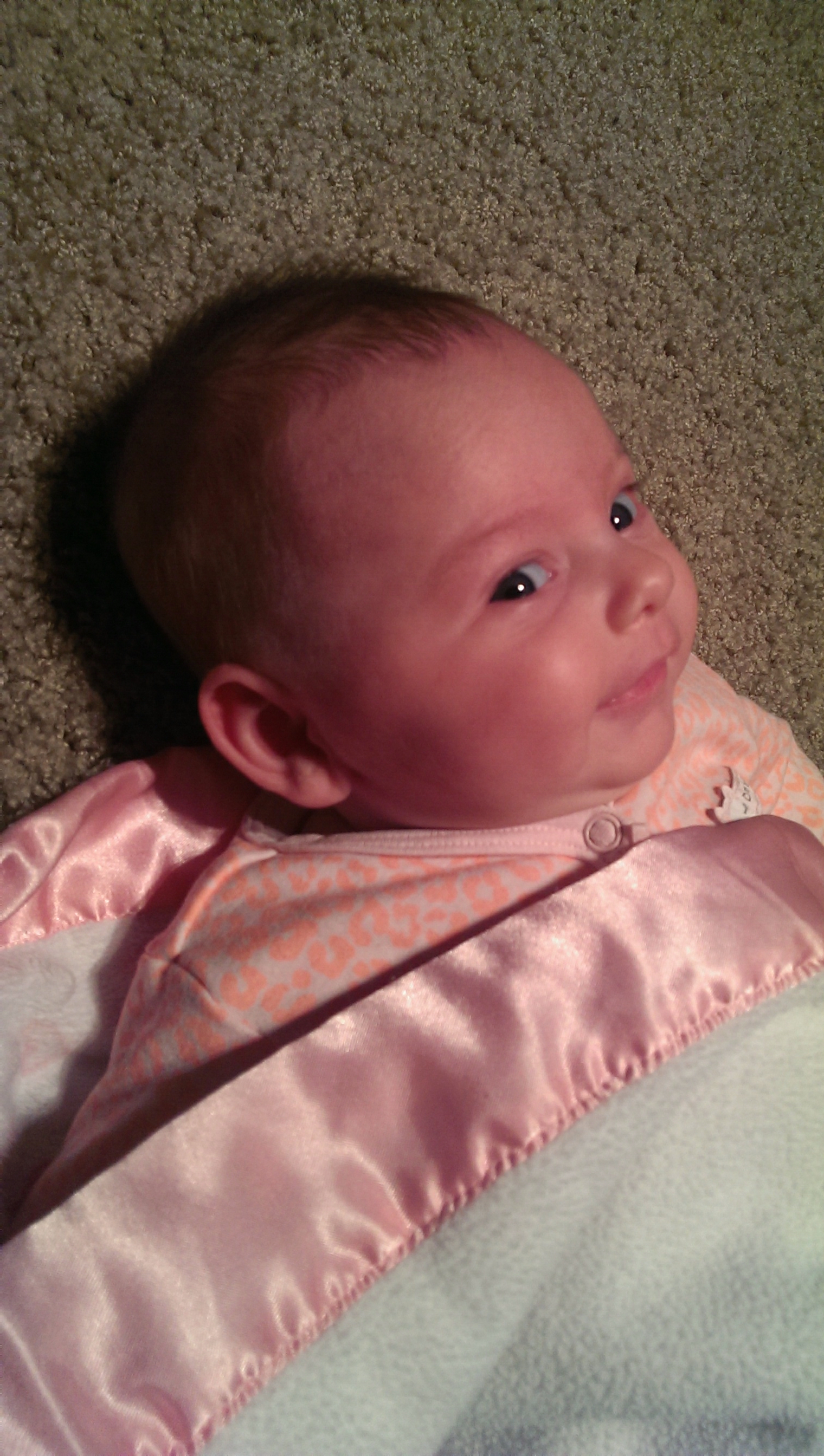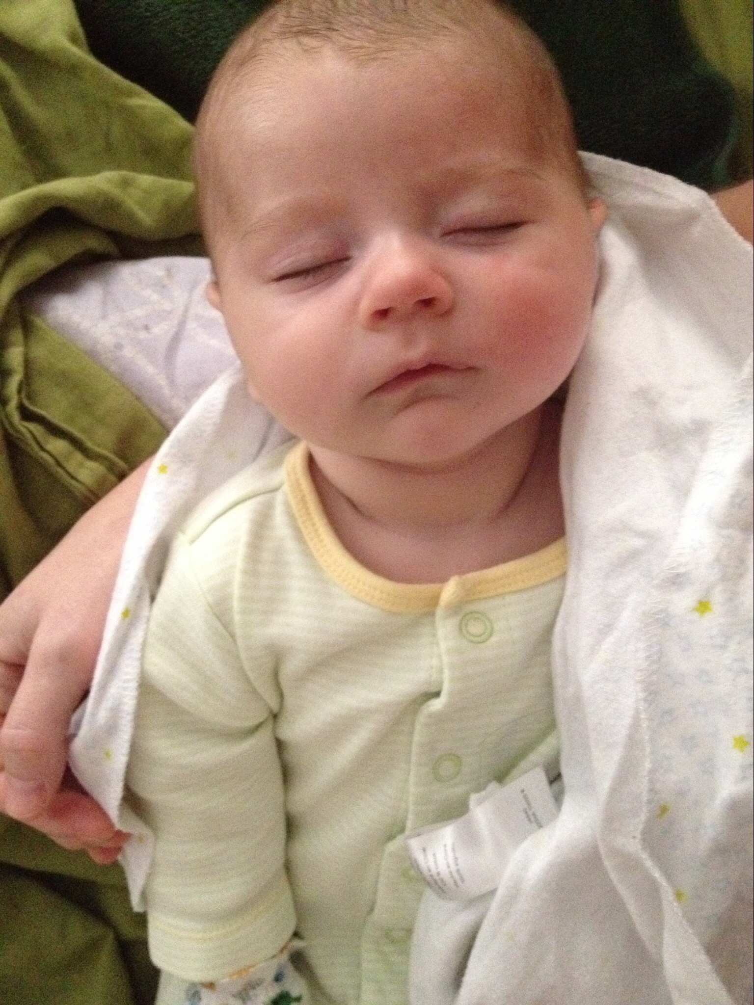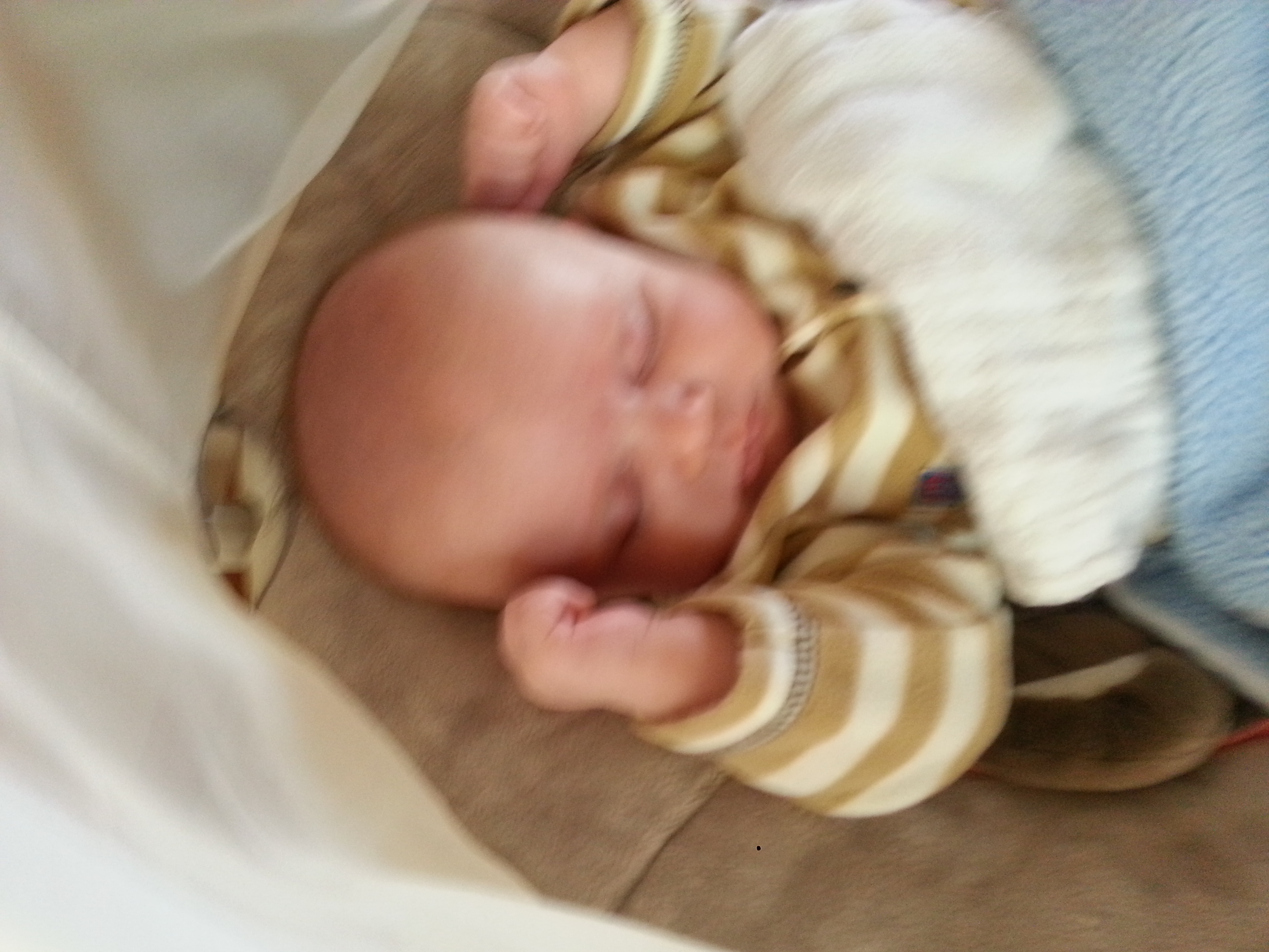 He - obviously - needed to make sure I take a nice picture this morning. I'm impressed that the mirror is actually clean! He's a little rocket and never sits still. He coos and babbles his heart out when he's being talked to (most of the time).