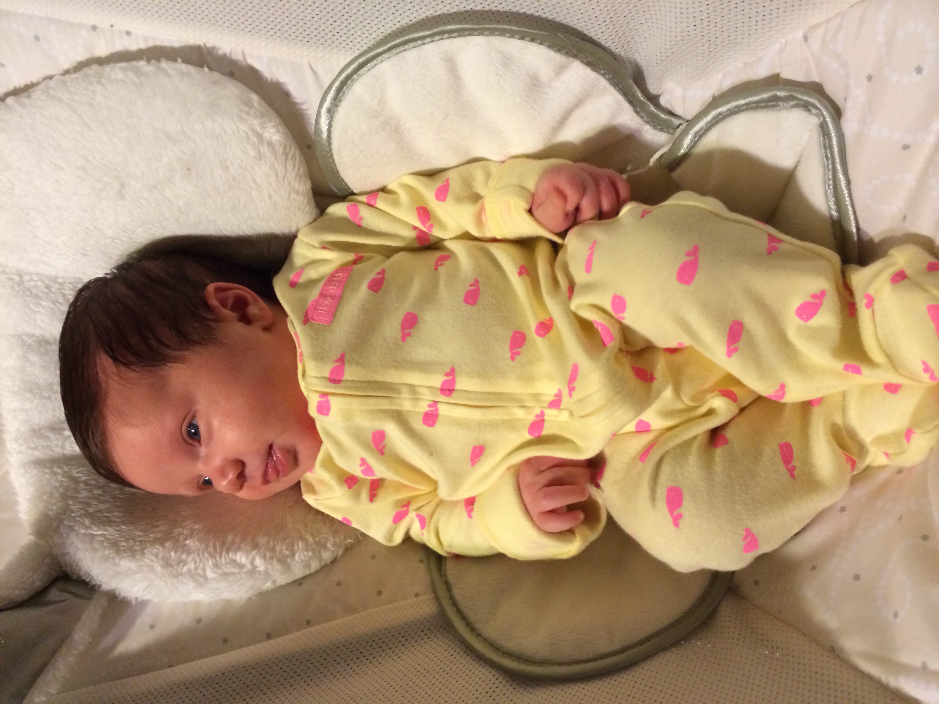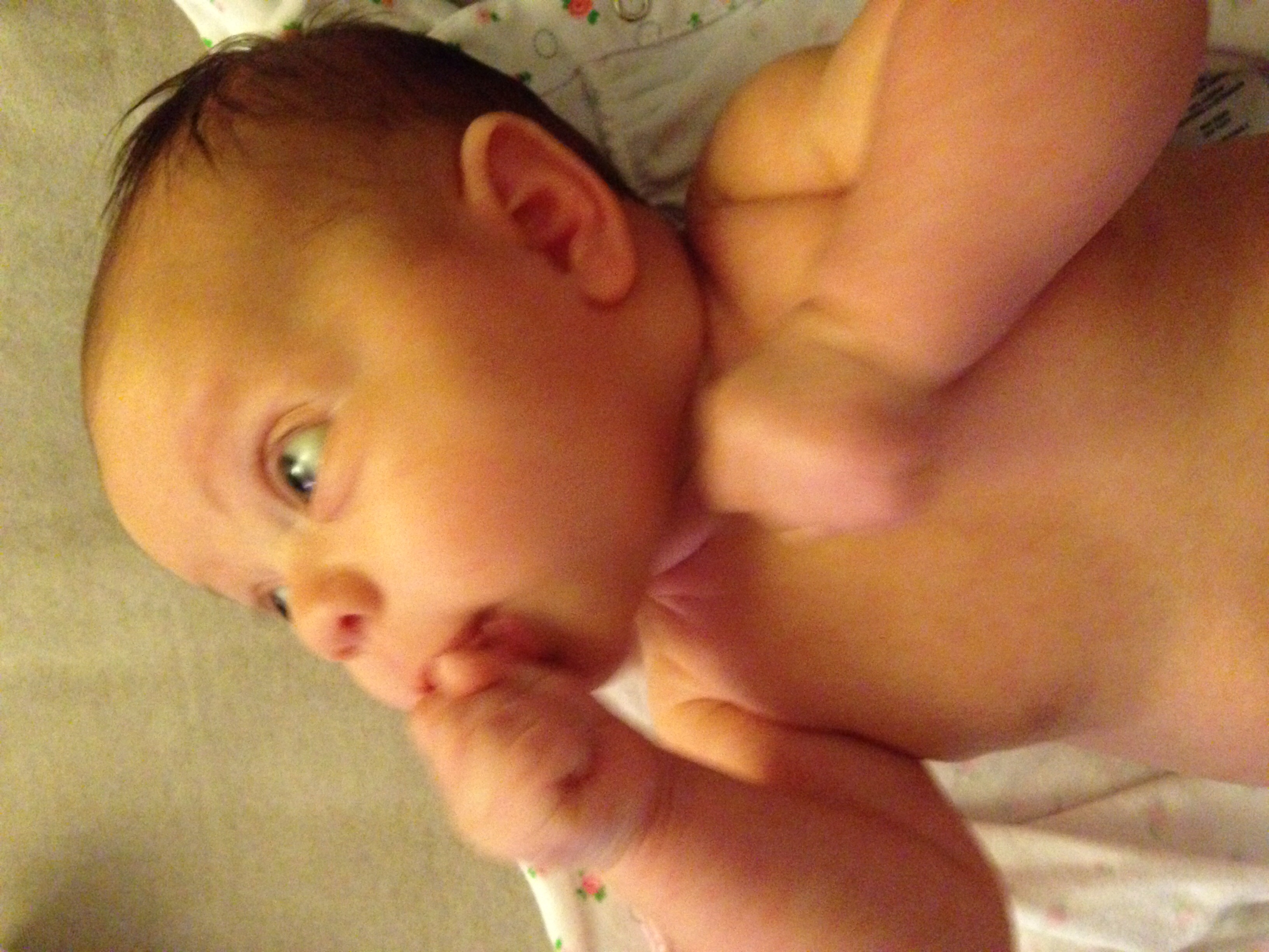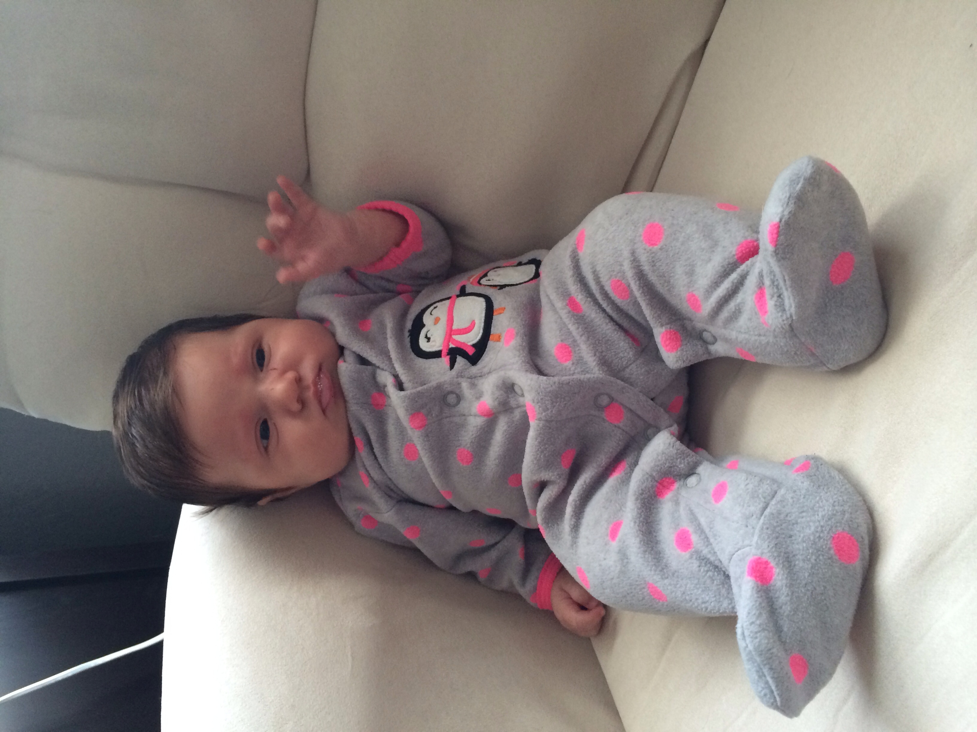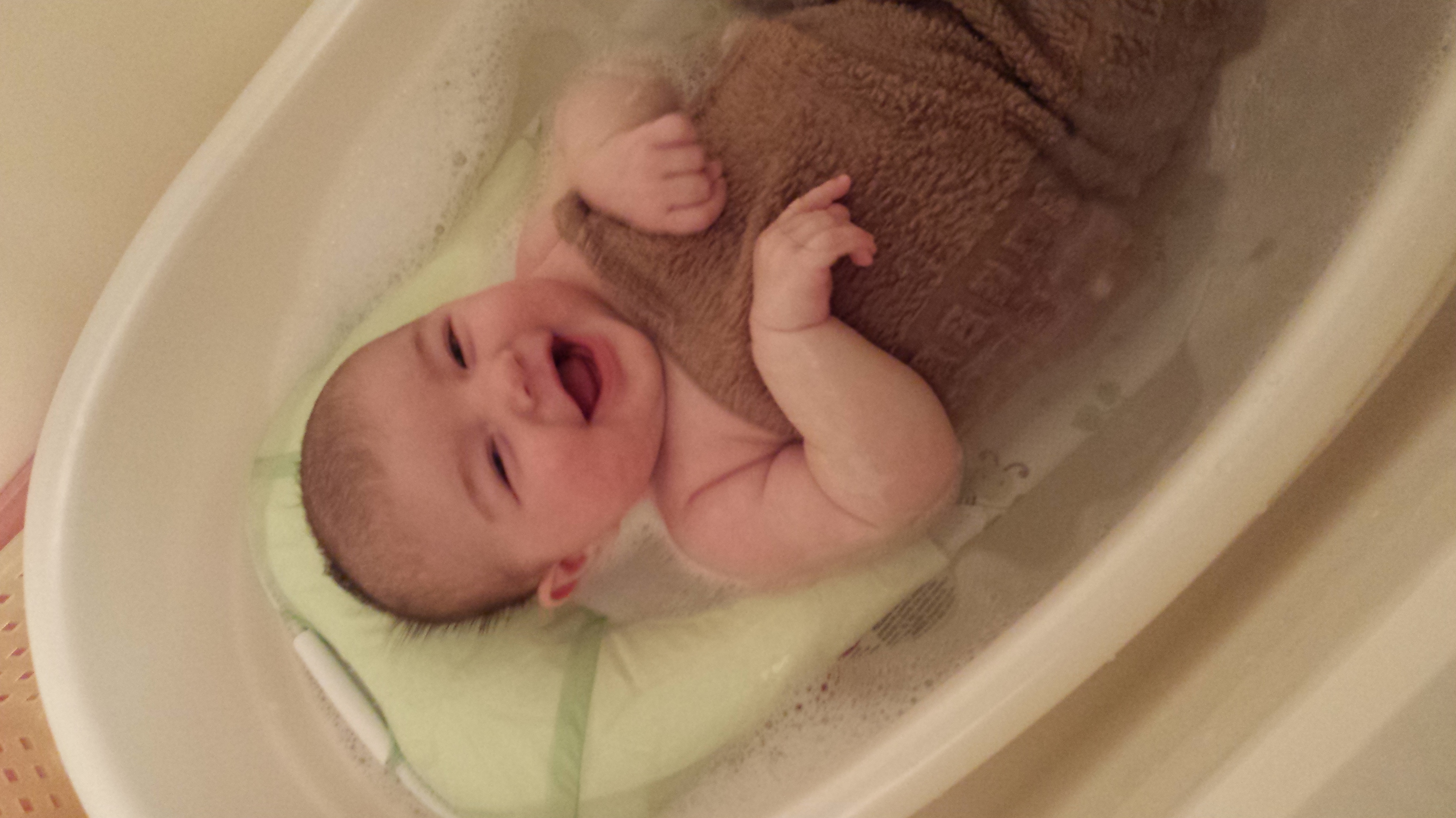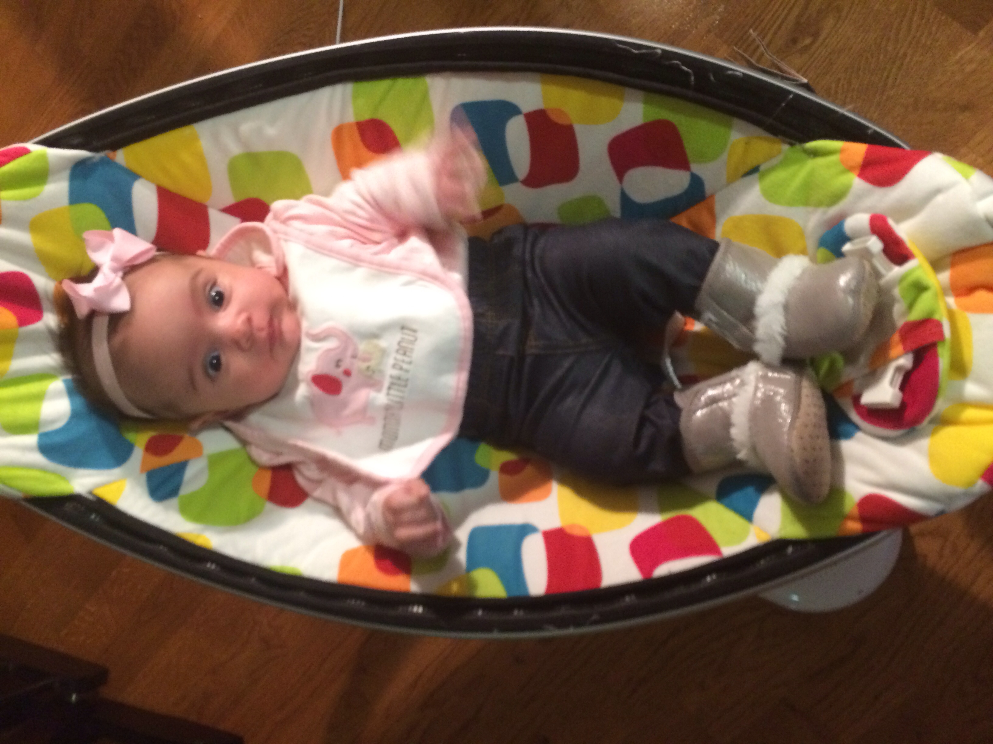 He - obviously - needed to make sure I take a nice picture this morning. I'm impressed that the mirror is actually clean! He's a little rocket and never sits still. He coos and babbles his heart out when he's being talked to (most of the time).