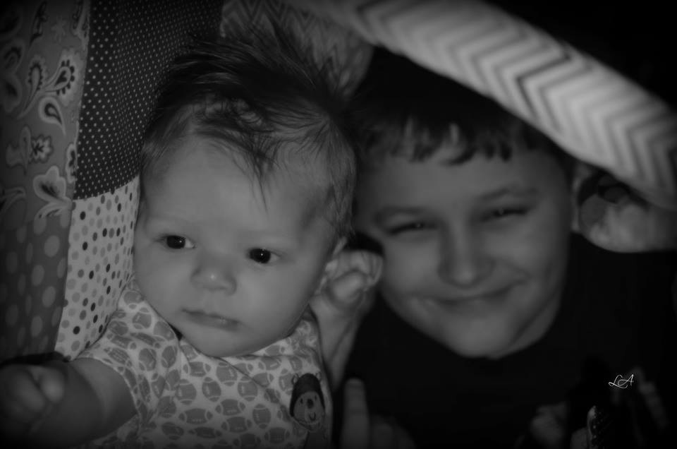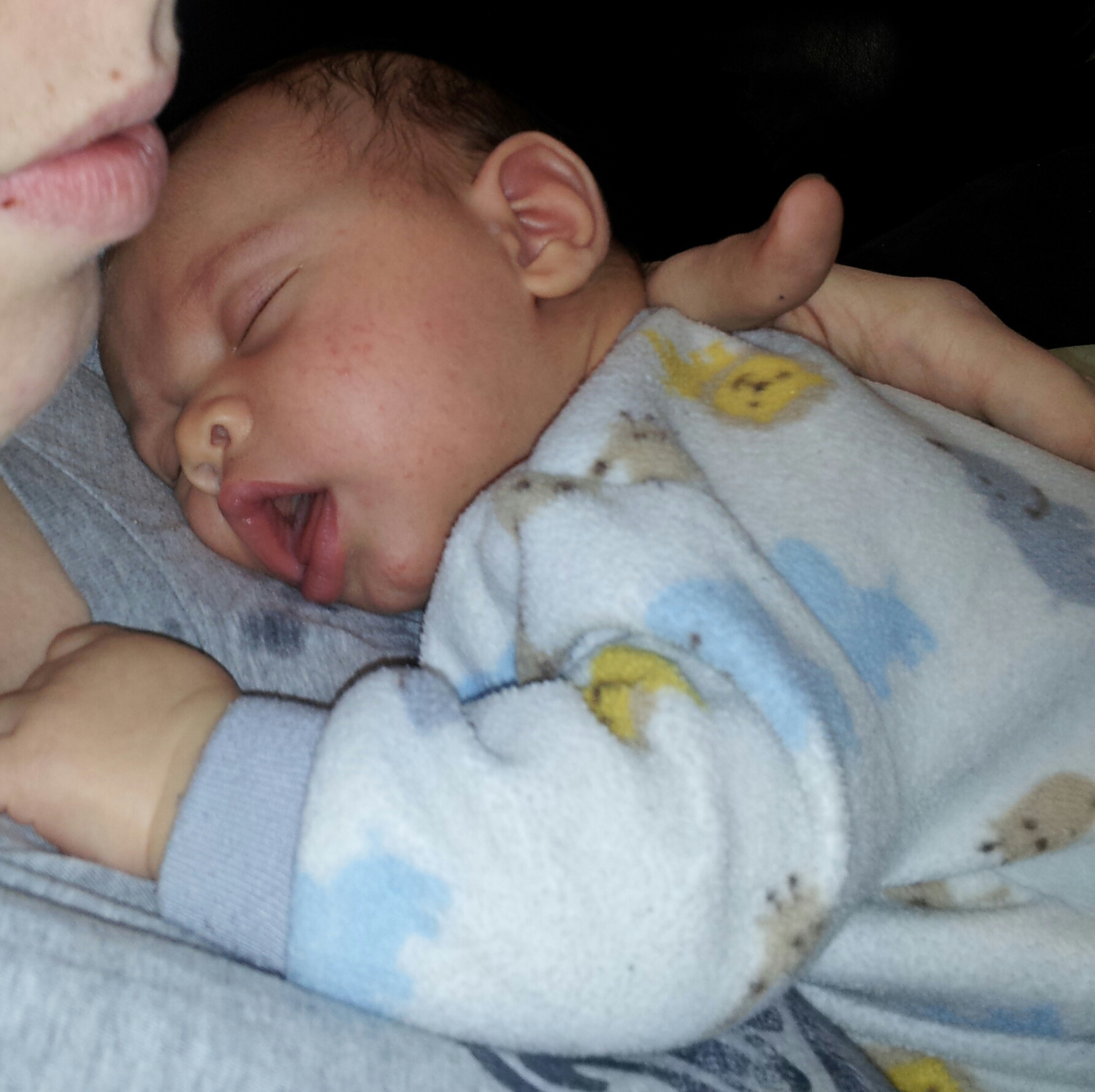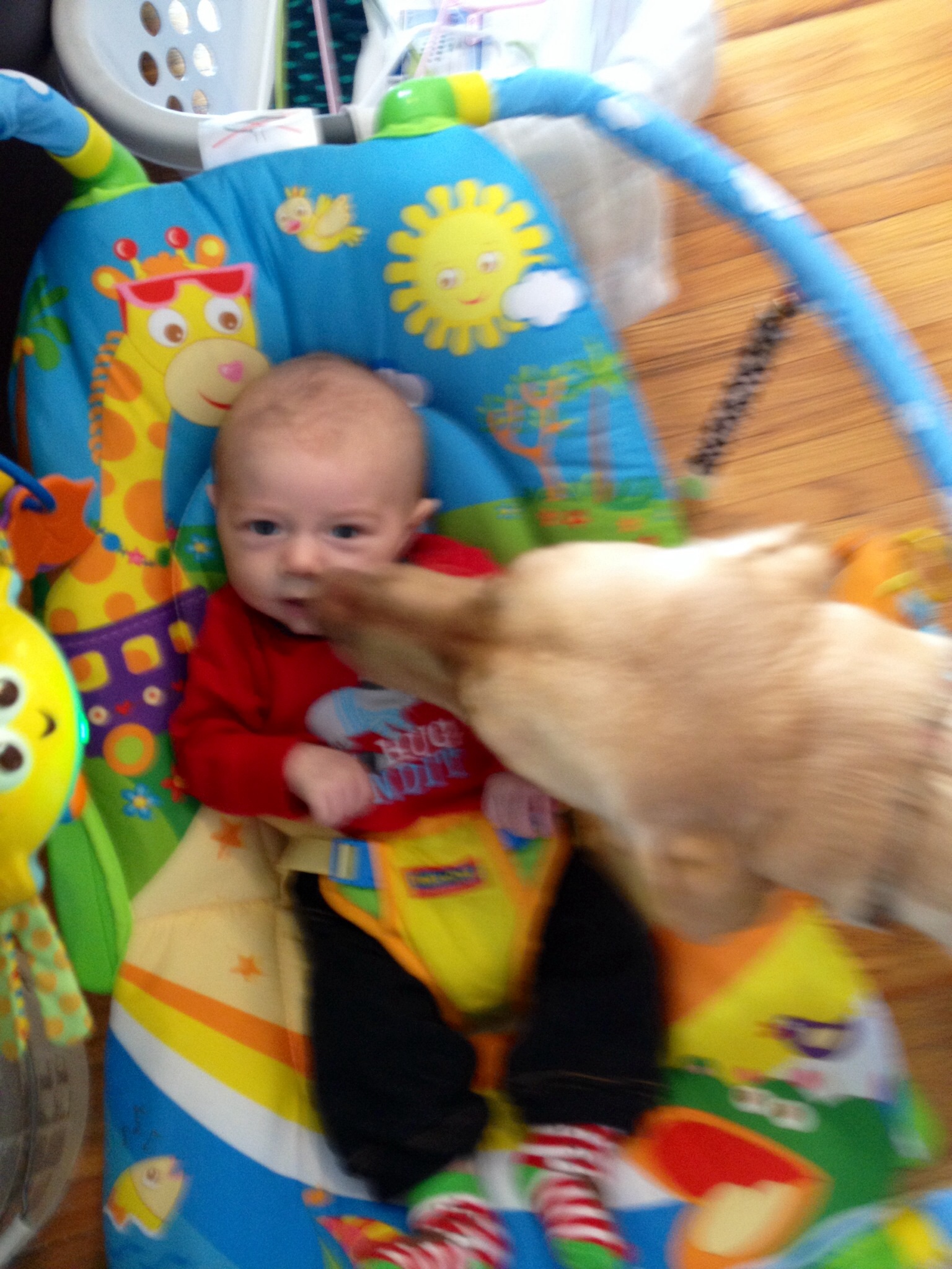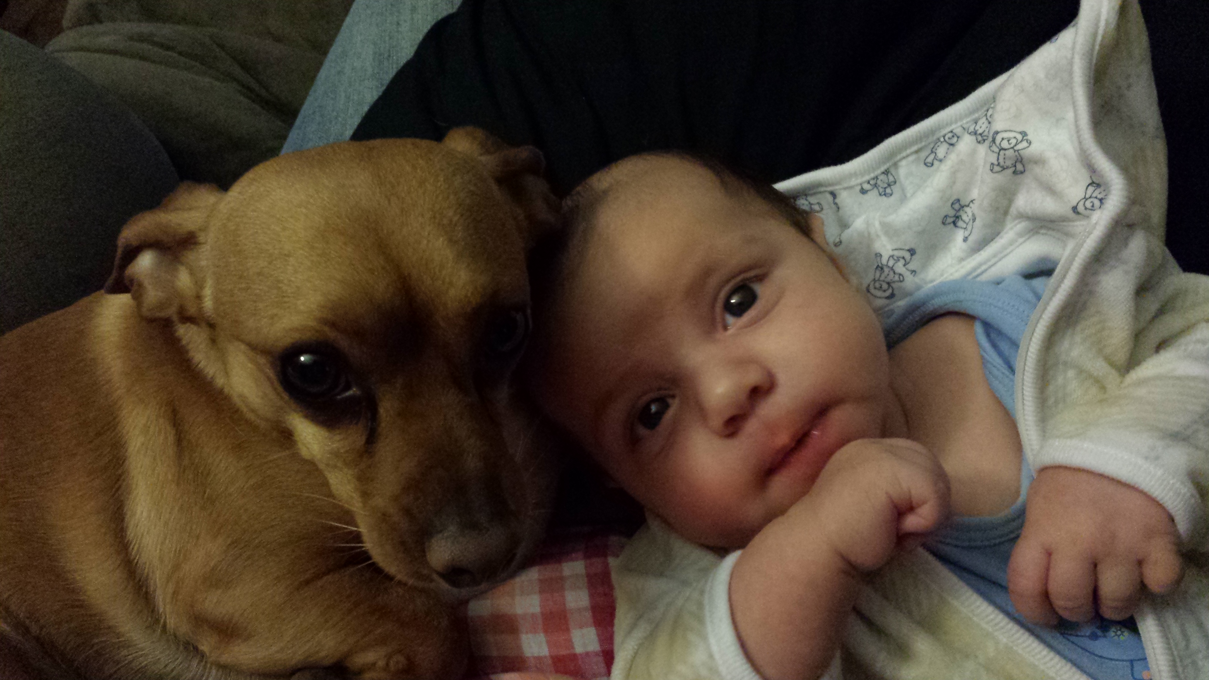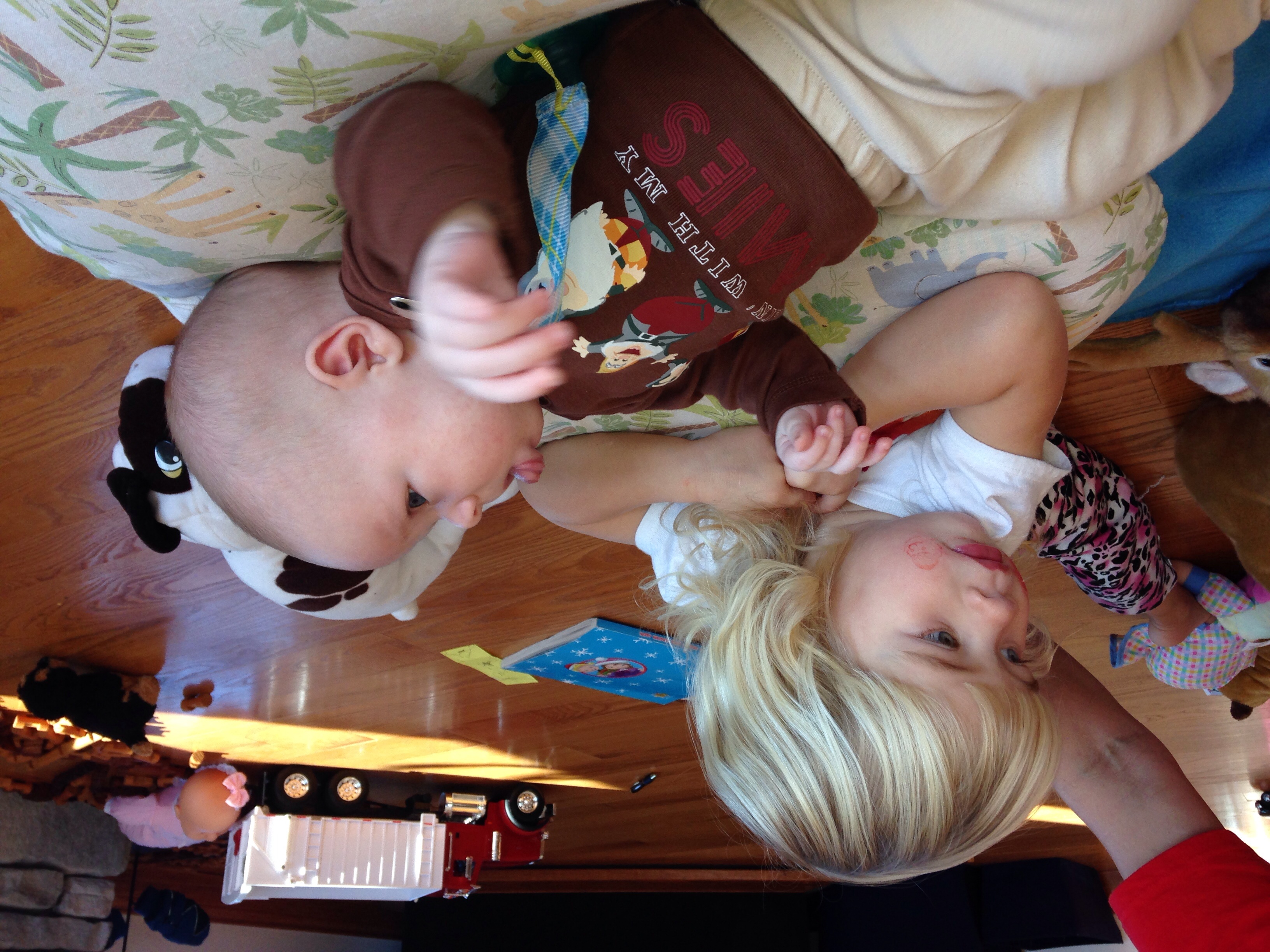 This is Jack with my nephew, Carter! He will be 8 weeks tomorrow and his favorite activity is screaming these days! DH is convinced we will have a tantrum throwing toddler:)