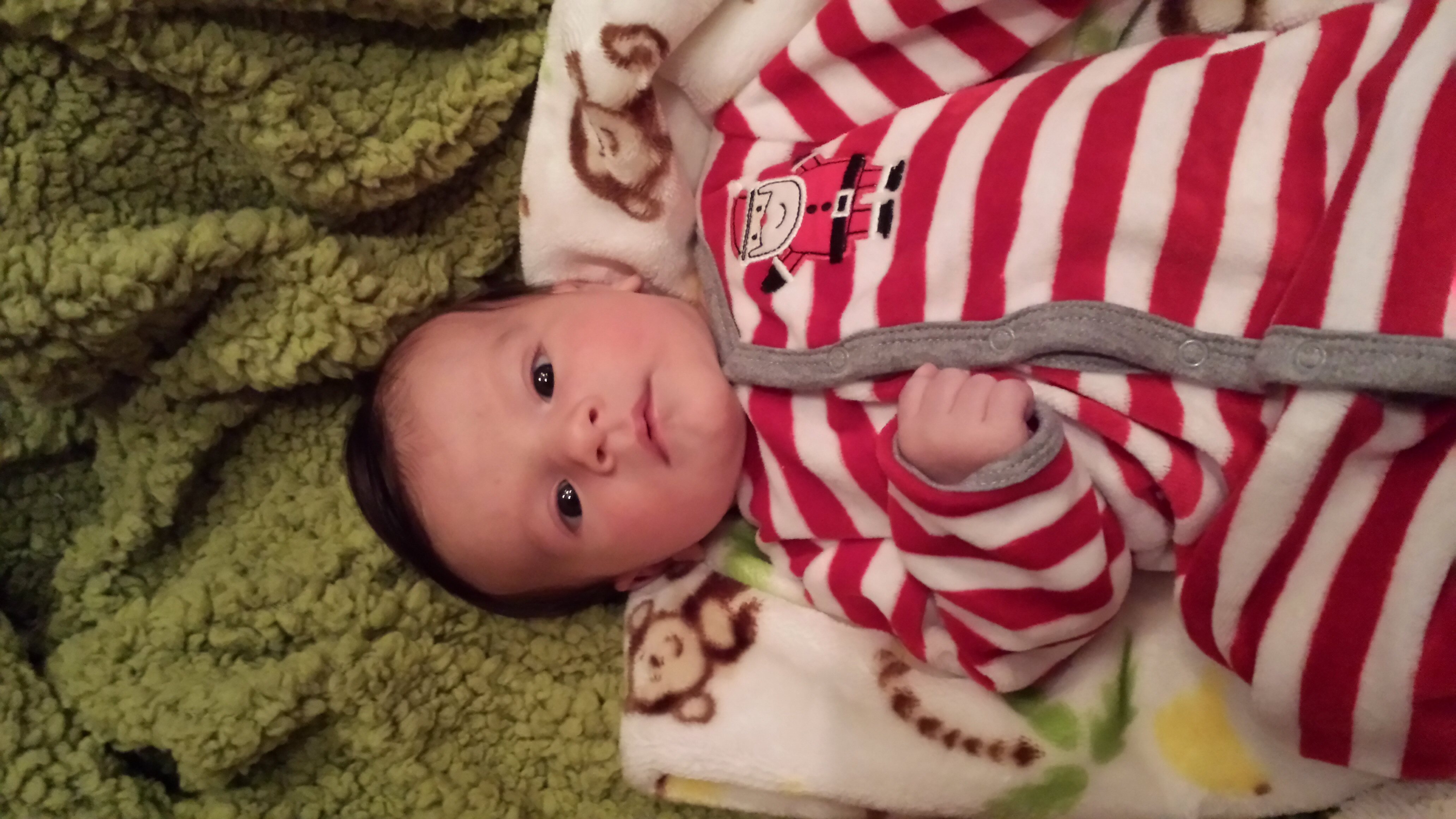 Chunker is wearing 6-9m clothes. Everyone who bought him clothes for Christmas had to return them!