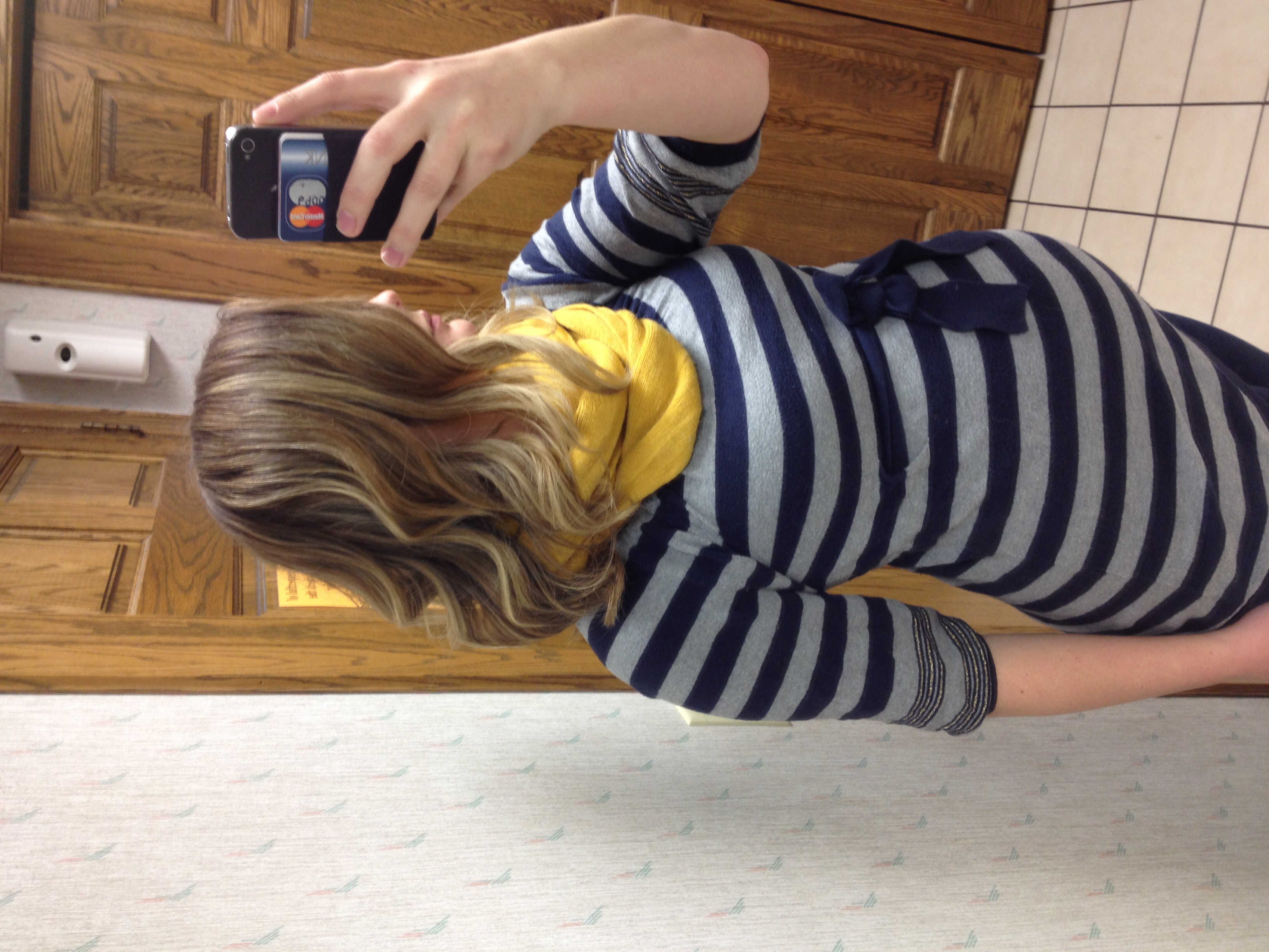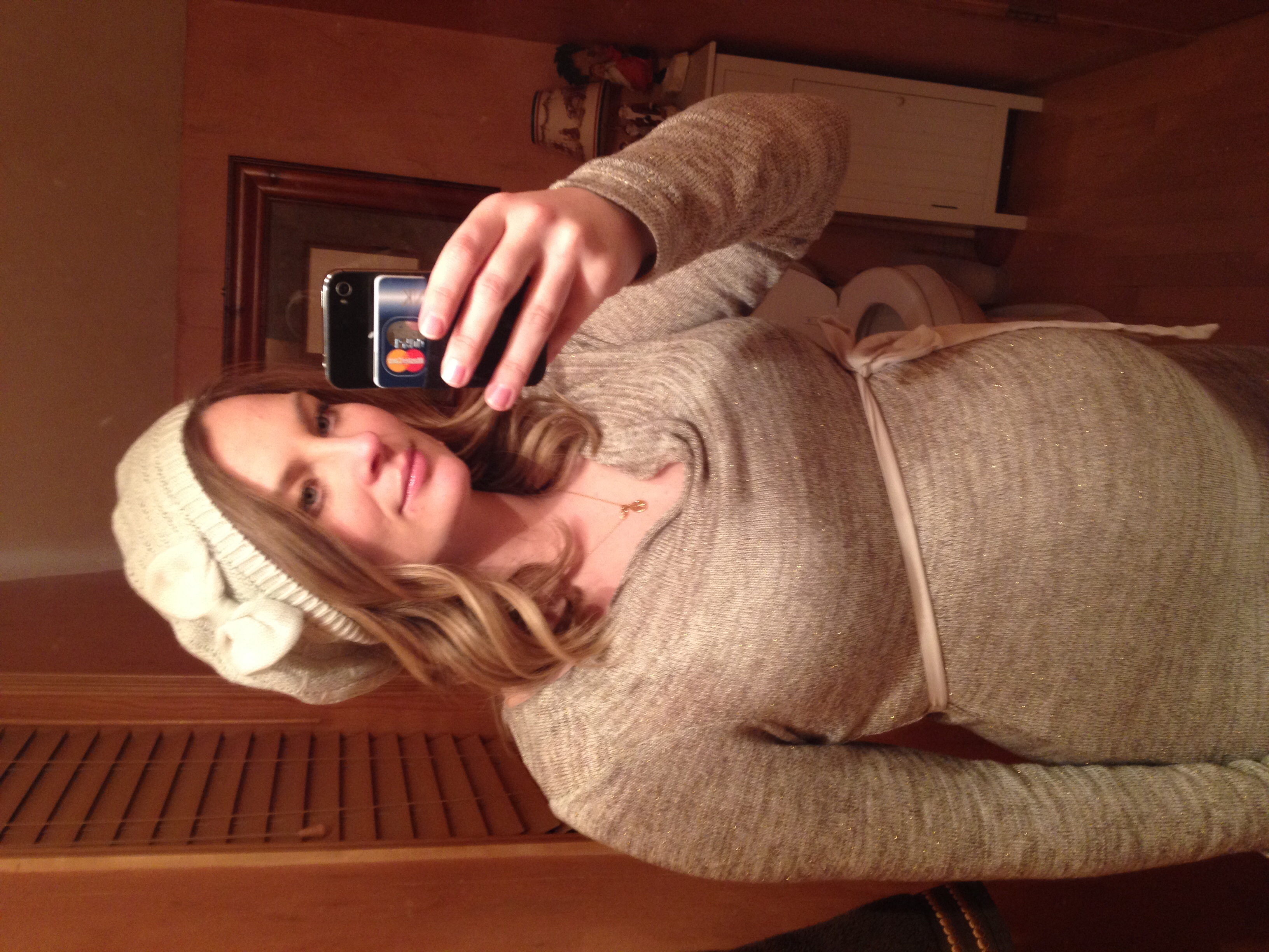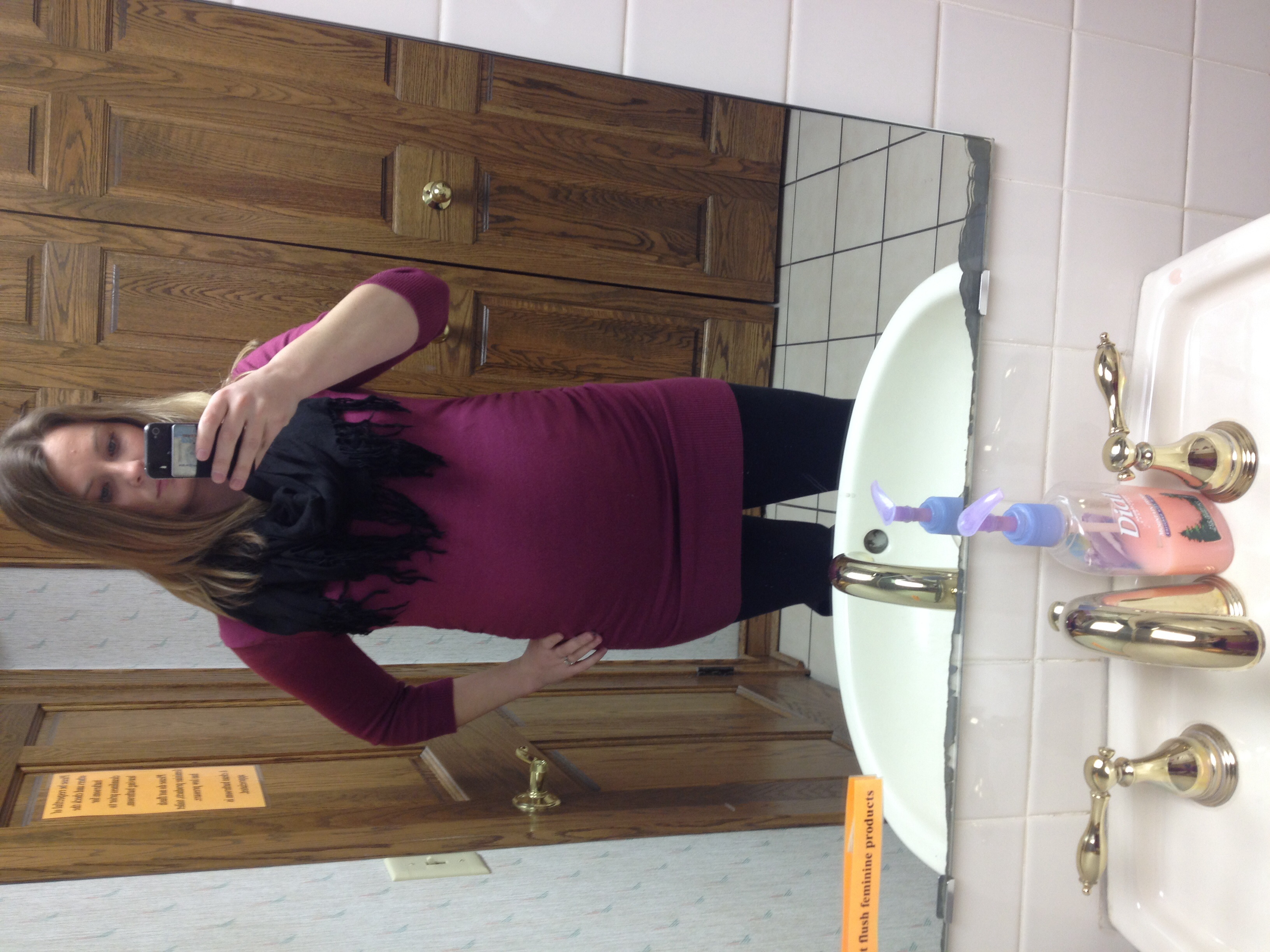 Is it ok if it's not a selfie? DH took this yesterday, and I'm proud because I'm actually wearing a maternity top. Finally bought a few, and think I managed to make it not look awful. The cardigan, I'm sure you can tell from the size, is a pre-preg purchase.