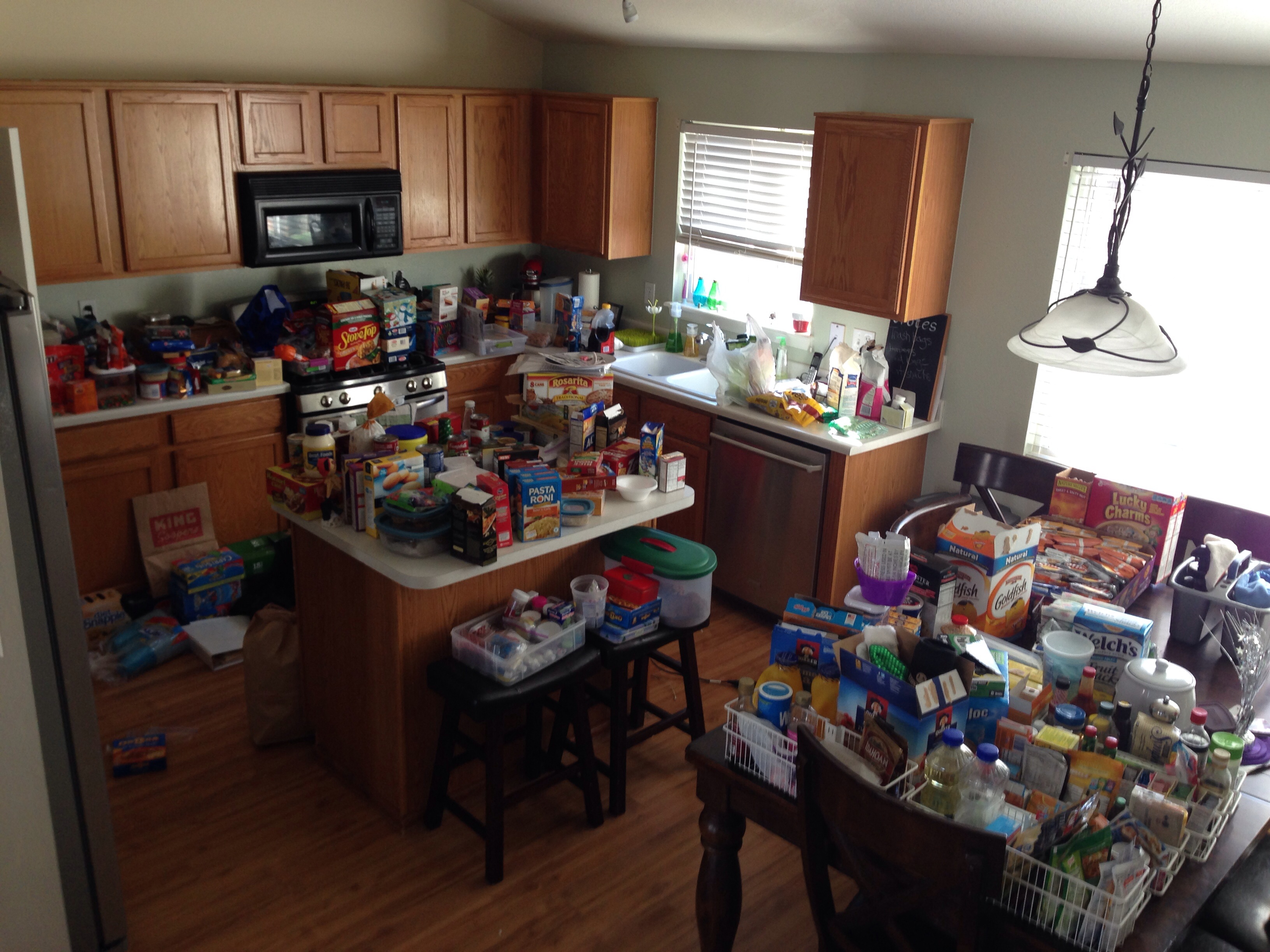 Cleaned out the pantry today and scrubbed the heck out of it. Twice. Here is the before picture after I took everything out. My kitchen was spotless before so that ALL came out of the cabinet. Yikes!