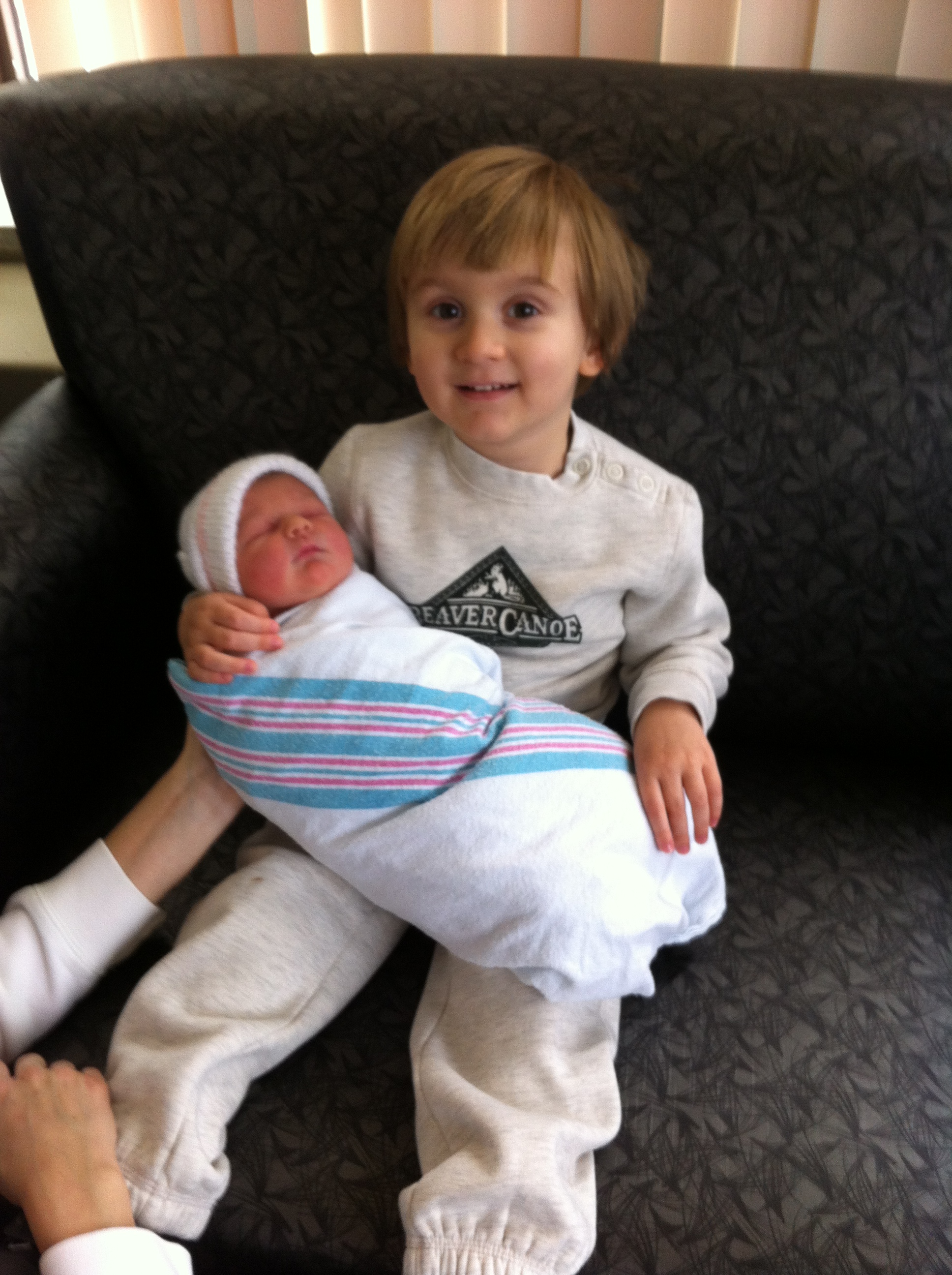 I came in first to greet DS and the dog and my mom brought the baby in after. DS just couldn't stop jumping up and down yelling "VAVO HAS THE BABY!!! THE BABY IS HOME!!!"