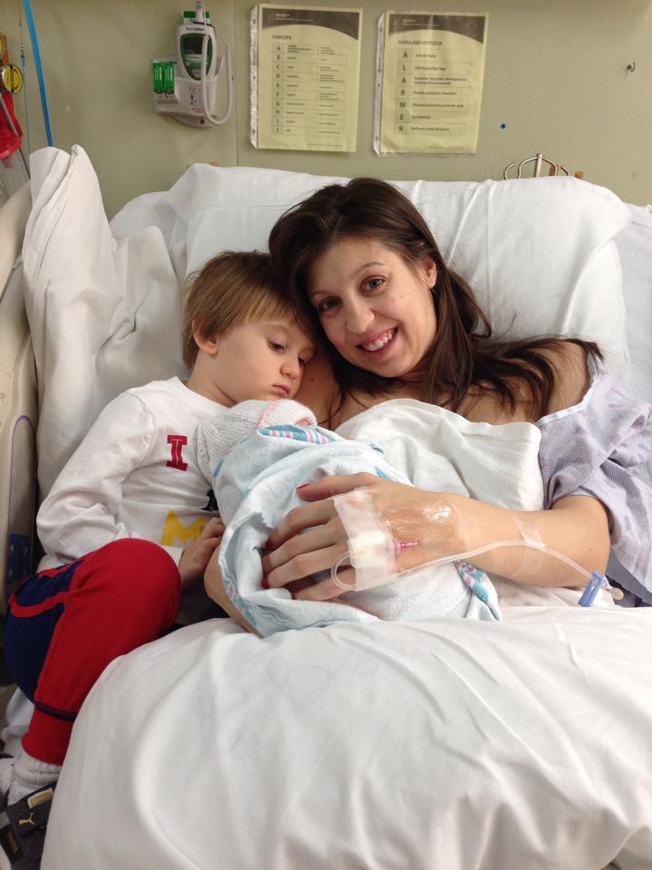 Once everything was cleaned up, My mom, grandmother & DS joined my Aunt and bestie in the delivery room and I introduced DS to his baby sister. He was a little nervous and unsure at first, but them warmed right up to Veronica! DS was able to spend the rest of the day with me and returned the next morning to visit again before we were released. DS went home just after lunch and I was released shortly after 3 PM. When we pulled into the driveway, DS was looking out the window, jumping and screaming "BABY IS HOME! MOMMY IS HOME!"