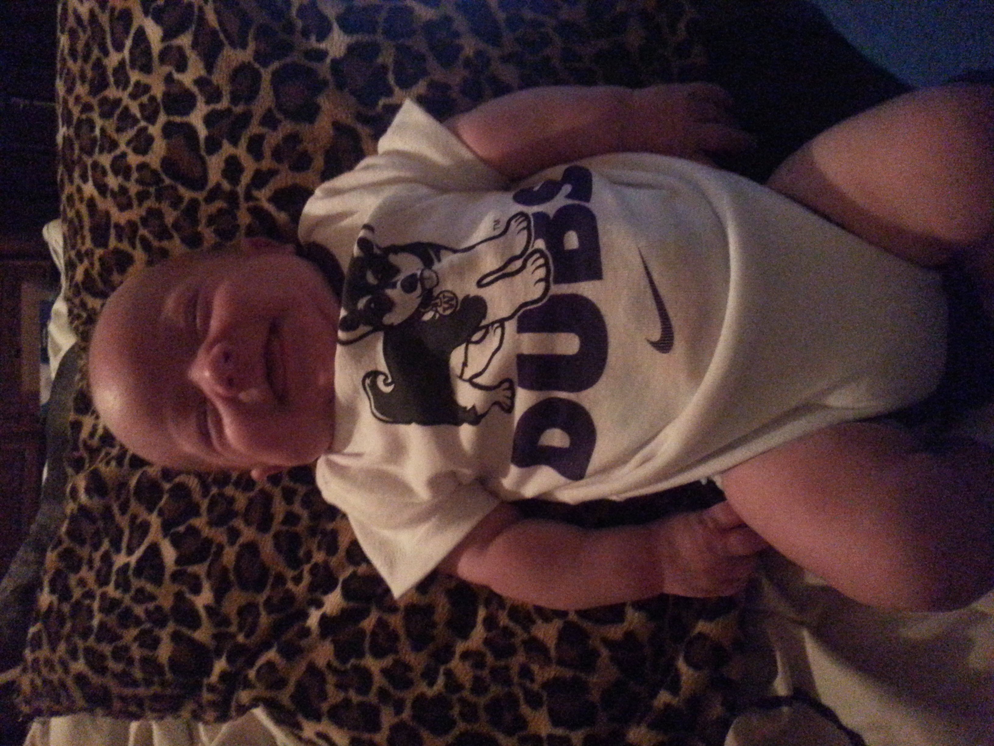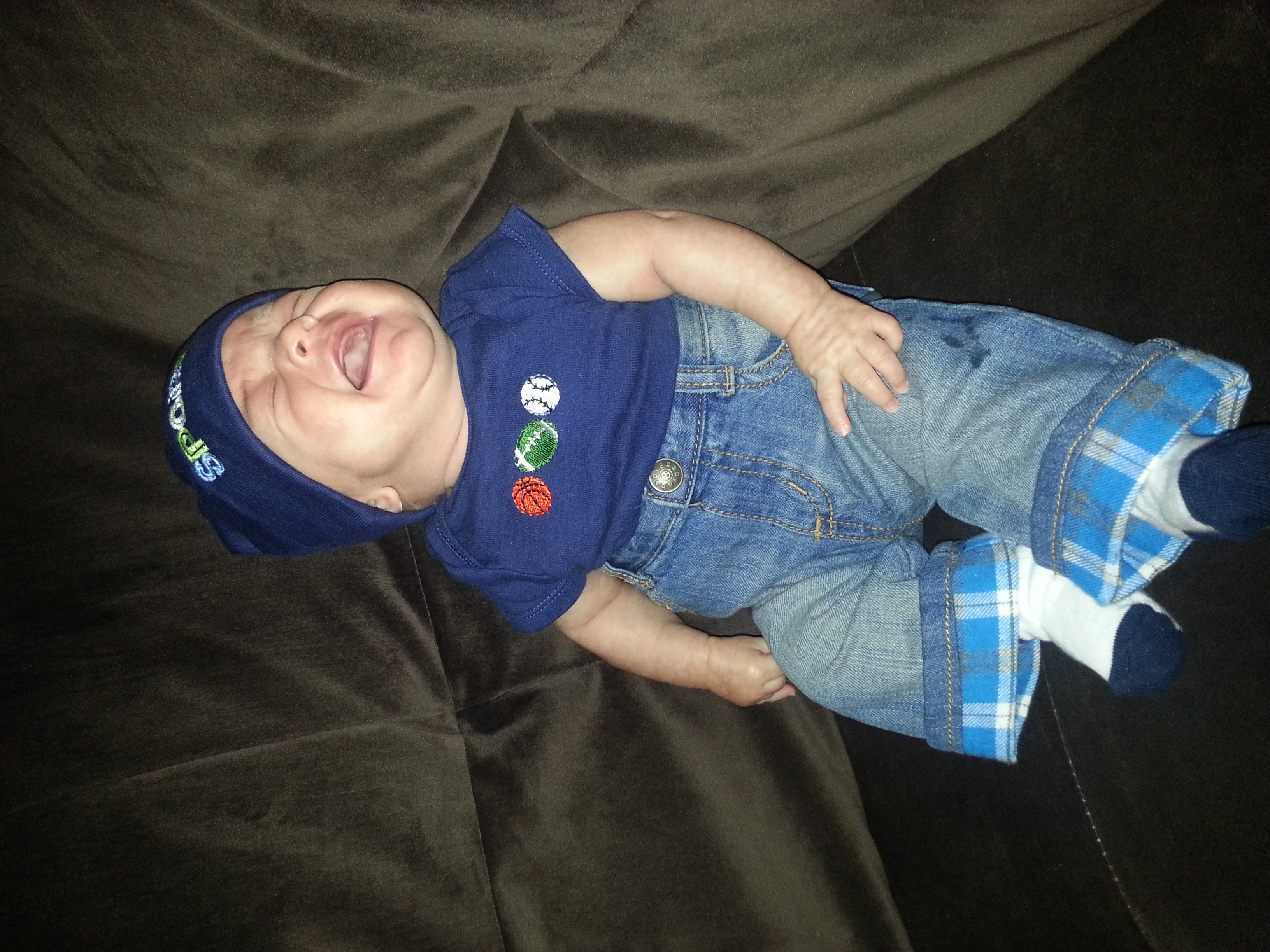 Ozzy will be 12 weeks Friday (and will be 3 weeks adjusted). If he's continued on his oz a day weight gain, he most likely weighs approximately 9 lbs 7 oz. That's a 6 lb weight gain since birth. Holy man.