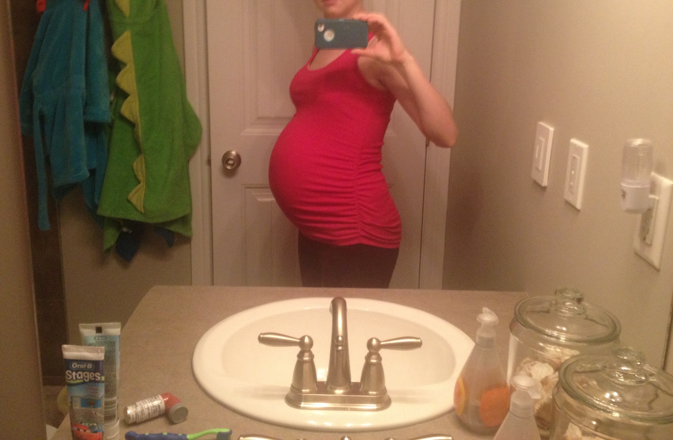 This is 38w with baby 2. He is breech and a lot higher than DS1 was at this point. Don't mind DS's towels in the background, haha.