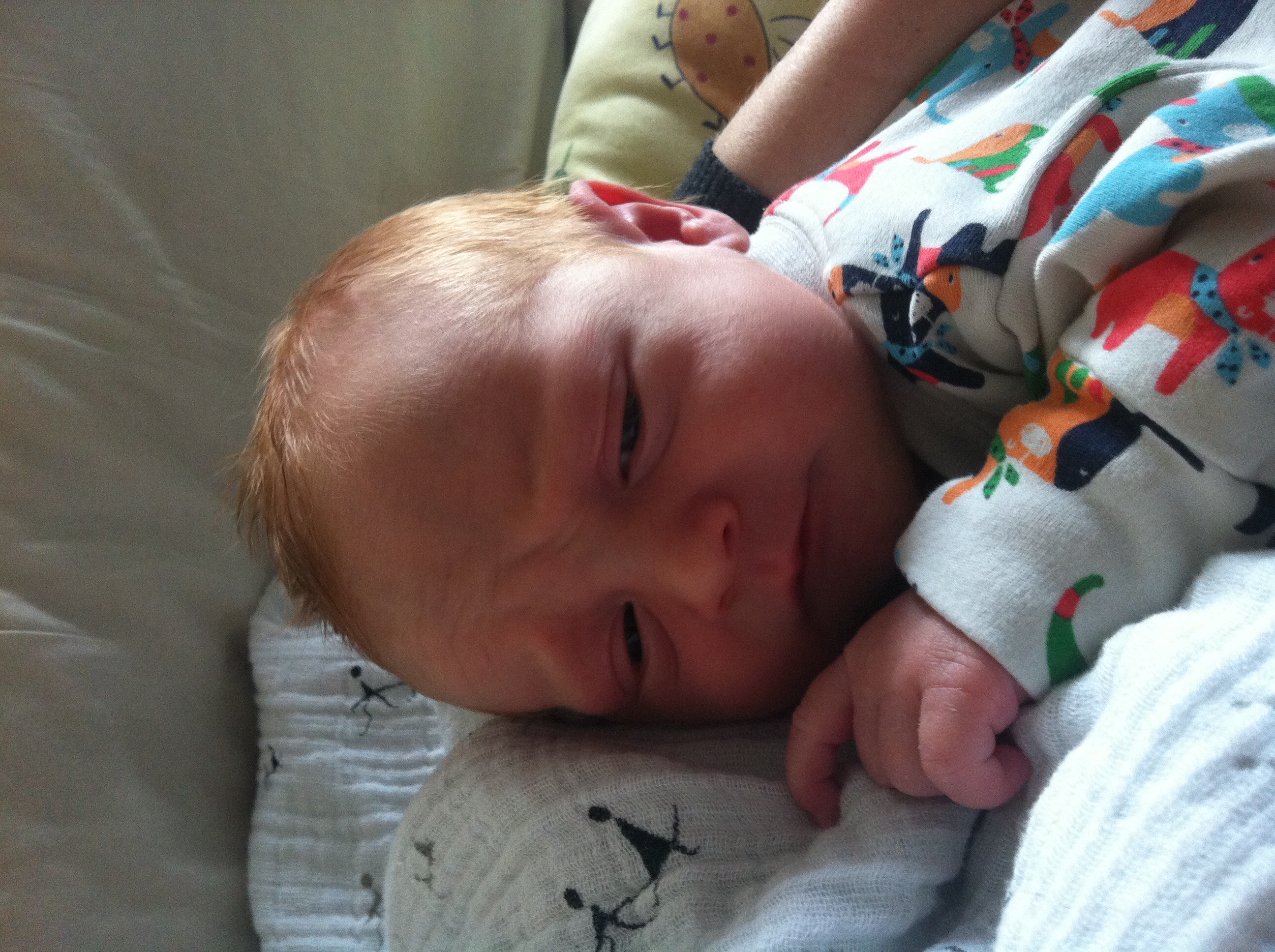 This is Benjamin who is now 1 week 5 days old. He looks a bit cranky here but he was just hungry....as usual. We are madly in love with him!