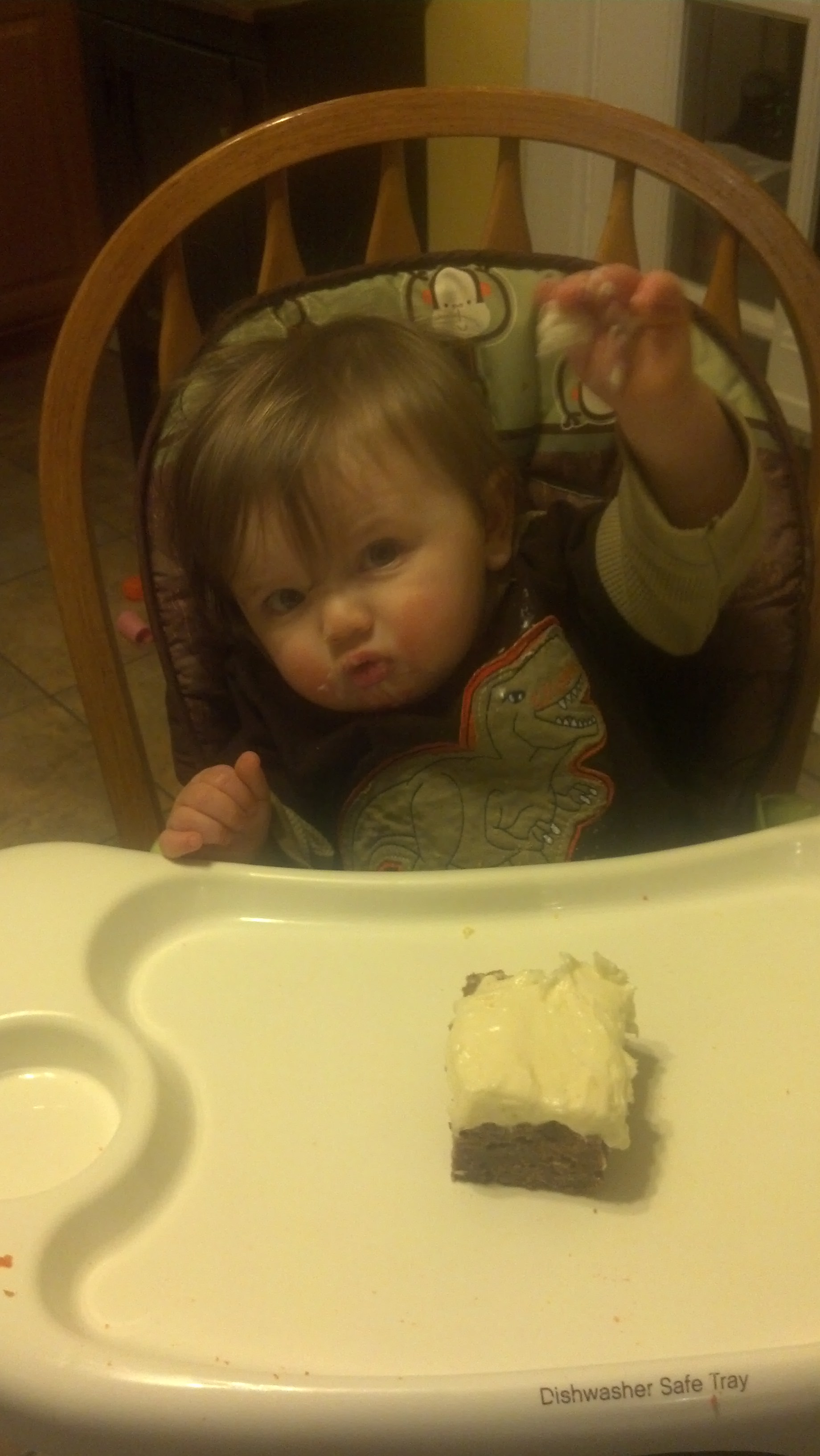 He loved opening his presents, but wasn't too impressed by his cake. I can't wait for his party Saturday!