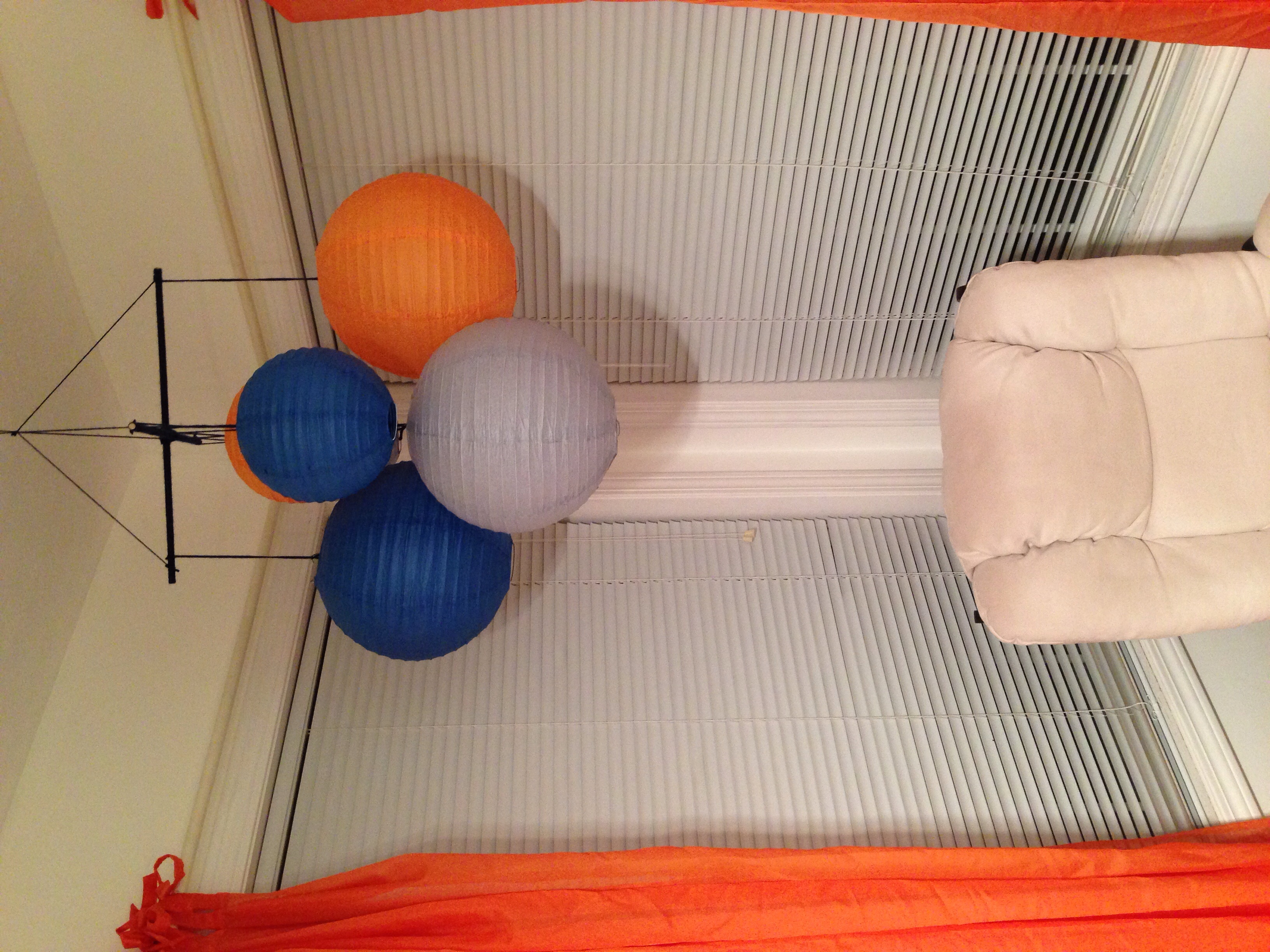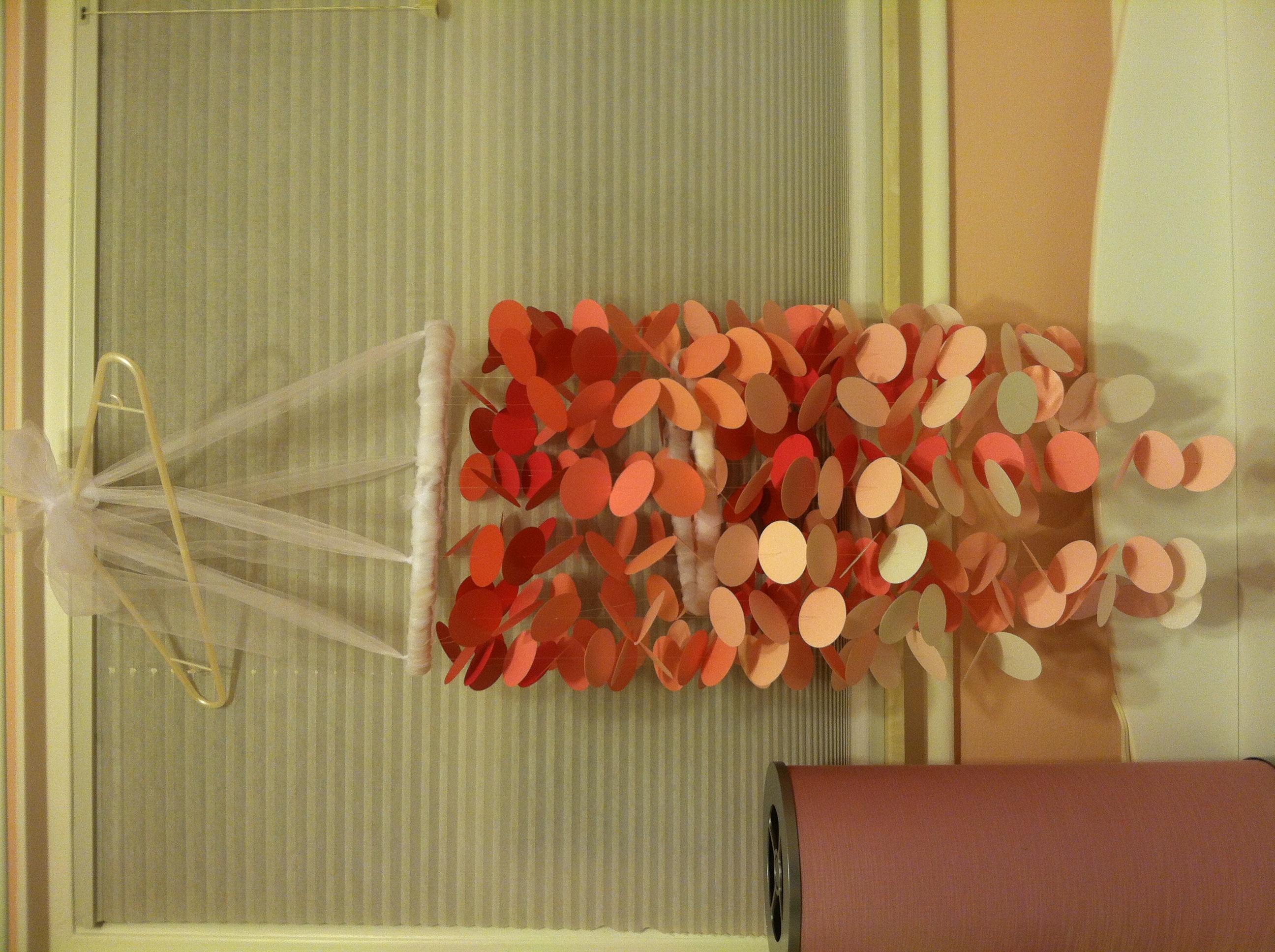 I have a million crafts going! I need to spray paint to finish several which hasn't happened due to the weather. This is the mobile I made for her room. The color isn't right in the photo but you get the idea