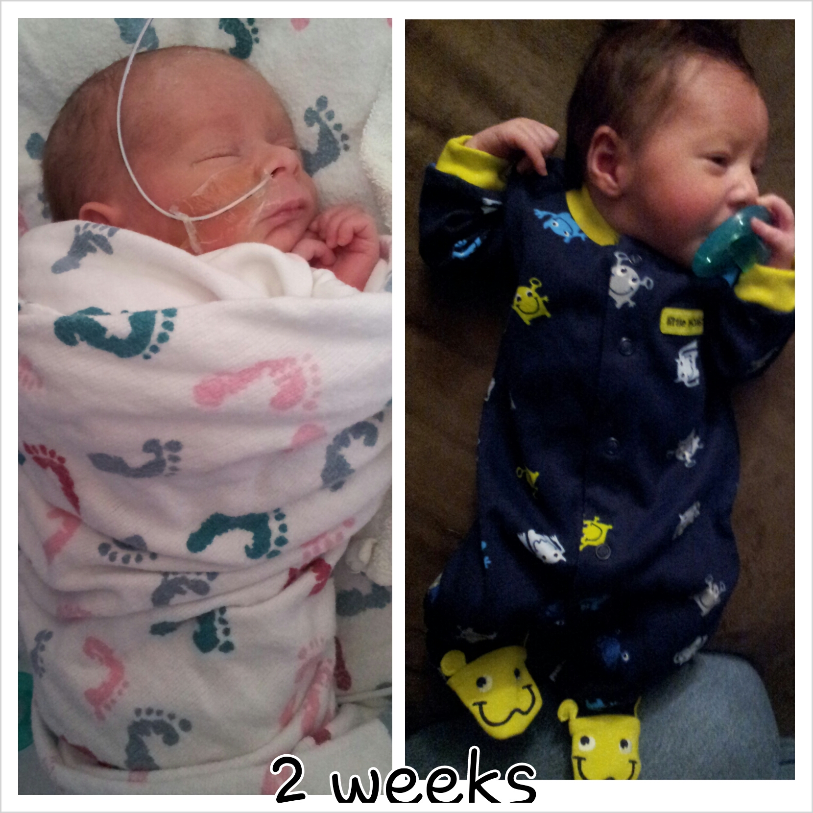 3. He's doing wonderfully! He is off the cannula still, and the picc line so the nurses say he can wear clothing now! We've been learning how to bottle/breast feed this week. He's a pro with the bottle, and at my breast he is getting a decent amount- today at noon he got 18cc at the breast and his normal feeding is 34cc. So we're getting there! The nurses told me this week that if his feedings go as well as they have been, he will be home within two weeks!