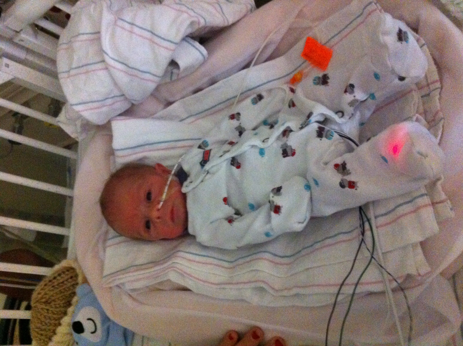 3. He's doing wonderfully! He is off the cannula still, and the picc line so the nurses say he can wear clothing now!
