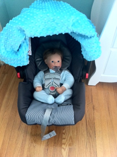Pardon the practice baby. I want my DH to learn how to safely get him in and out BEFORE he arrives.
