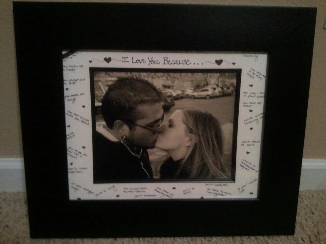 2. For one Valentines I got a large matted picture frame and wrote reasons I love him all over it