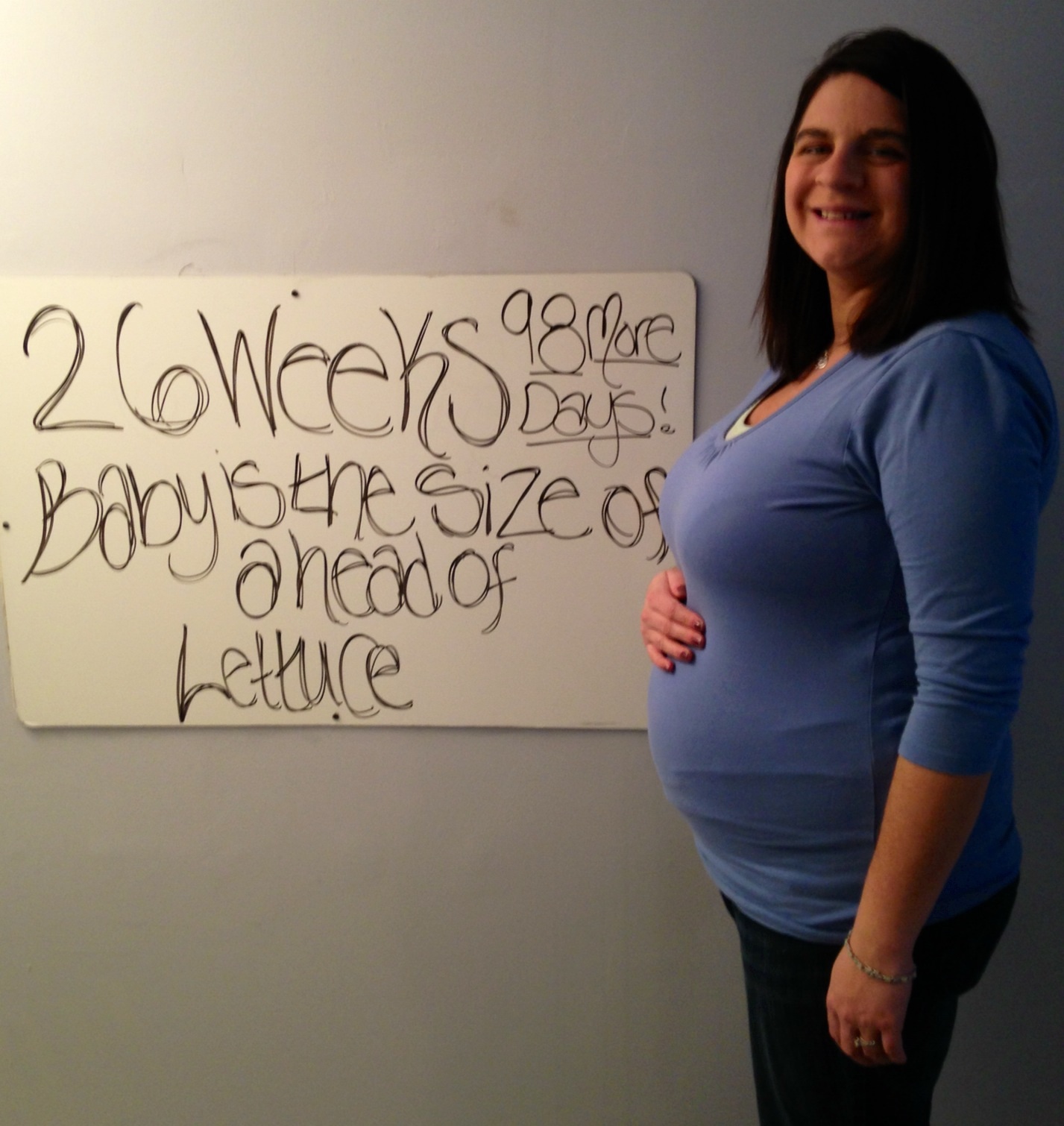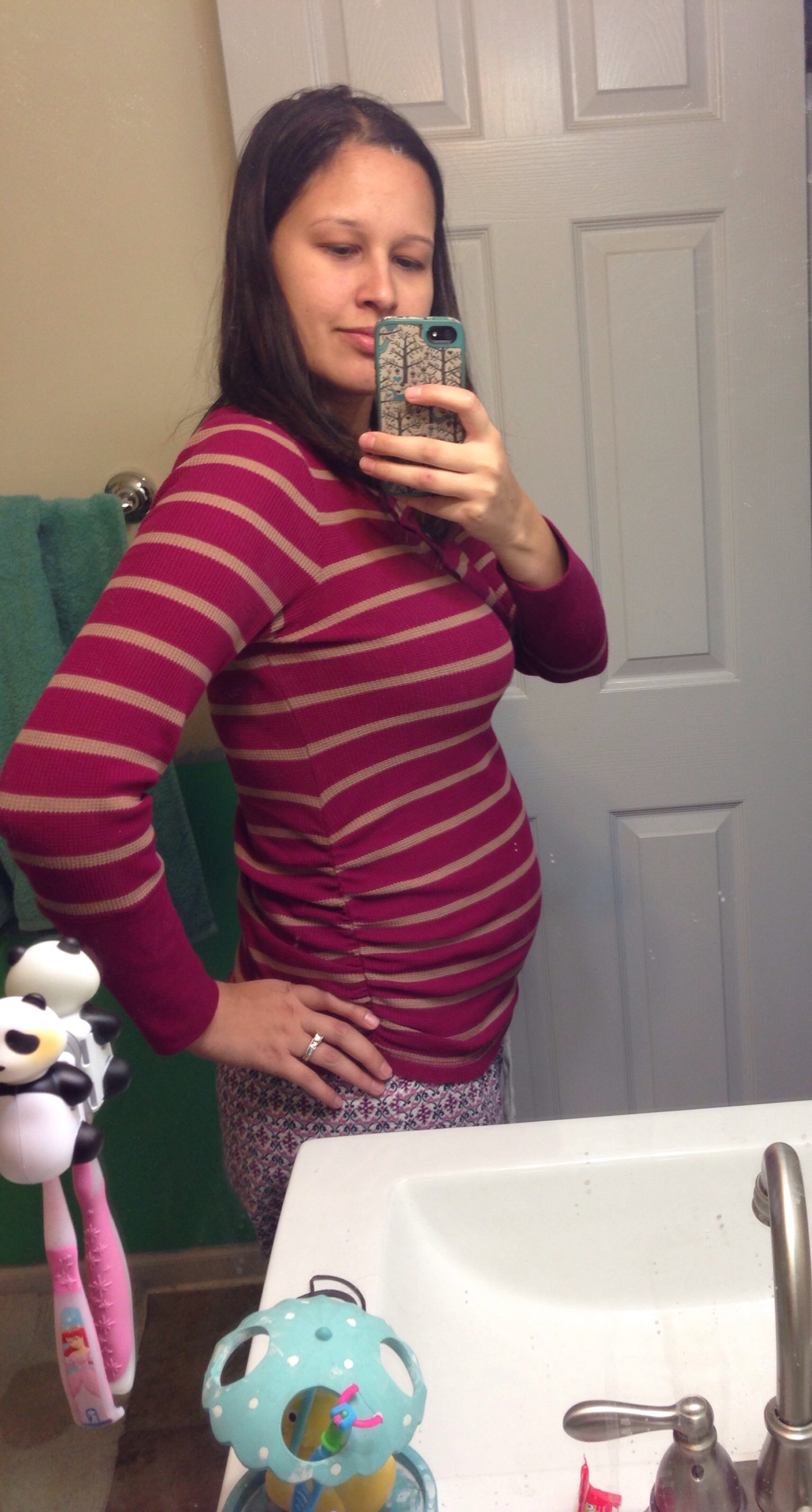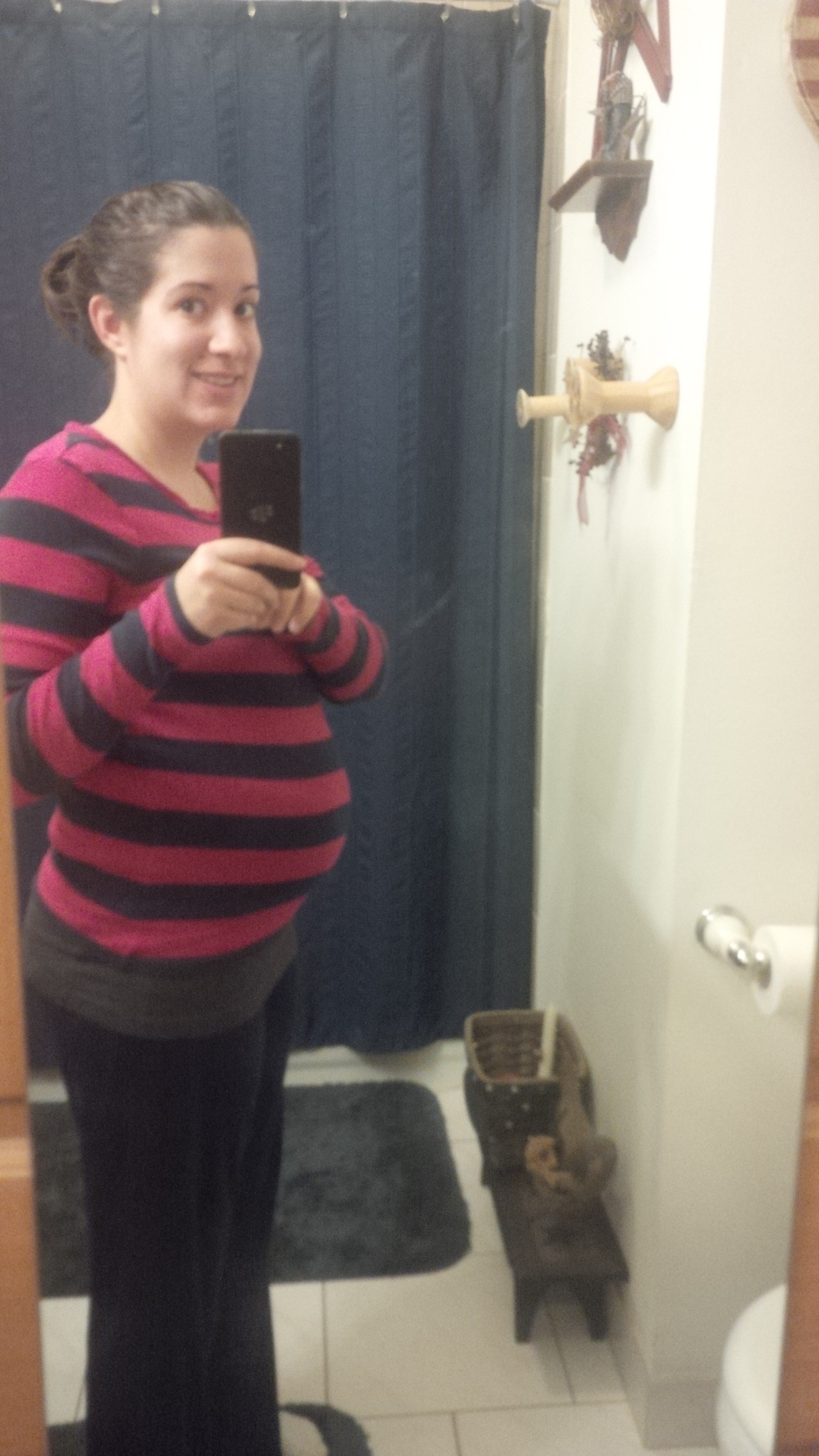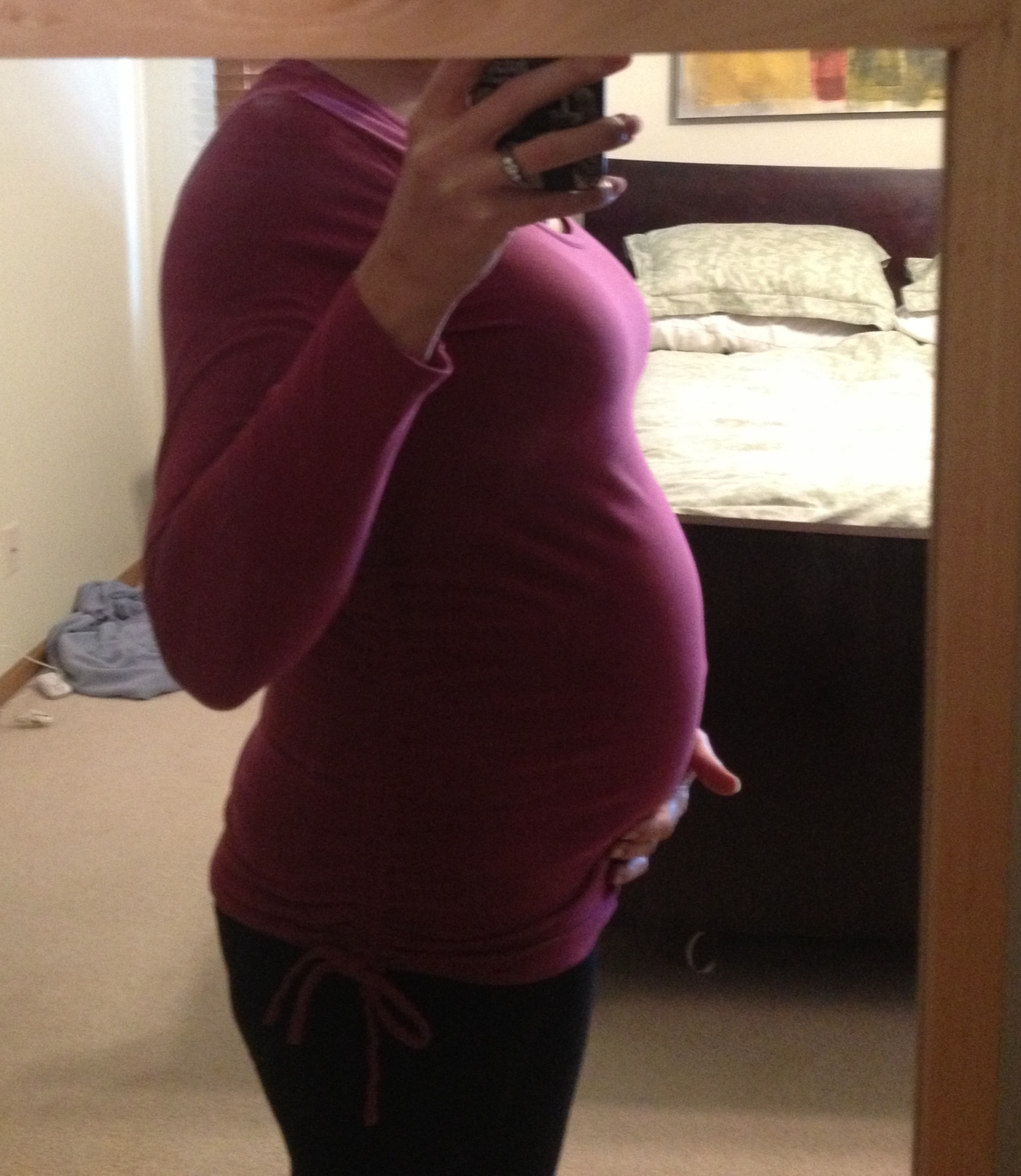26 weeks tomorrow, STM. I've finally resigned to the fact that I carry small and kind of all over so I'll never have the cute round big bellies I see. I know, I know, the grass is always greener