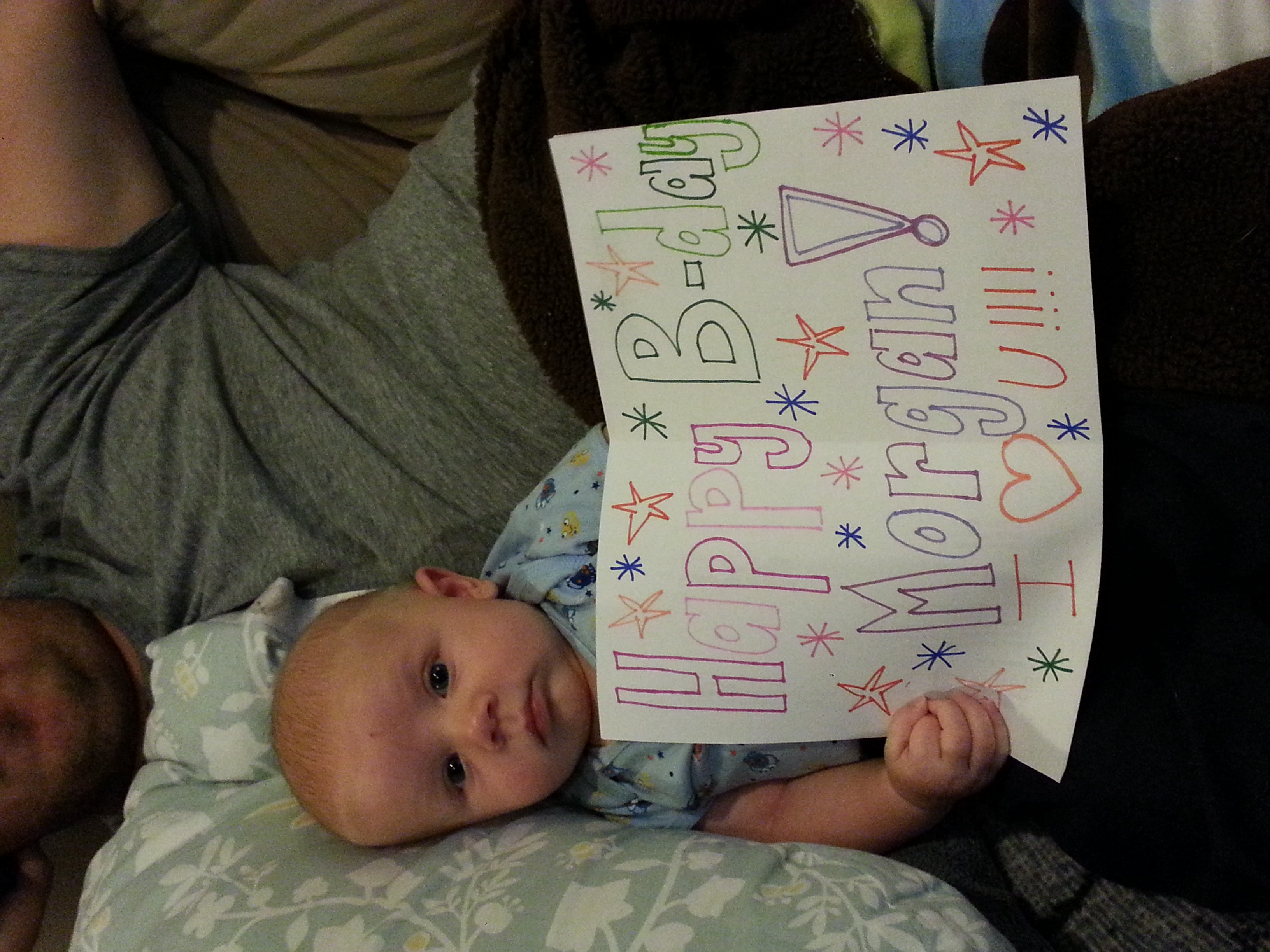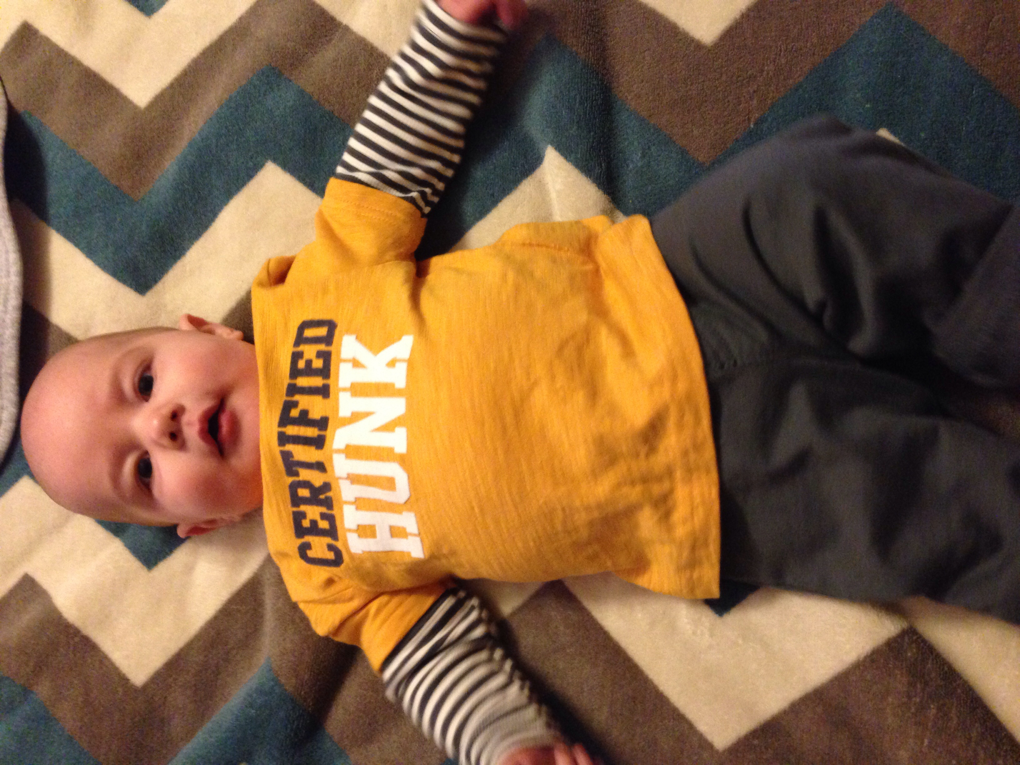 I took this on Sunday, it was my BFP anniversary. What a year we've had. Henry is 16 weeks today. He is happy most of the time and I've noticed him being much more observant of his surroundings lately. He's not rolling at all because he gives no fucks.
