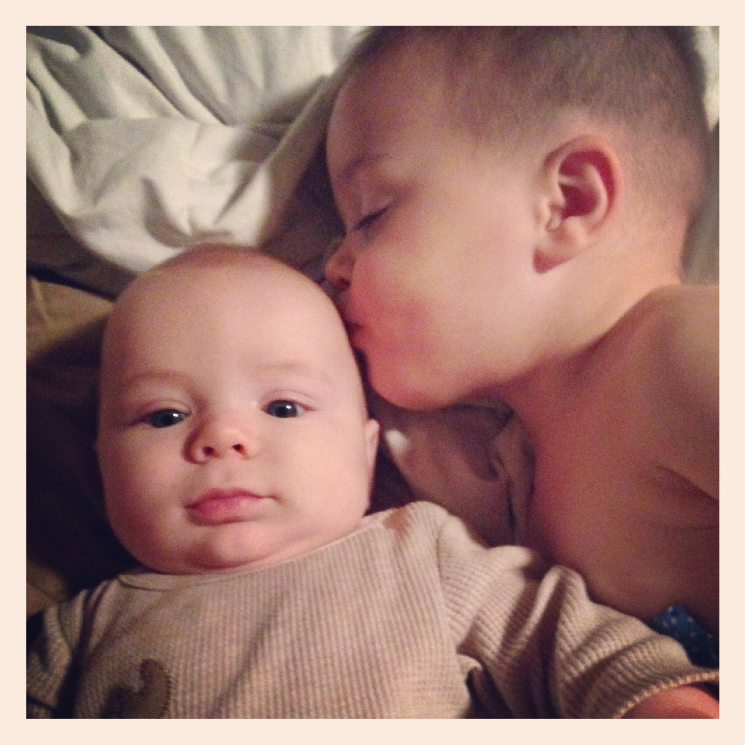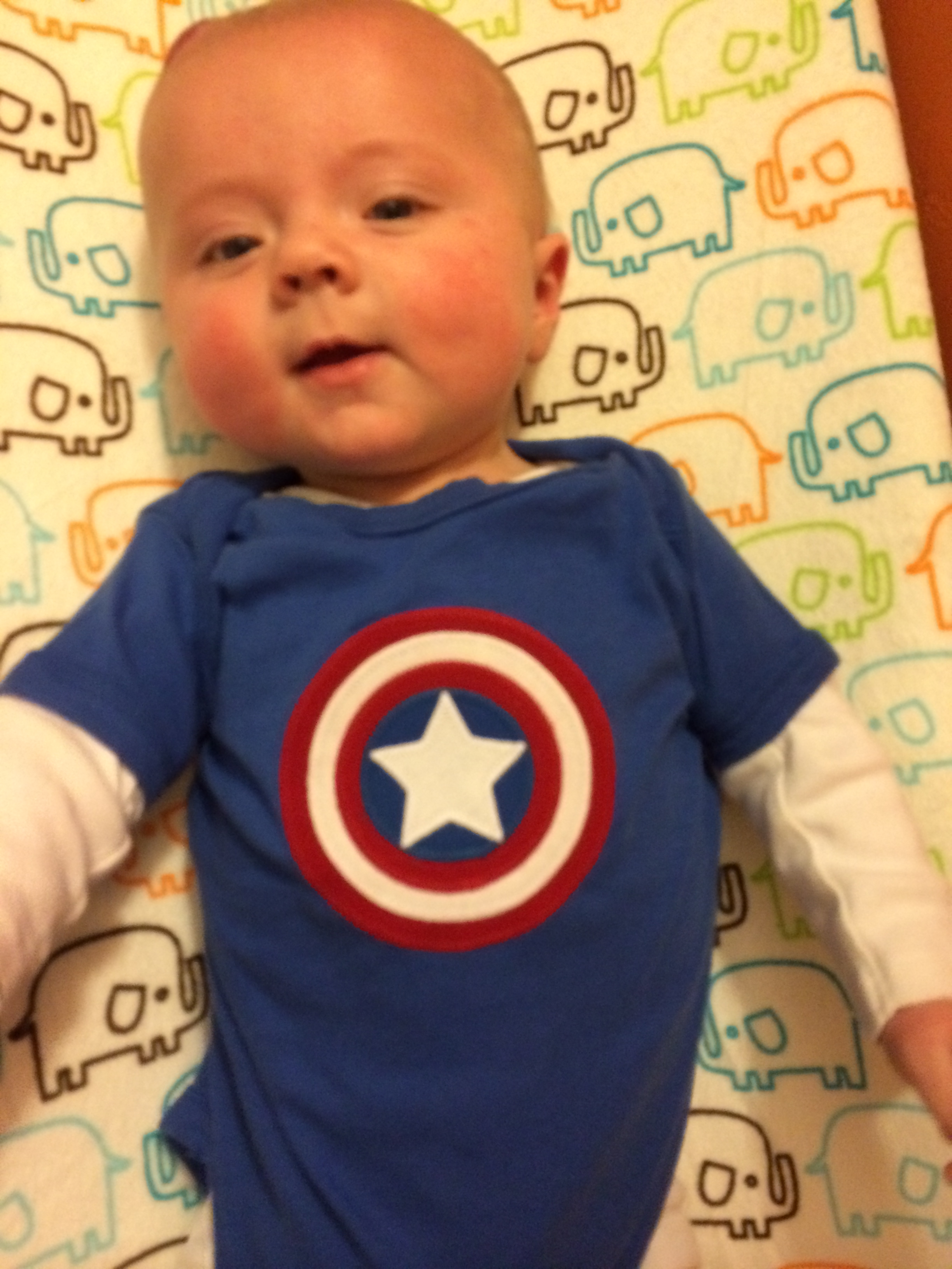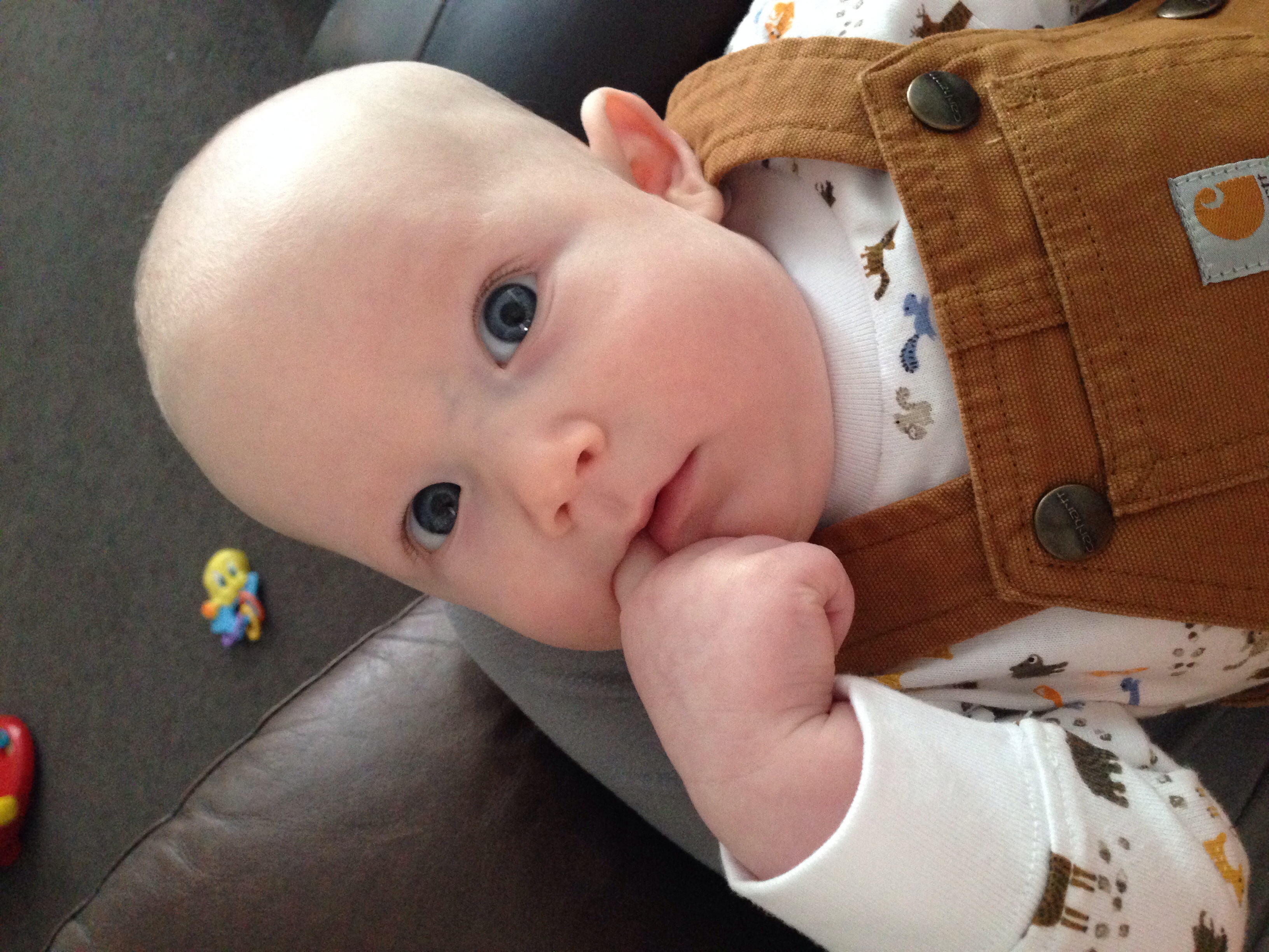 Cooper will be 4 months on the 11th. He has just started to really recognize brothers and sister and smiles when he sees them. He has a new super tooter - super power. His farts will make you disappear .