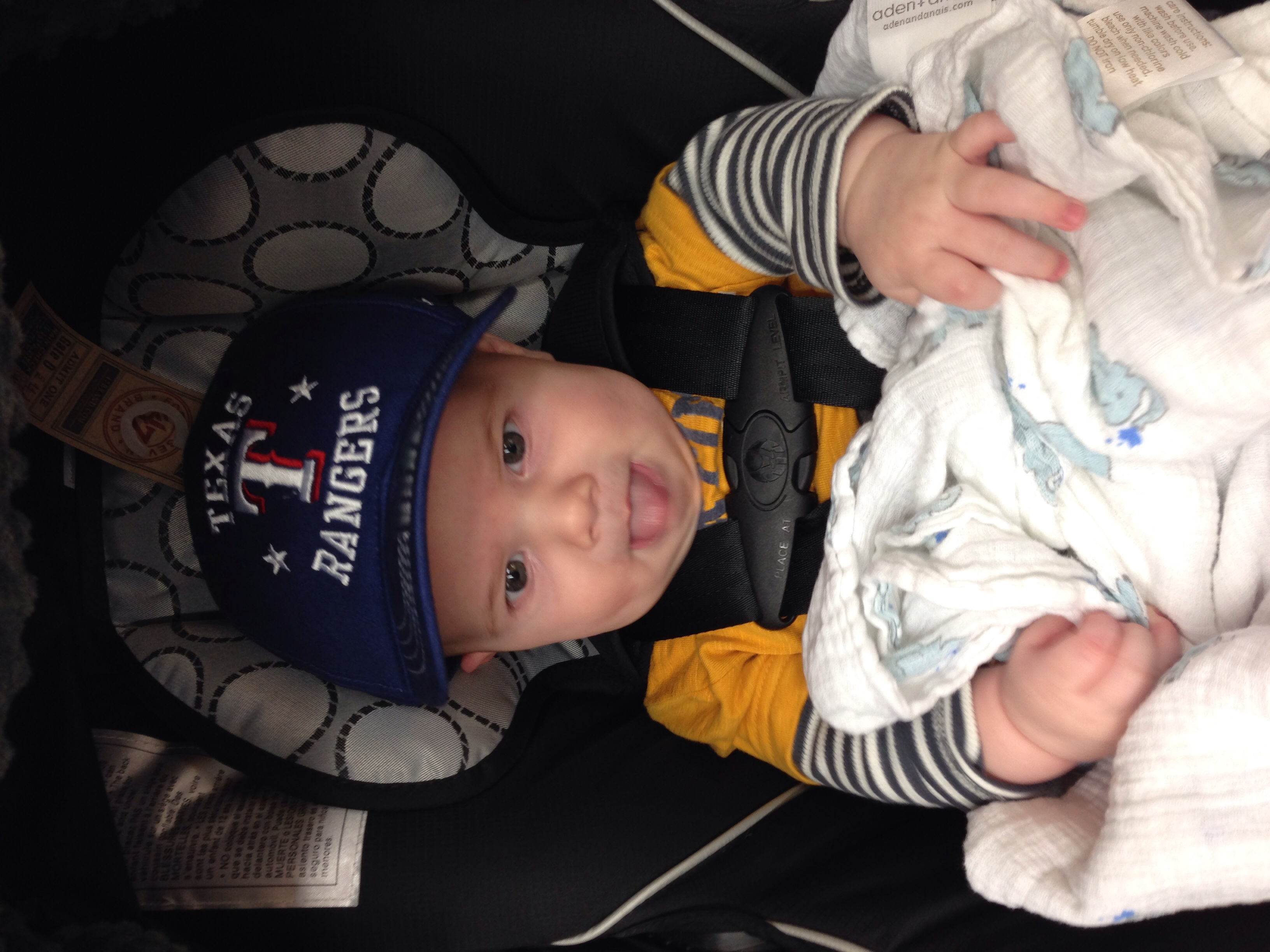 Maxwell turned 20 weeks on Saturday - time is flying! He is starting to try to pull himself up into a sitting position, although I think we still have a ways to go. He went on his first airplane trip this week, and is now fighting his first cold (coincidence...I think not!).