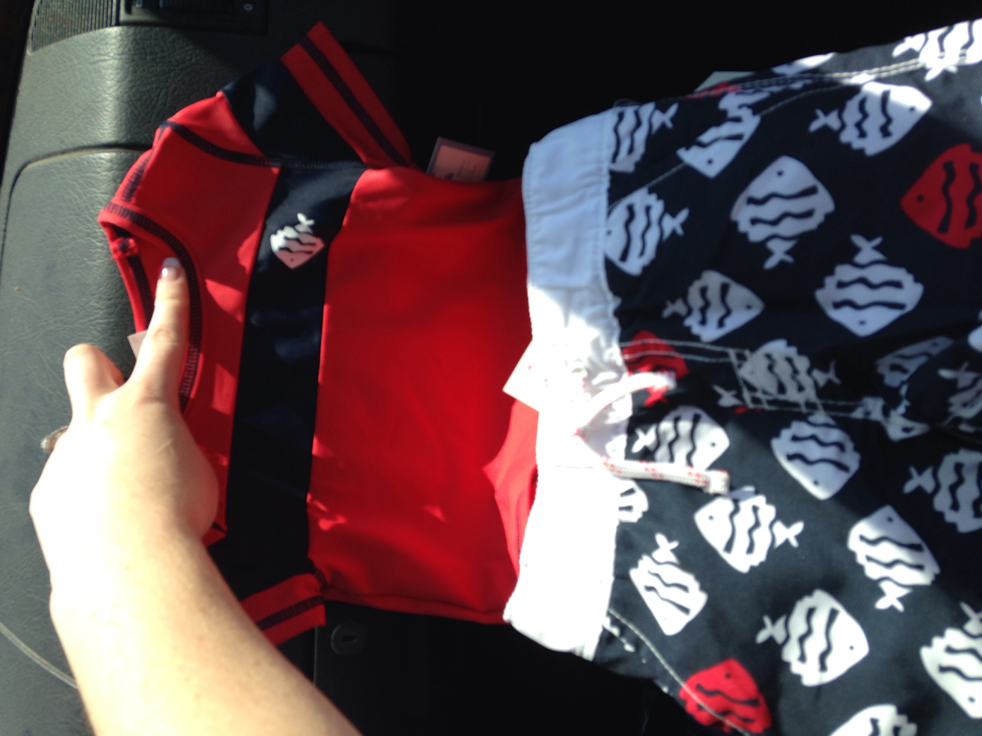 Ears pierced at 8 weeks and swim suit when we found out we were having a girl!