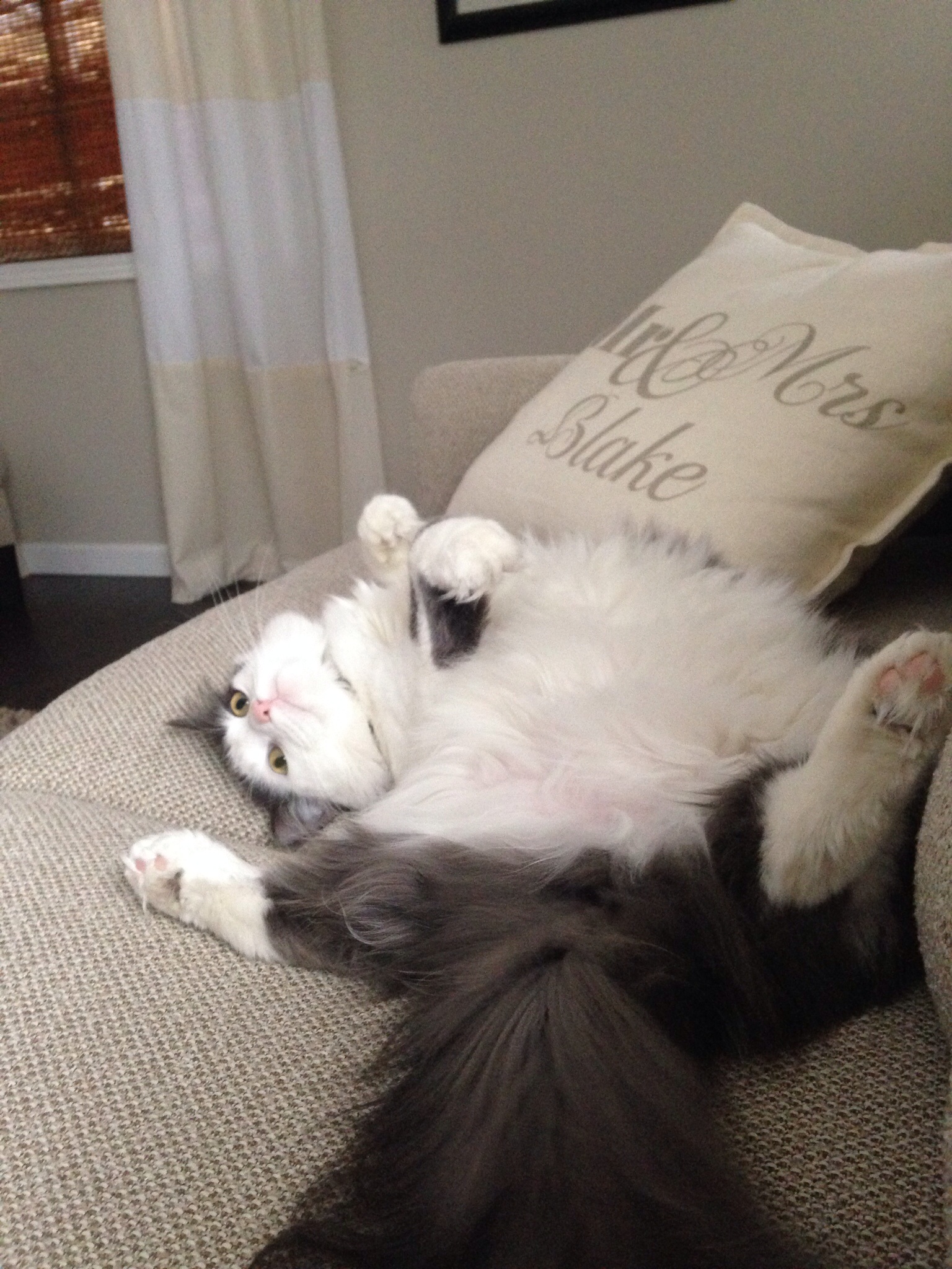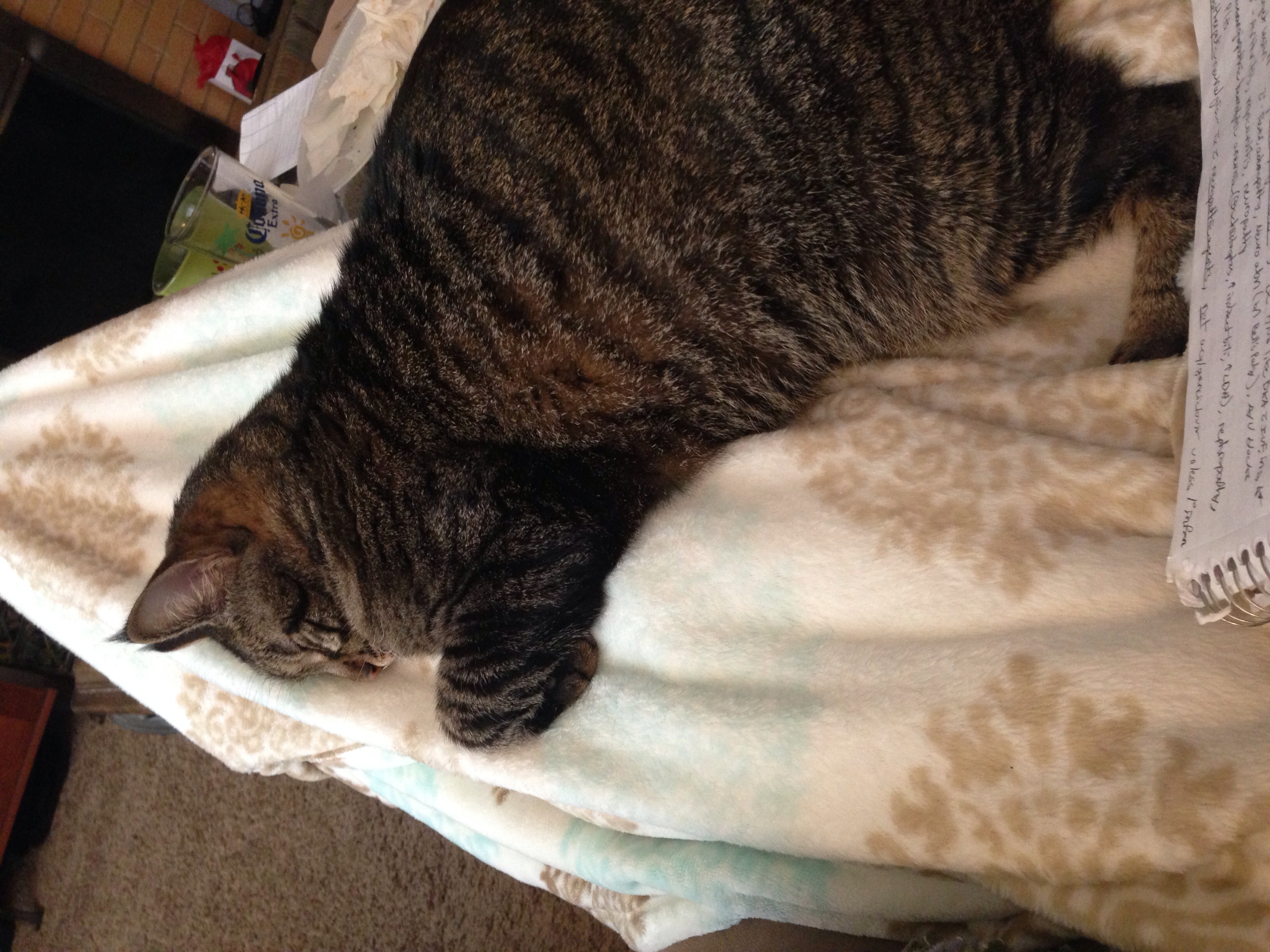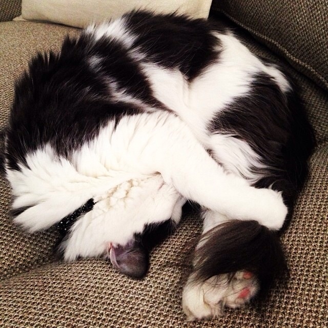 • Snuggly Minko (not sure why its upside down) & the kitty In front of the Tv is my brothers, Leeloo, she was watching olympic prelims. Thought it was too cute not to share.