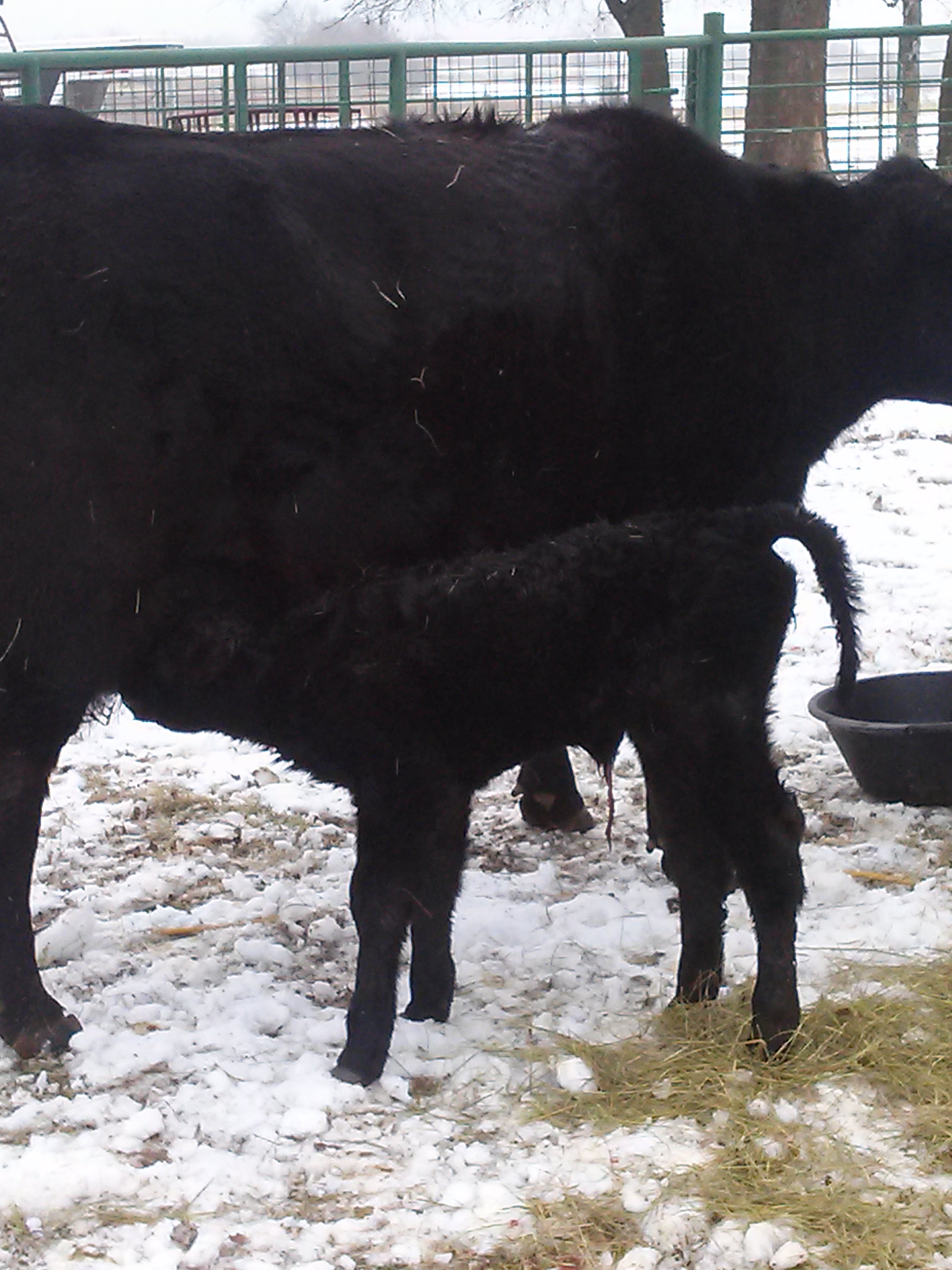 I took her up to the pens by our house; momma followed right along. It was too far for me to carry her and our ATV wouldn't start. Kept her under the heater in the floorboard to warm her up. Baby calves can freeze to death. DH took the truck to work and my SUV is at the body shop after the car accident on Tuesday so this is my rental.