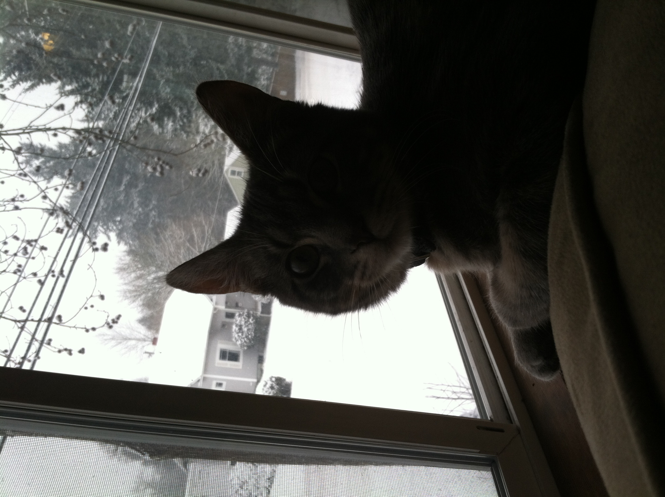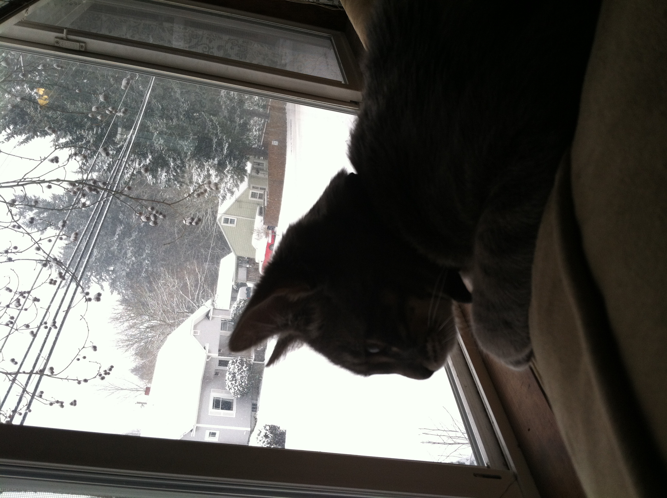 • Here's Benji this morning. He is watching the snow fall. imageimageimage