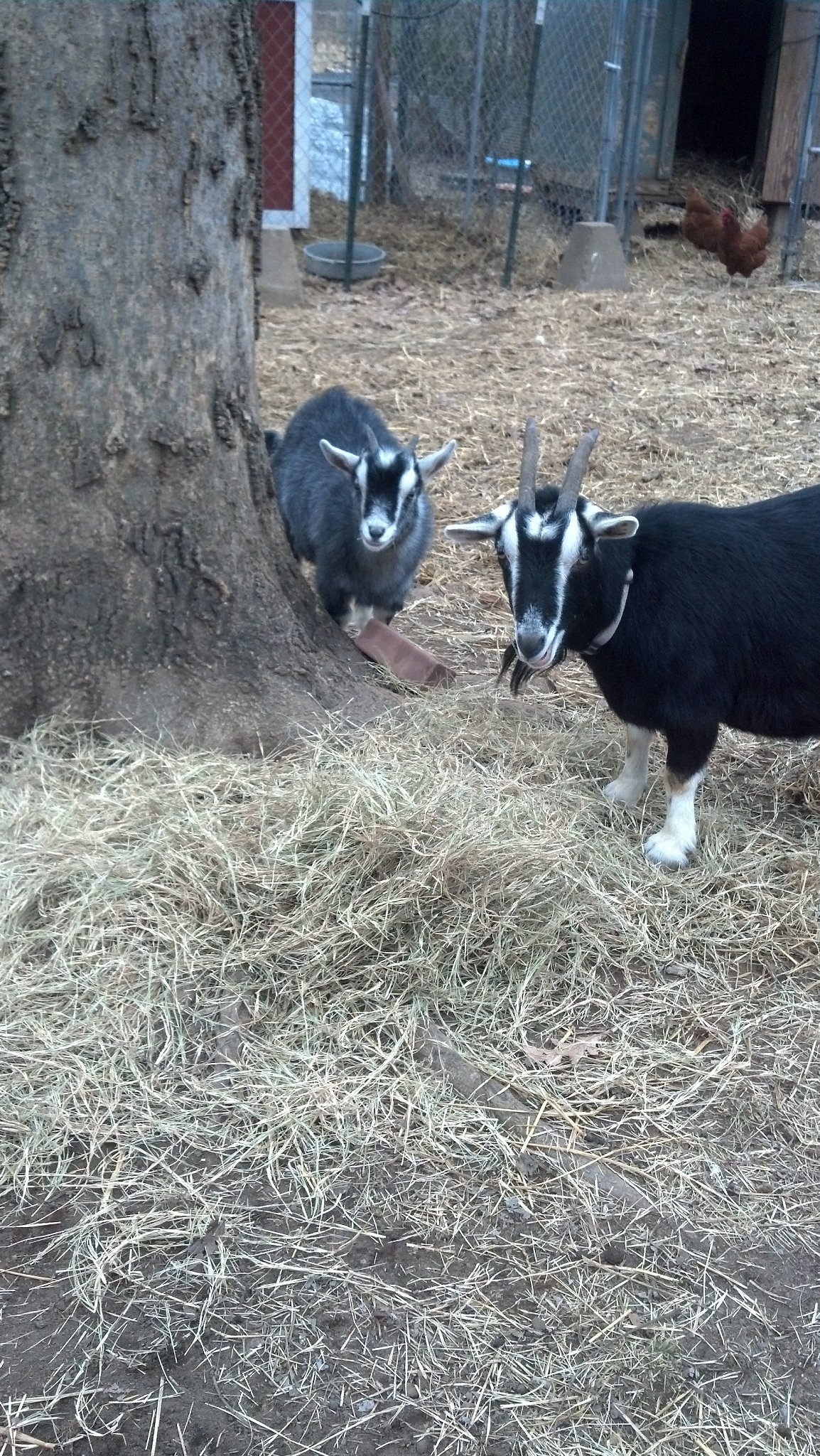 It's FRIDAY!!!!!! Time to show of the critters! I haven't had a new pic of the goats lately so here you go. These are from Saturday when it was 60 degrees out. Now it's 20 and Mildred is pissed. She really got mad when it snowed yesterday. The first one is Daisy and Mildred. For those of you who don't know, Mildred was raised in the house because she had to be bottle fed. She is so spoiled. She just turned a year old. The second pic is Pauline and Mary Jones. MJ is the baby that was born in October. The last pic is what happens every time I try to take pics of the goats. Pauline does that until I reverse the camera on my phone and let her see herself. She's very persistent and will jump up and try to knock my phone out of my hand until I do it. Every. Single. Time. Lol.