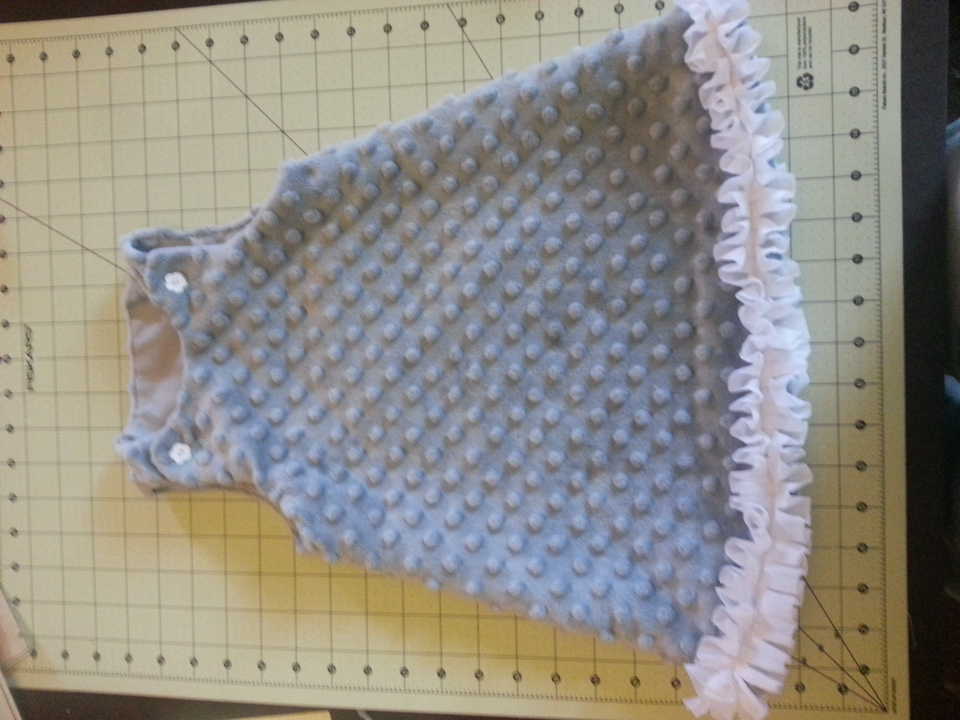 I made a dress for lo yesterday. I'm pretty happy with how it turned out. It was my first time working with ruffles. Turns out lining them up along the hem takes a little finesse. I plan to make another in cotton. I was kicking myself for choosing minky fleece for my first attempt at a new pattern.