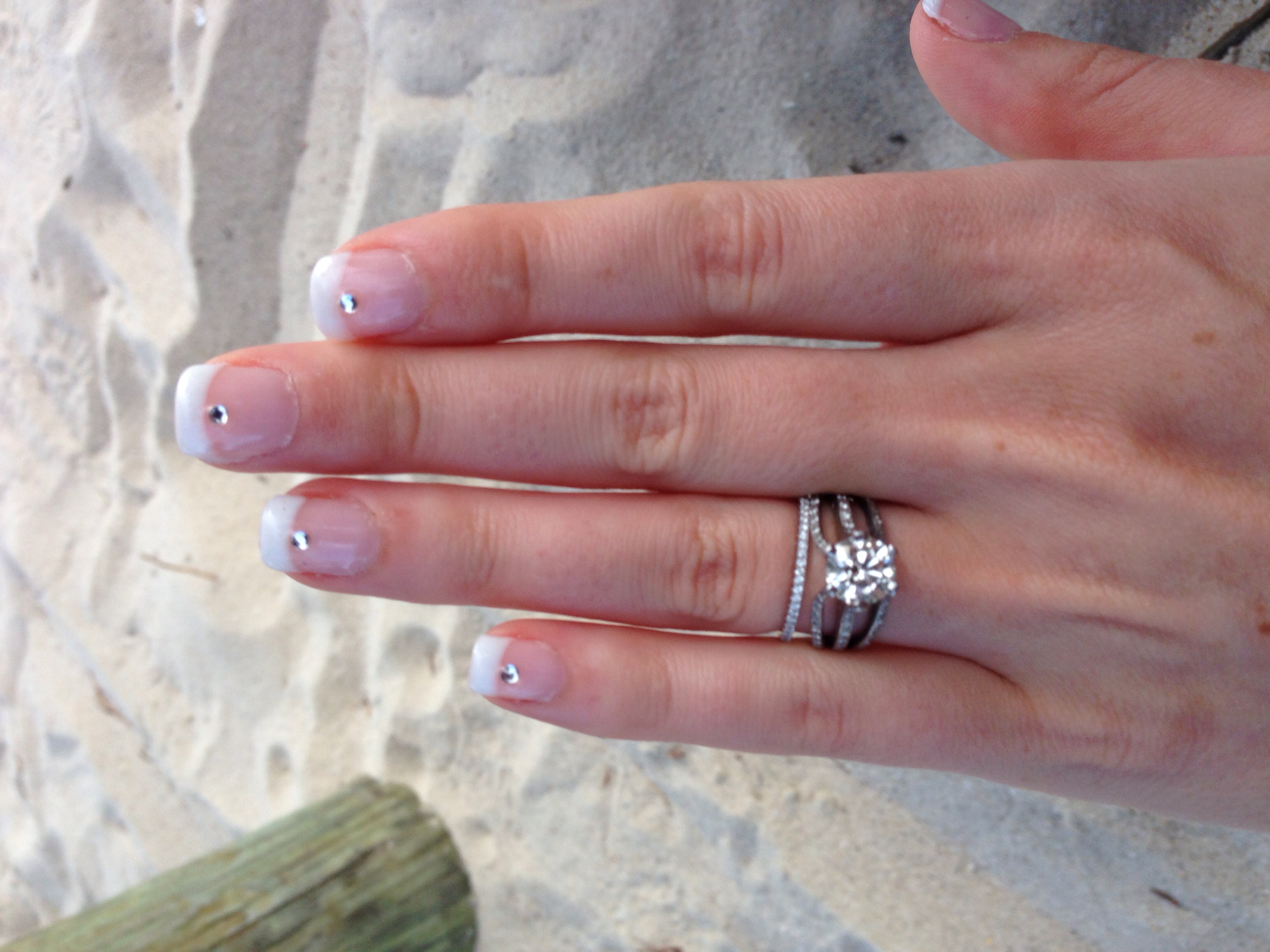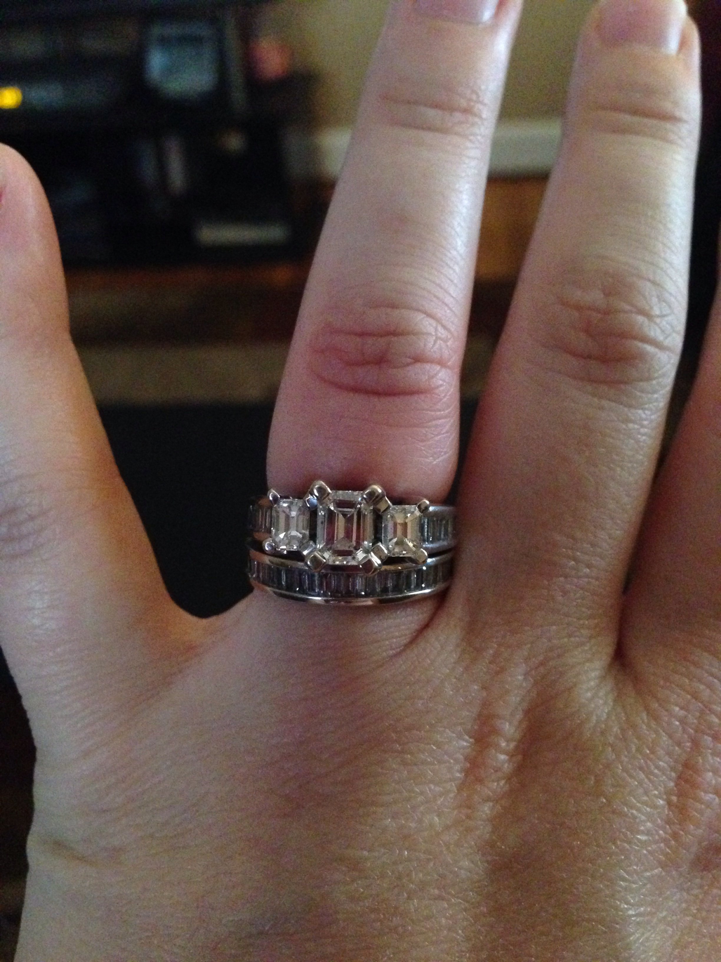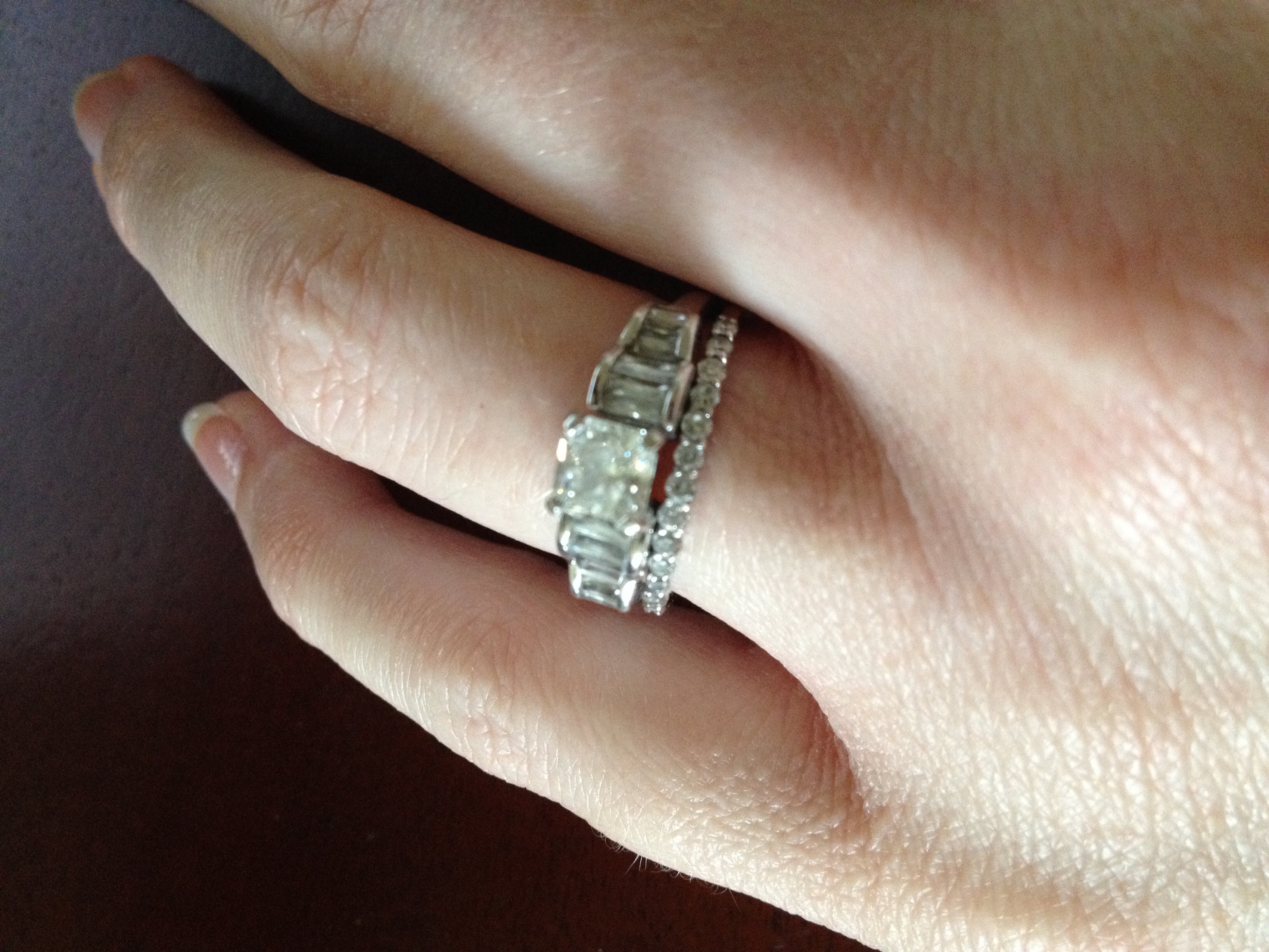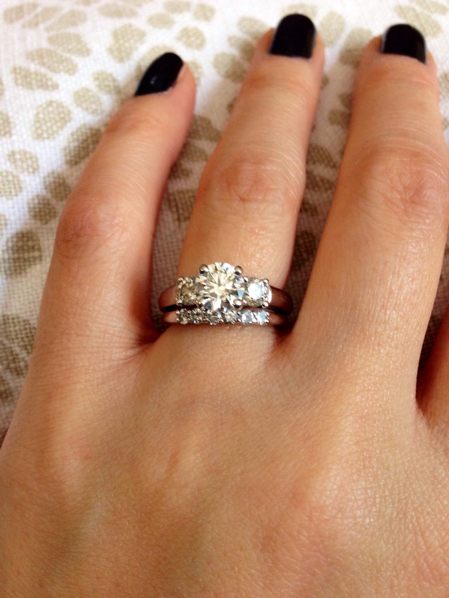 Because of the ring's design (there's like a band under the ring itself), I can't seem to find a wedding band that I like to go with it. So, even though we're married, I still haven't gotten a wedding band.