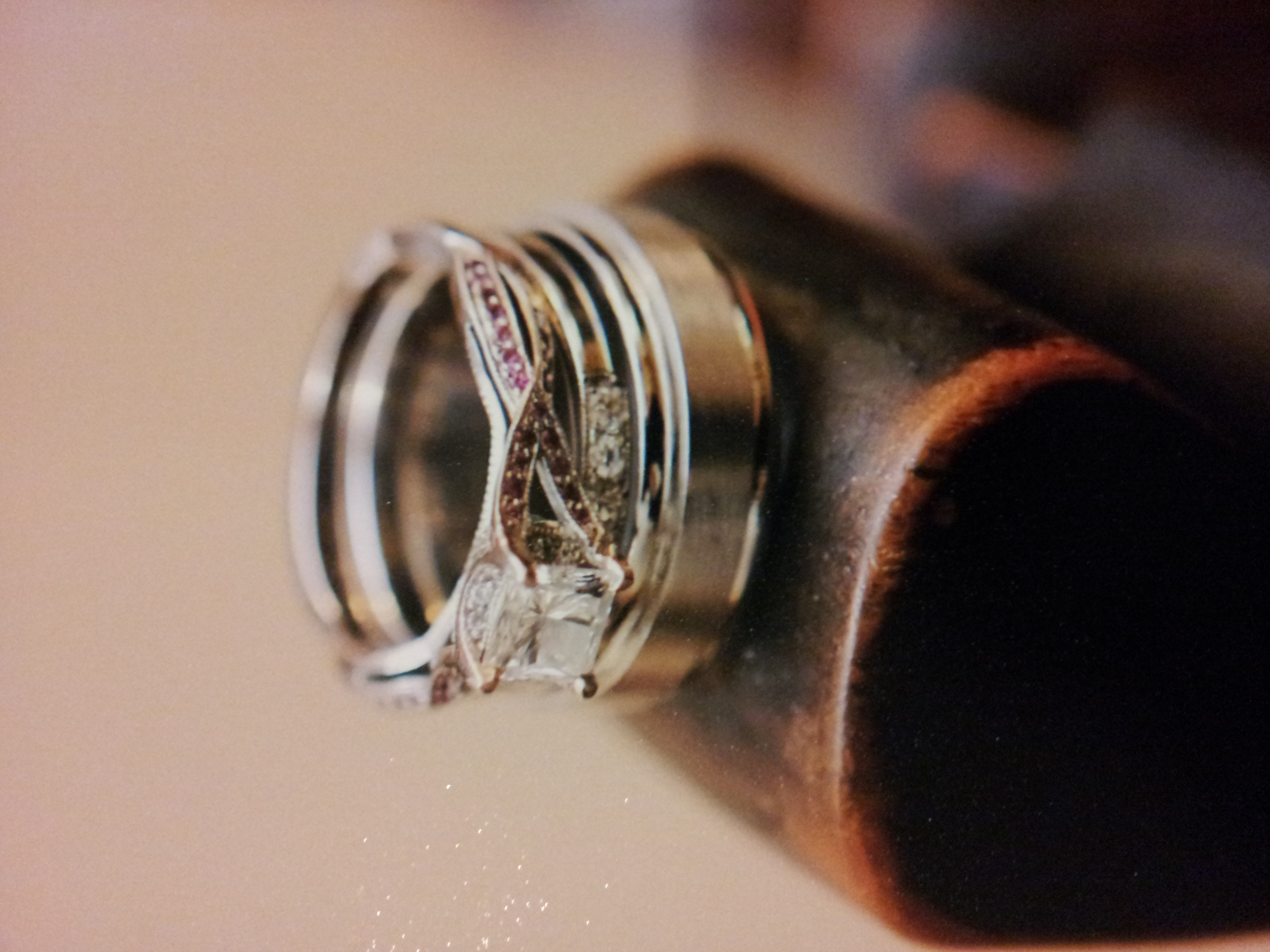 • I'm late, too. I've enjoyed reading all the stories behind the rings. There are so many unique rings are out there! My DH picked the engagement ring out all on his own. The diamonds in the wedding band are from my grandma's wedding rings. She passed right before my DH proposed but knew that he was going to.