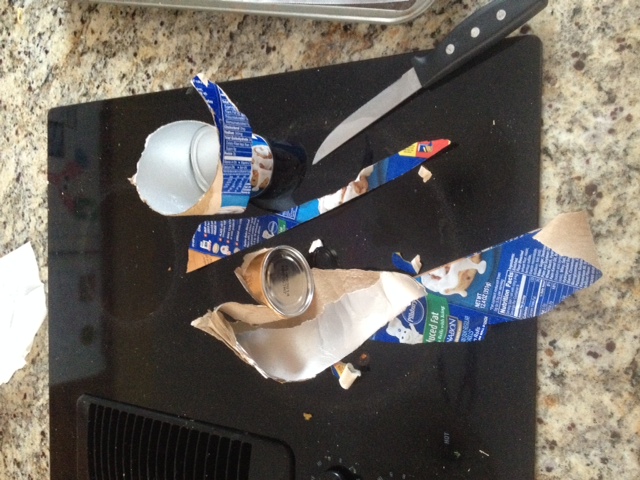 And this is what I had to resort to to make cinnamon rolls this morning. I tore off all the paper and they still wouldn't open so I sliced it in half. DO NOT EFF WITH ME DOUGH BOY. I want my cinnamon rolls.
