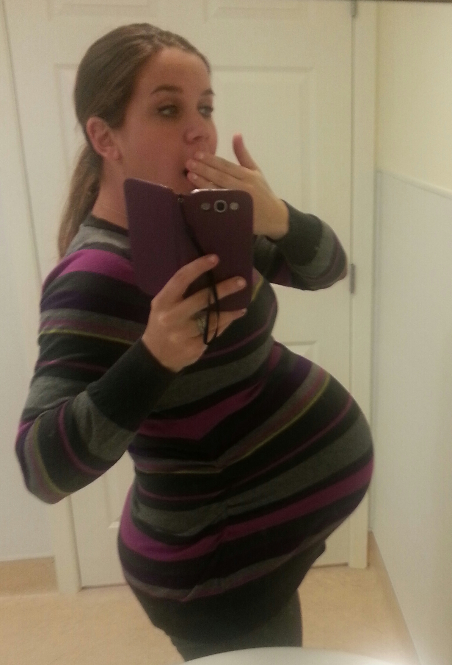 Here I am at 30w tomorrow with these boys. Had to fall asleep with my phone open to pandora on classical music pushed up against the belly and under the sheets to get them to stop moving around.