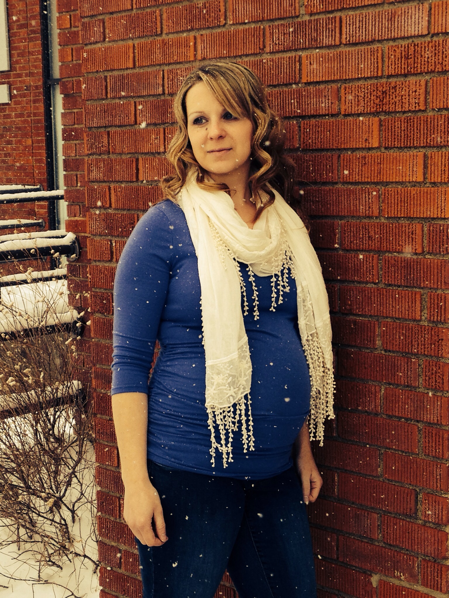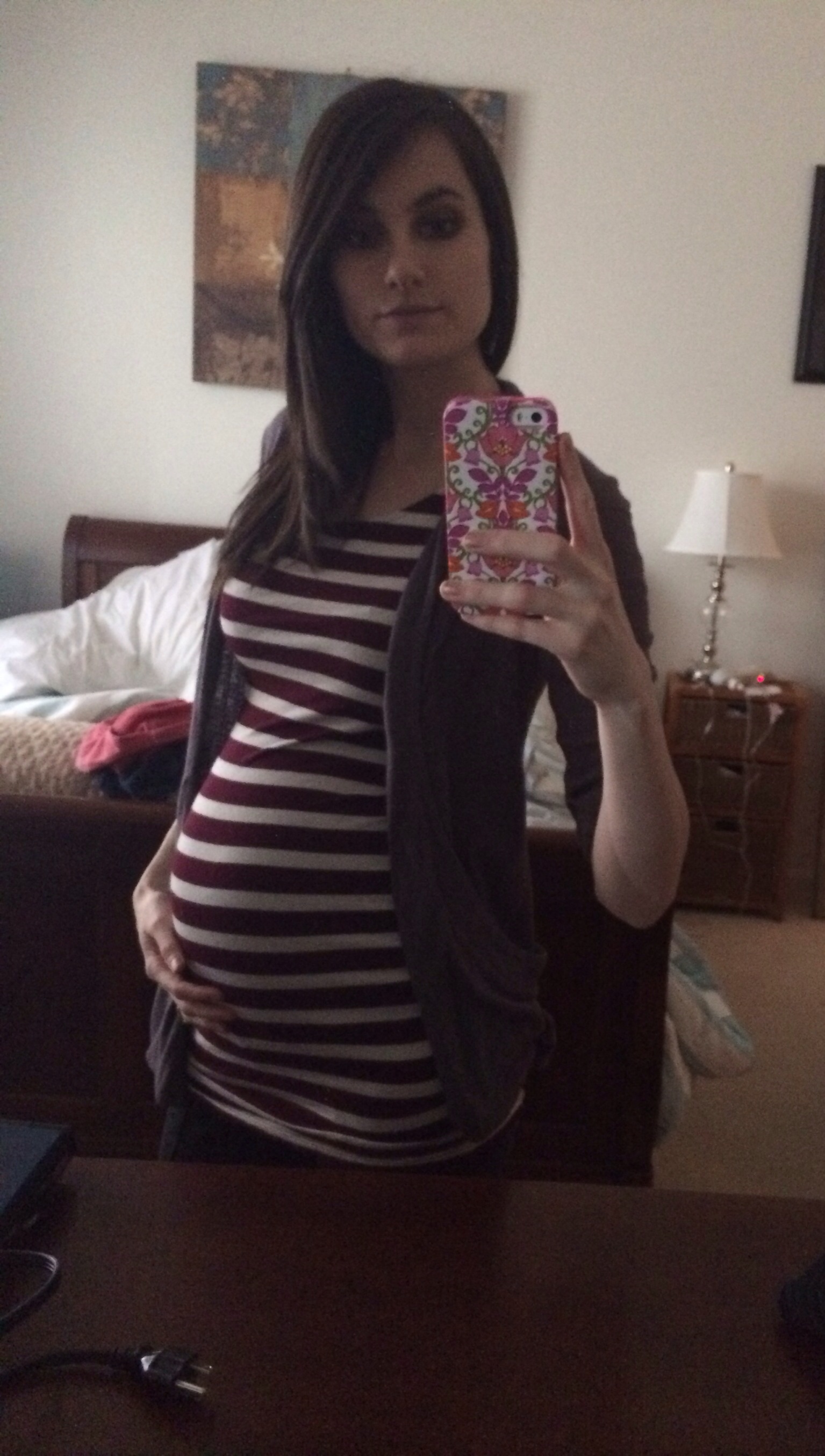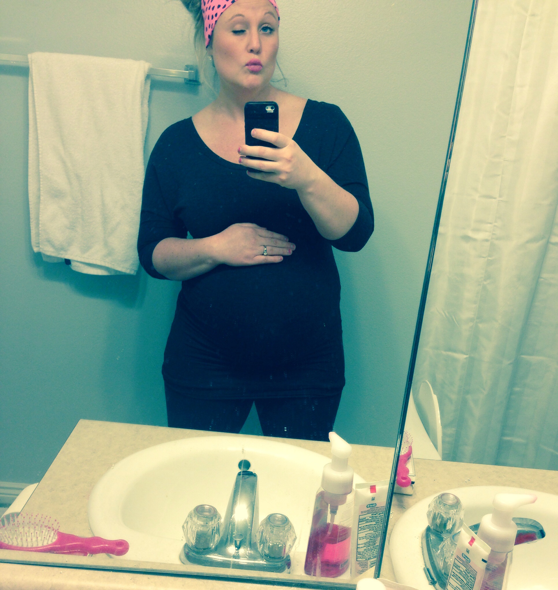 30 weeks 1 day...still getting over my stomach bug but I tried to look nice for HDBD. I think my favorite sweater has had enough of my growing belly lol.