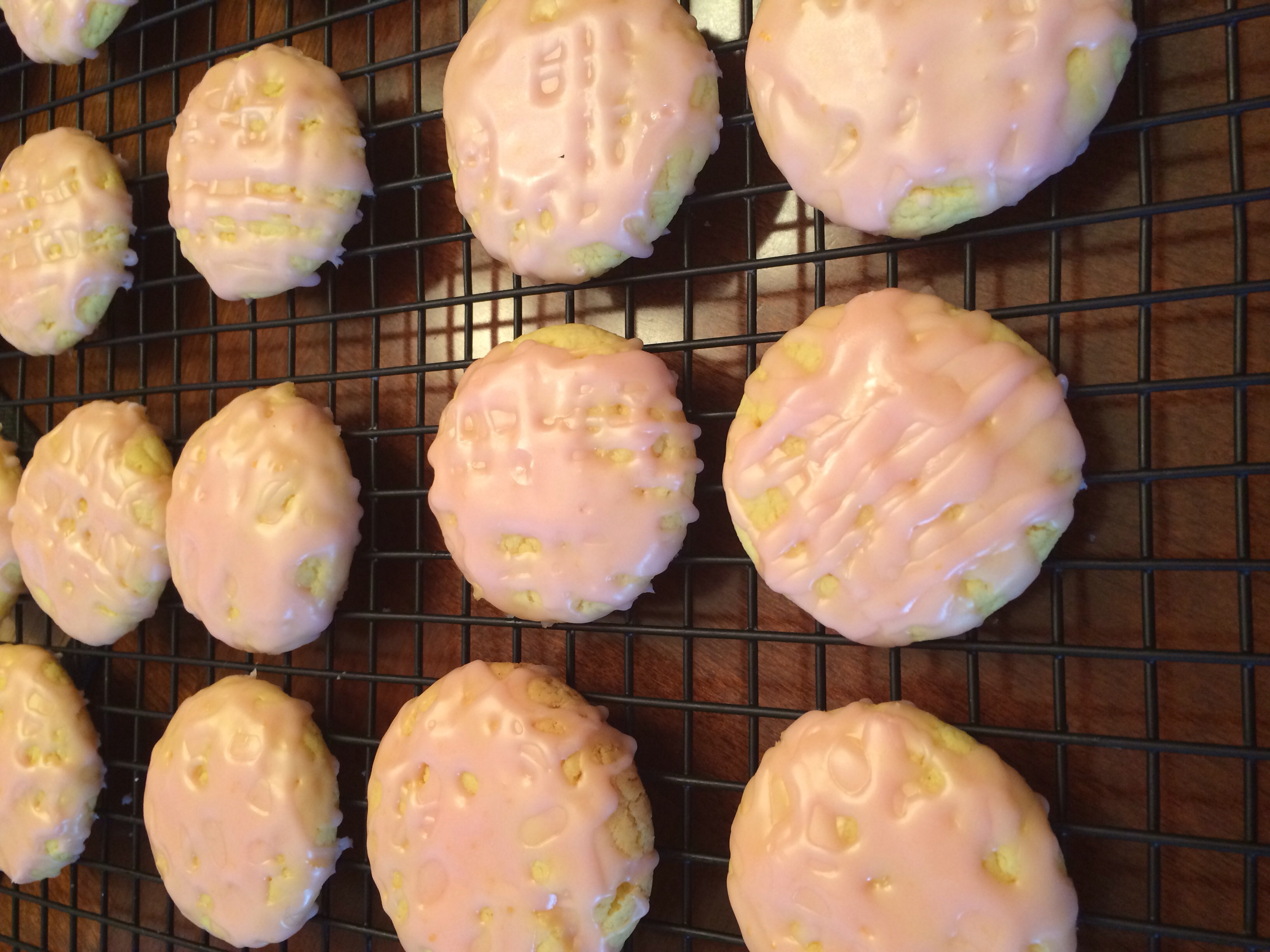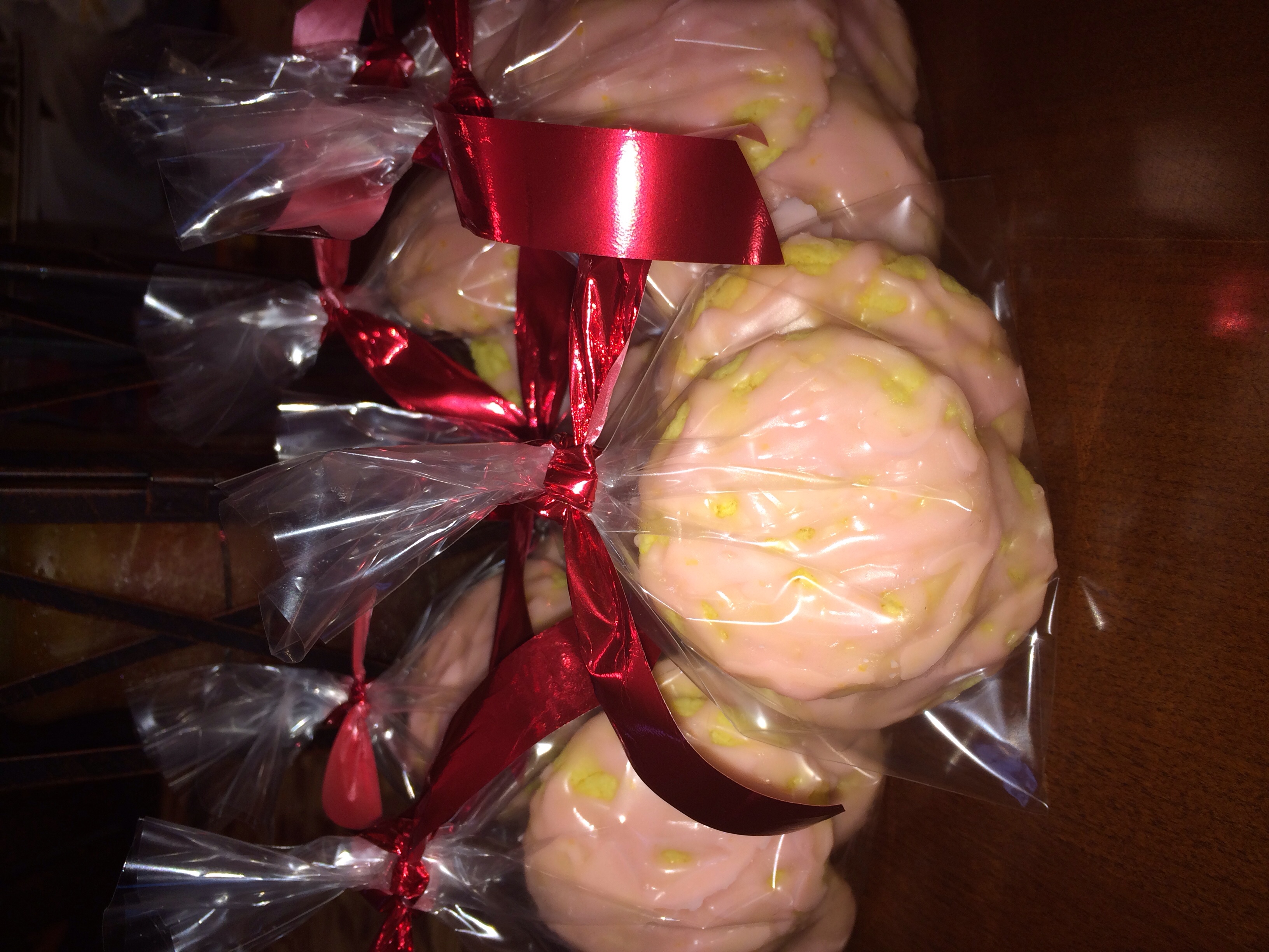 • Here are my Vday lemon cookies! They are super tasty!! I made the frosting a little pink for the occasion. I also put them in baggies. The end.