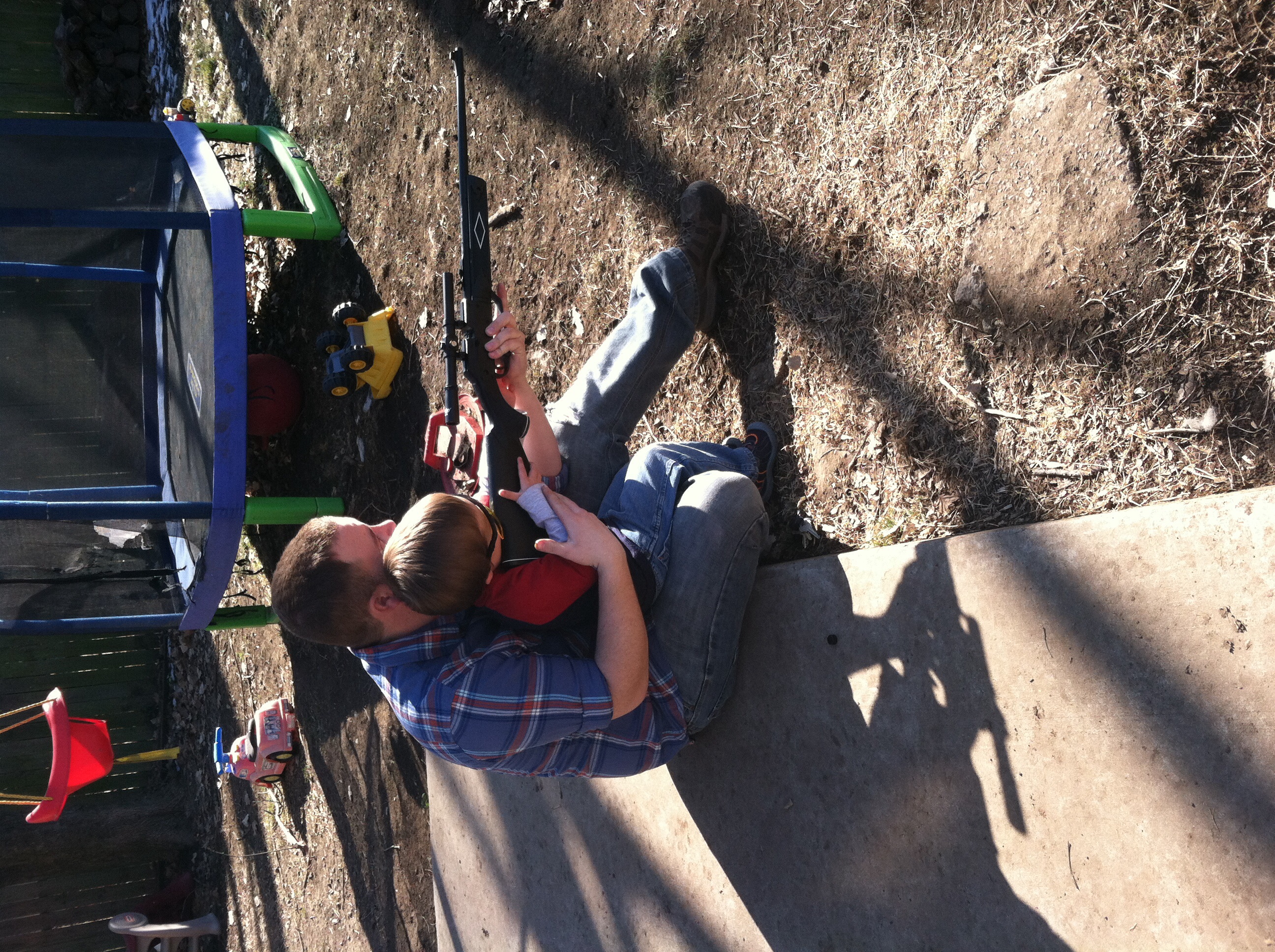 Ds is 3 and dd is 8 1/2 months:) gun safety is huge. Ds just has a BB gun right here but knows the rules:)