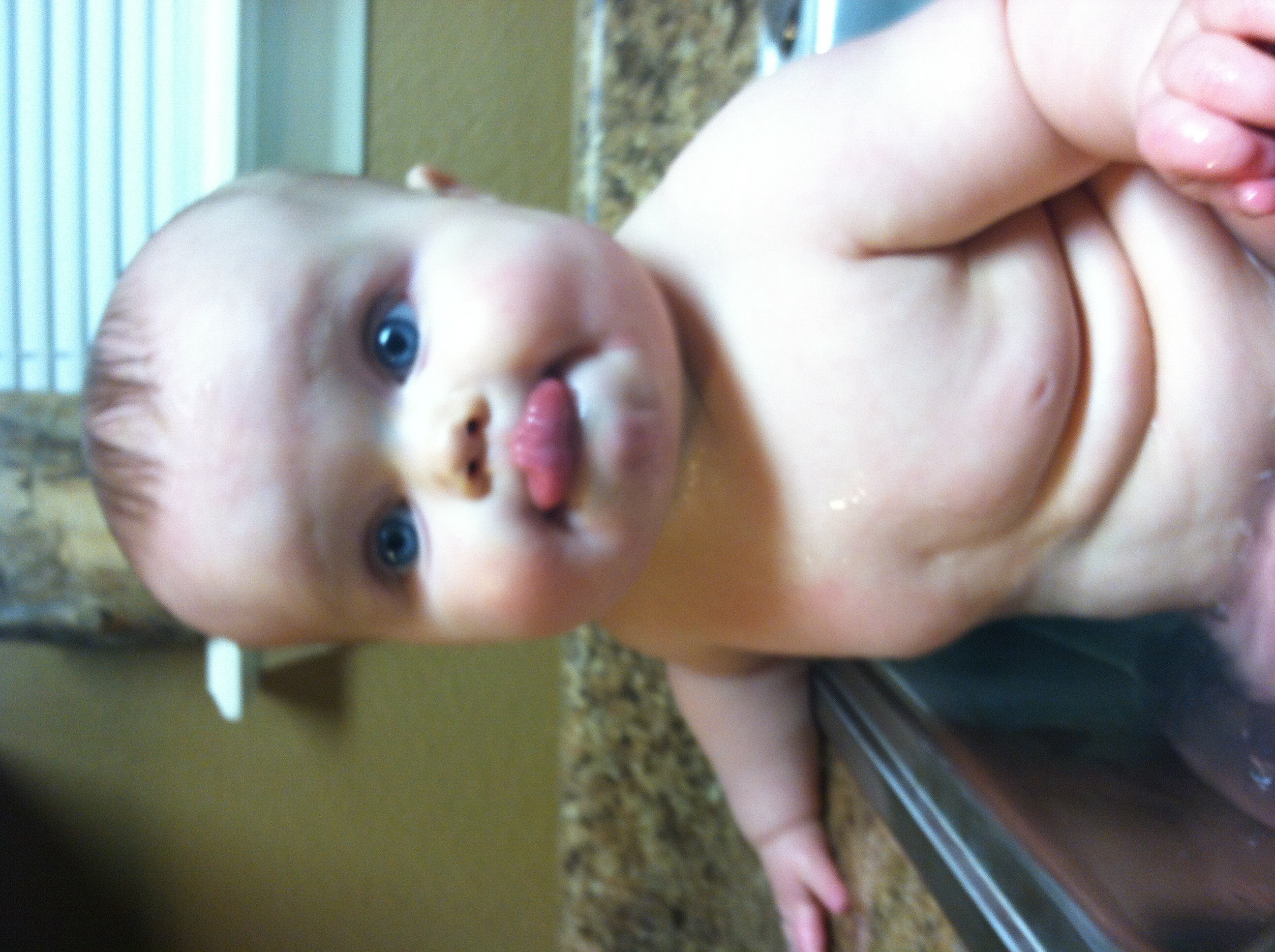 She's 24 lbs!!! My chunk:) I love it! And she just started the tongue thing I loooove it! Thank you:)