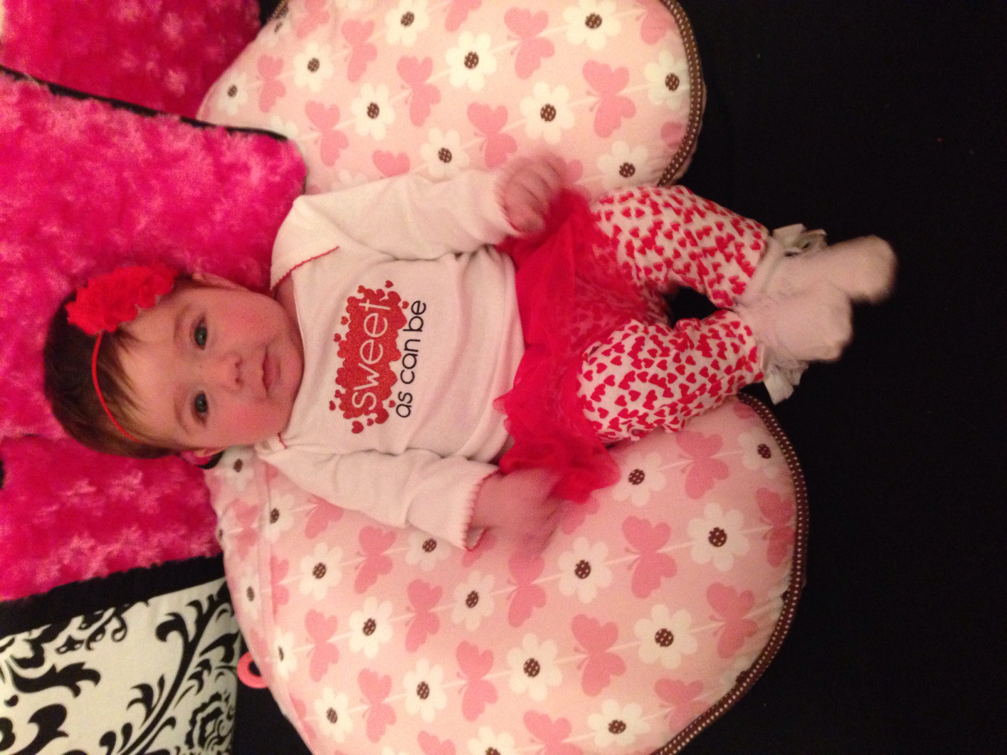 • I pre-made blackberry cream cheese "sweetheart" rolls yesterday (no small feat with LO) that I finished baking for breakfast during her early AM feeding. I also have cards from me & LO he'll get tonight, and making his truffles this weekend. I just took pictures of LO in her Vday outfit with an "I love you Daddy" sign and sent them to DH at work. We're going out to dinner tomorrow with LO, courtesy of DHs grandma. Our alone Vday is Sunday; fancy dinner & seeing War Horse on stage. I happen to know that DH bought an iPad (I got an credit alert on my phone for a large purchase), but I don't know if it's for me or us...either way, yay :)