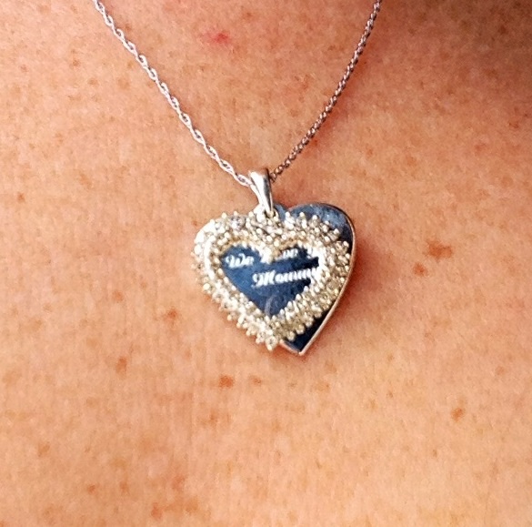 • H and Cameron surprised me with this diamond pendant. The front is engraved with "We love you Mommy" and the back of the heart is engraved with "Love Cameron & Dad". We usually don't get each other gifts for Valentine's Day. But this is so cute and sweet!