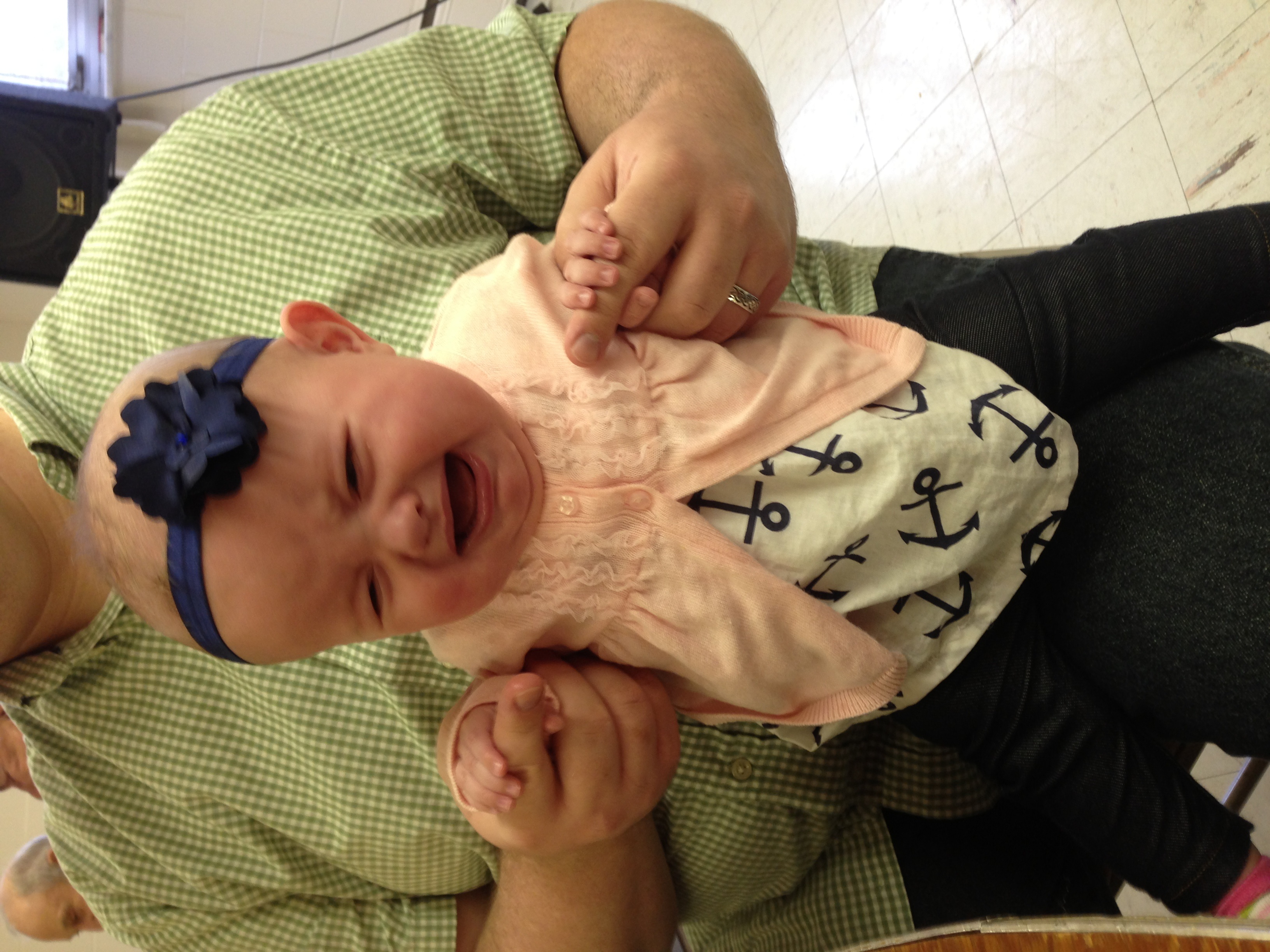 Babies in head gear- in this case sobbing