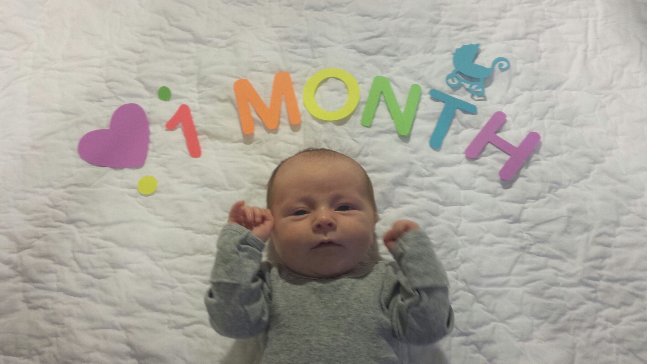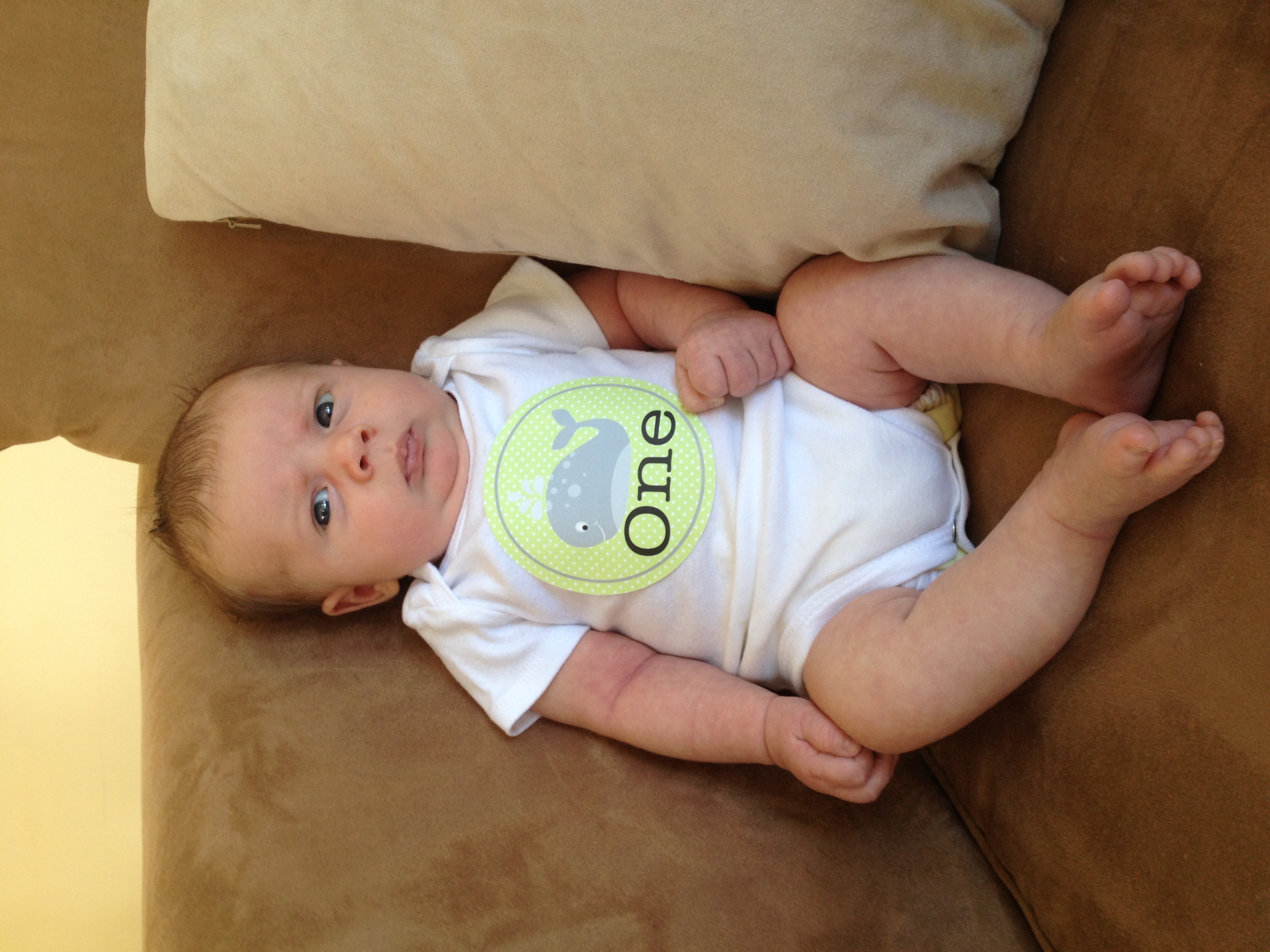 And here's his one month pic. Disclaimer: I am FAR from a professional photographer! But I did make the volleyball month sign.