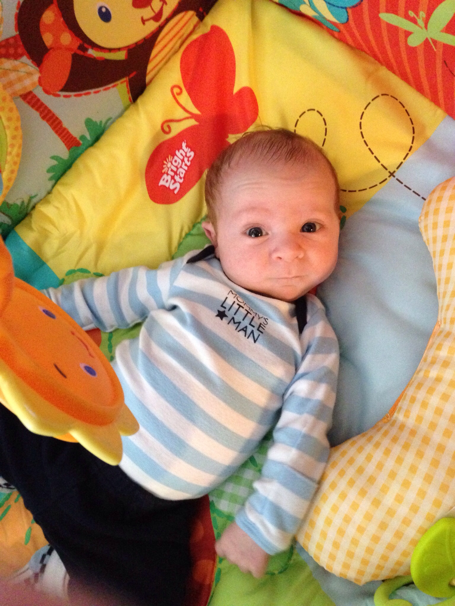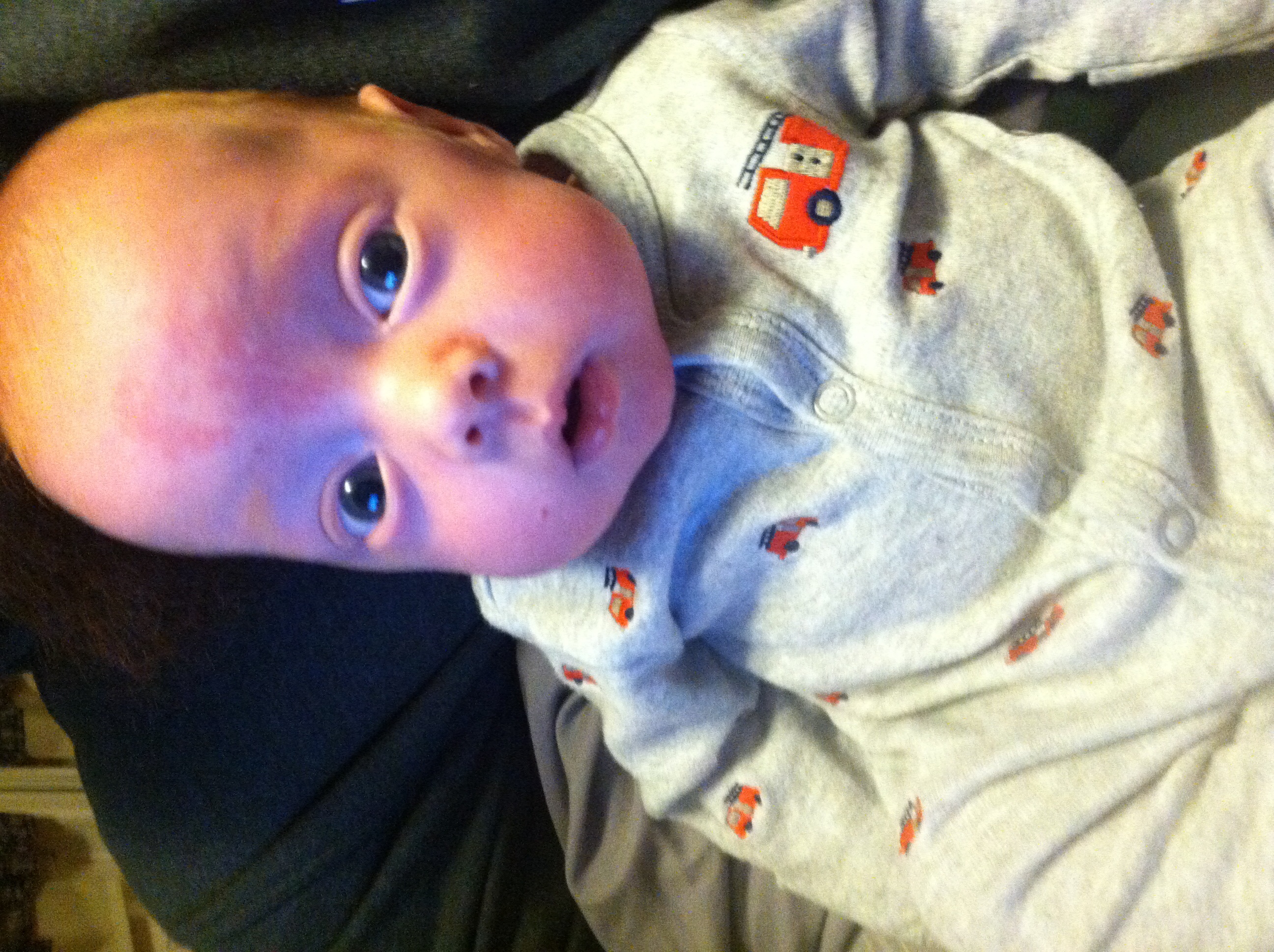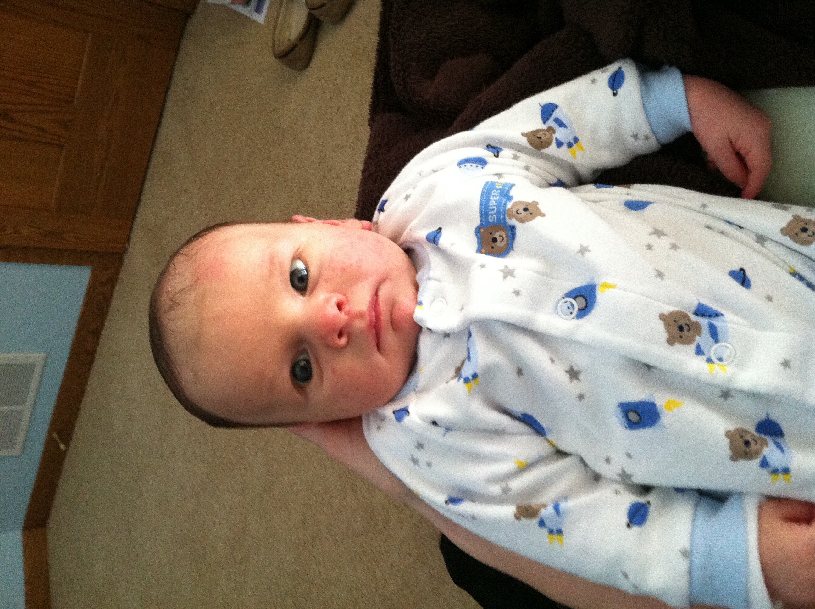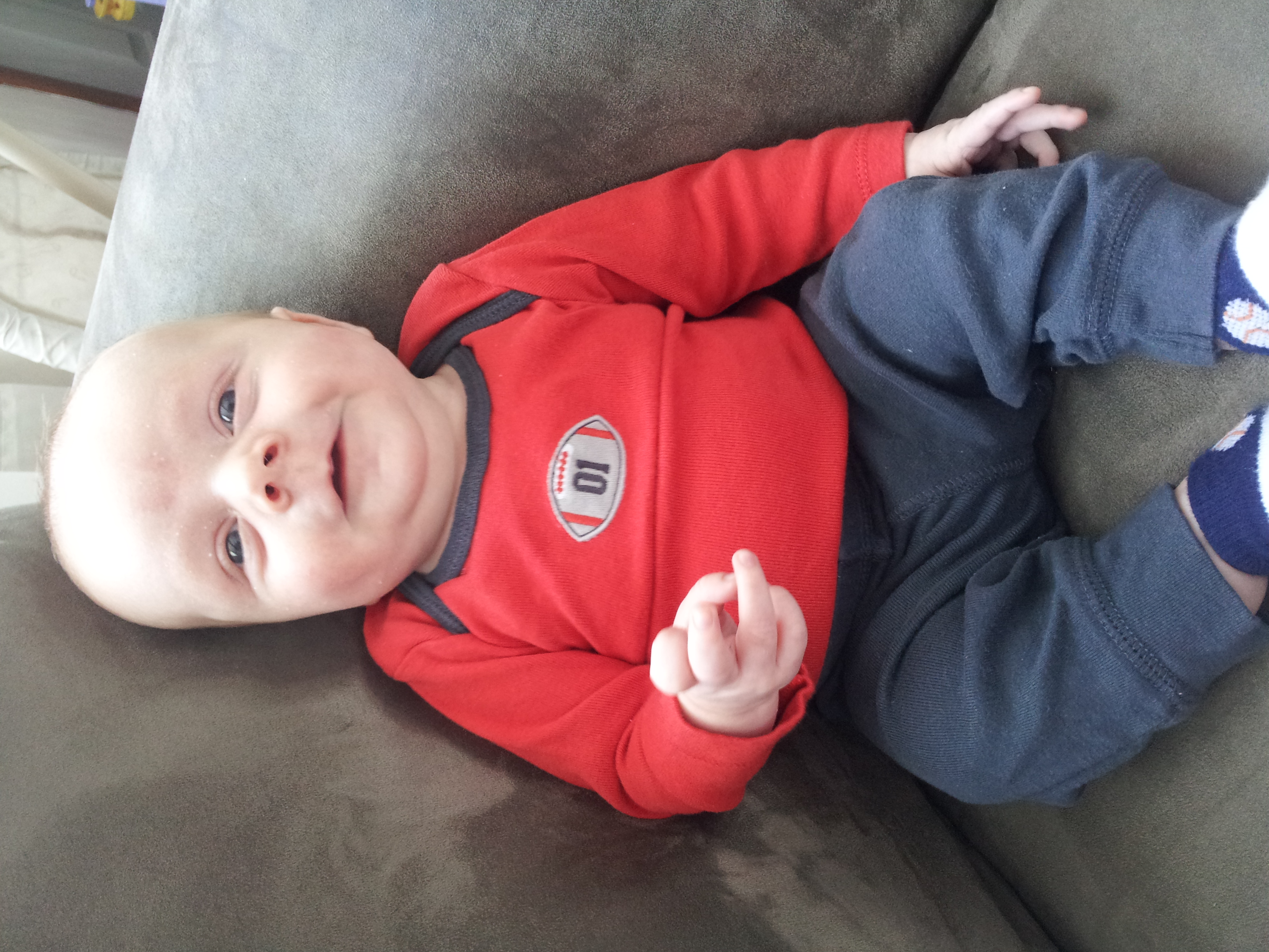 I posted this pic today because he's wearing the jammies that @moosebaby2011 gave him.