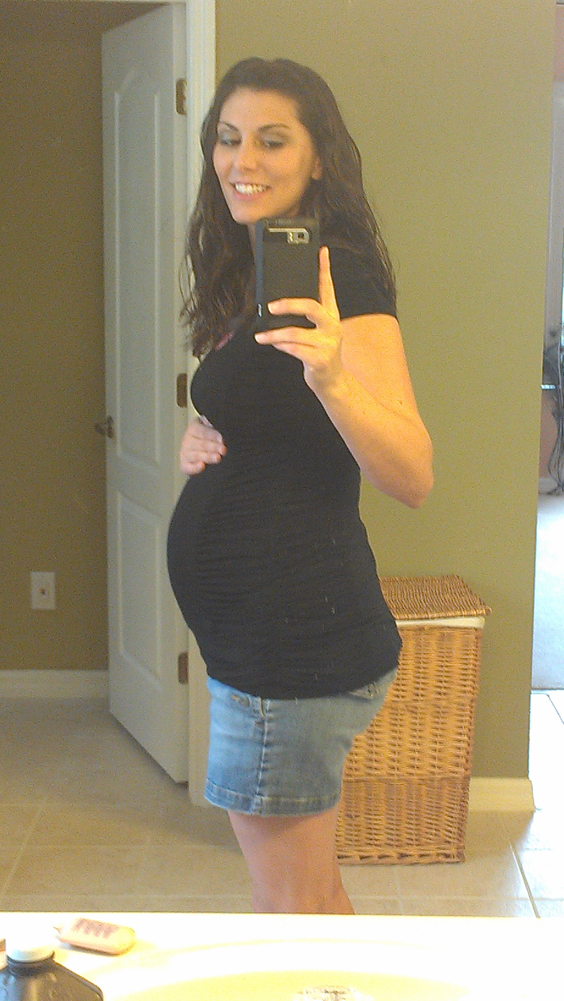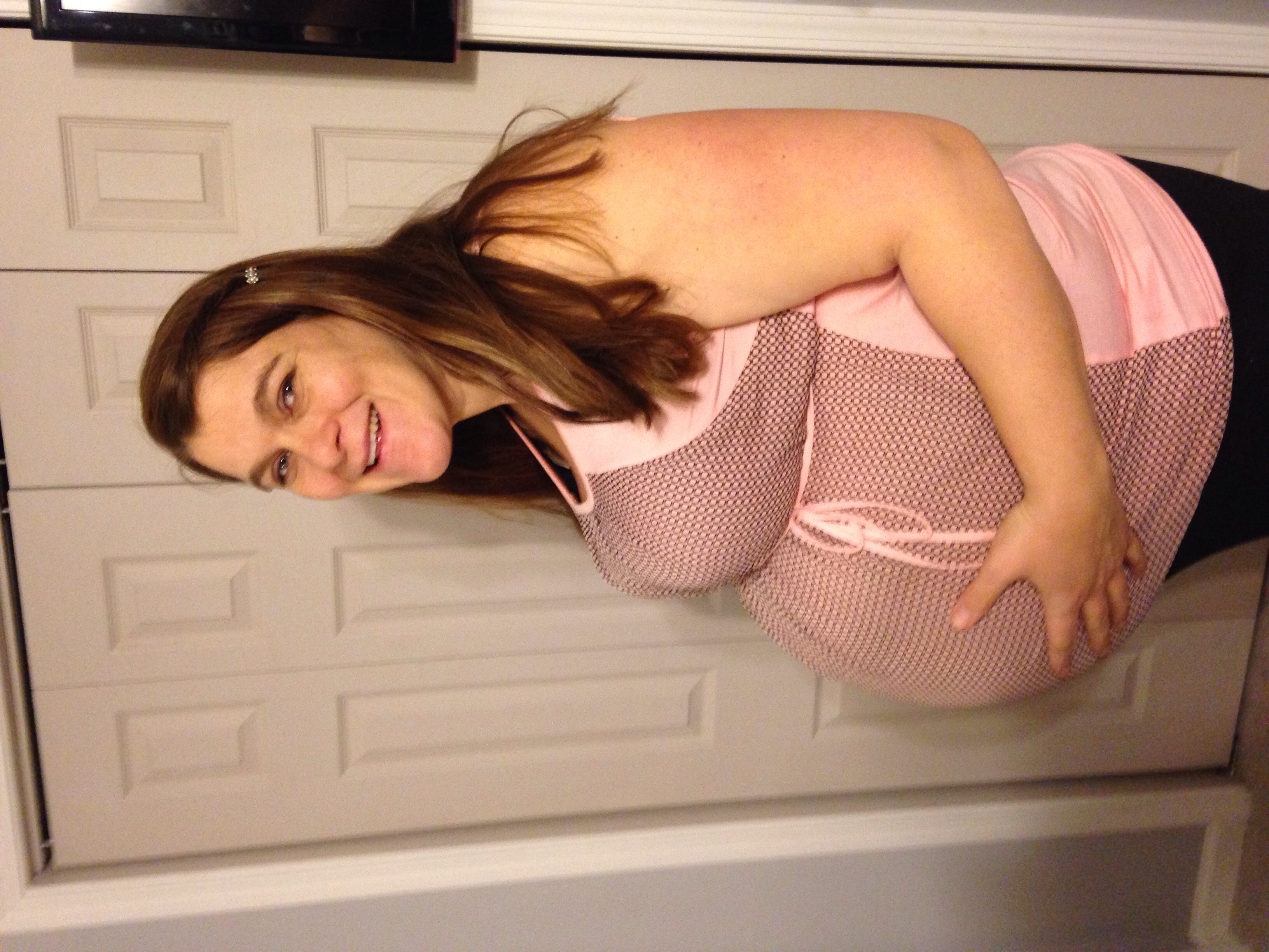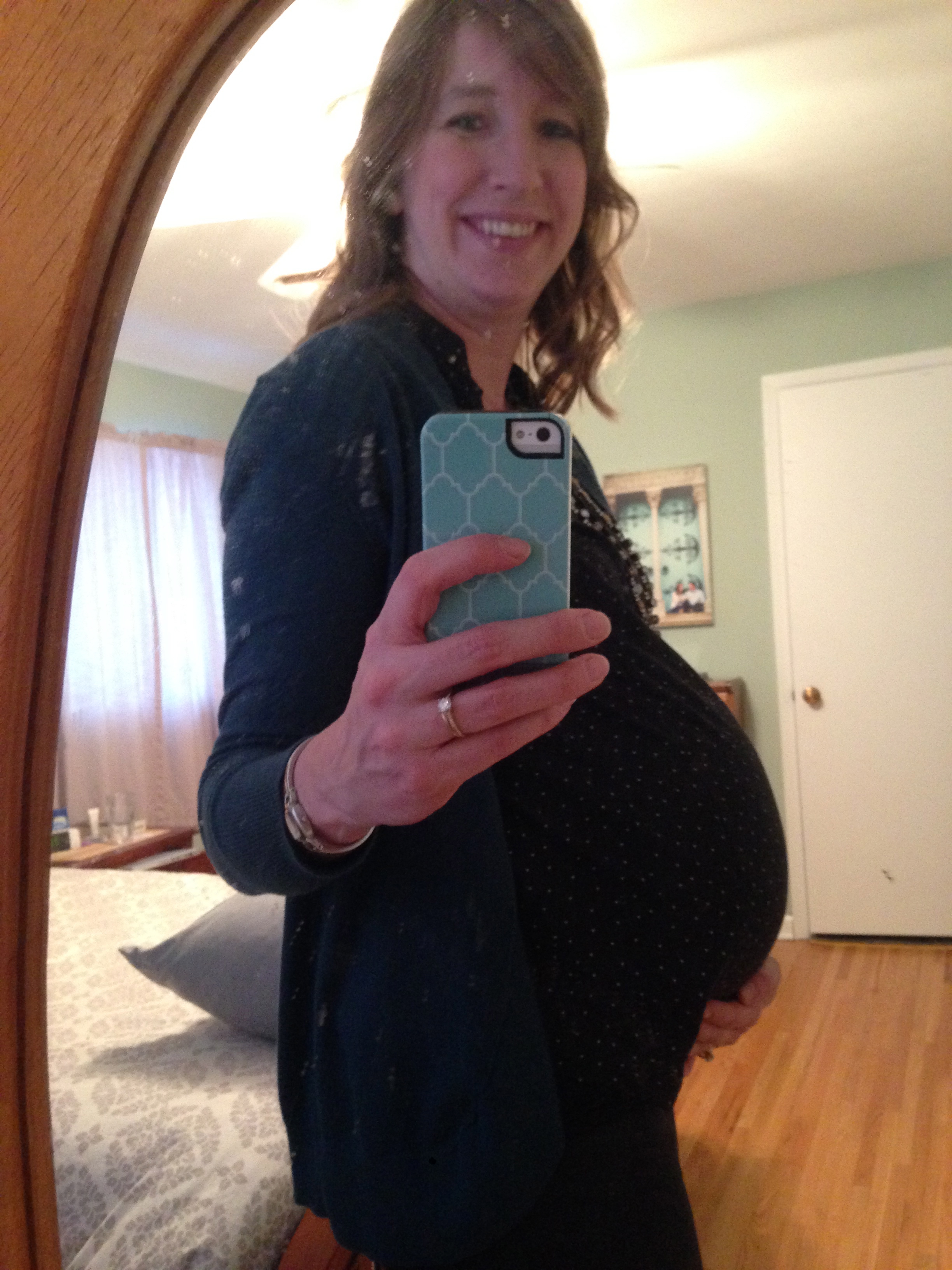 Ahhh those classy work bathroom shots. 33 weeks. I normally wear a D cup so it's fun to see a bump well exceed beyond the boobs, making the boobs appear smaller. Relativity! Everyone looks fantastic & healthy.
