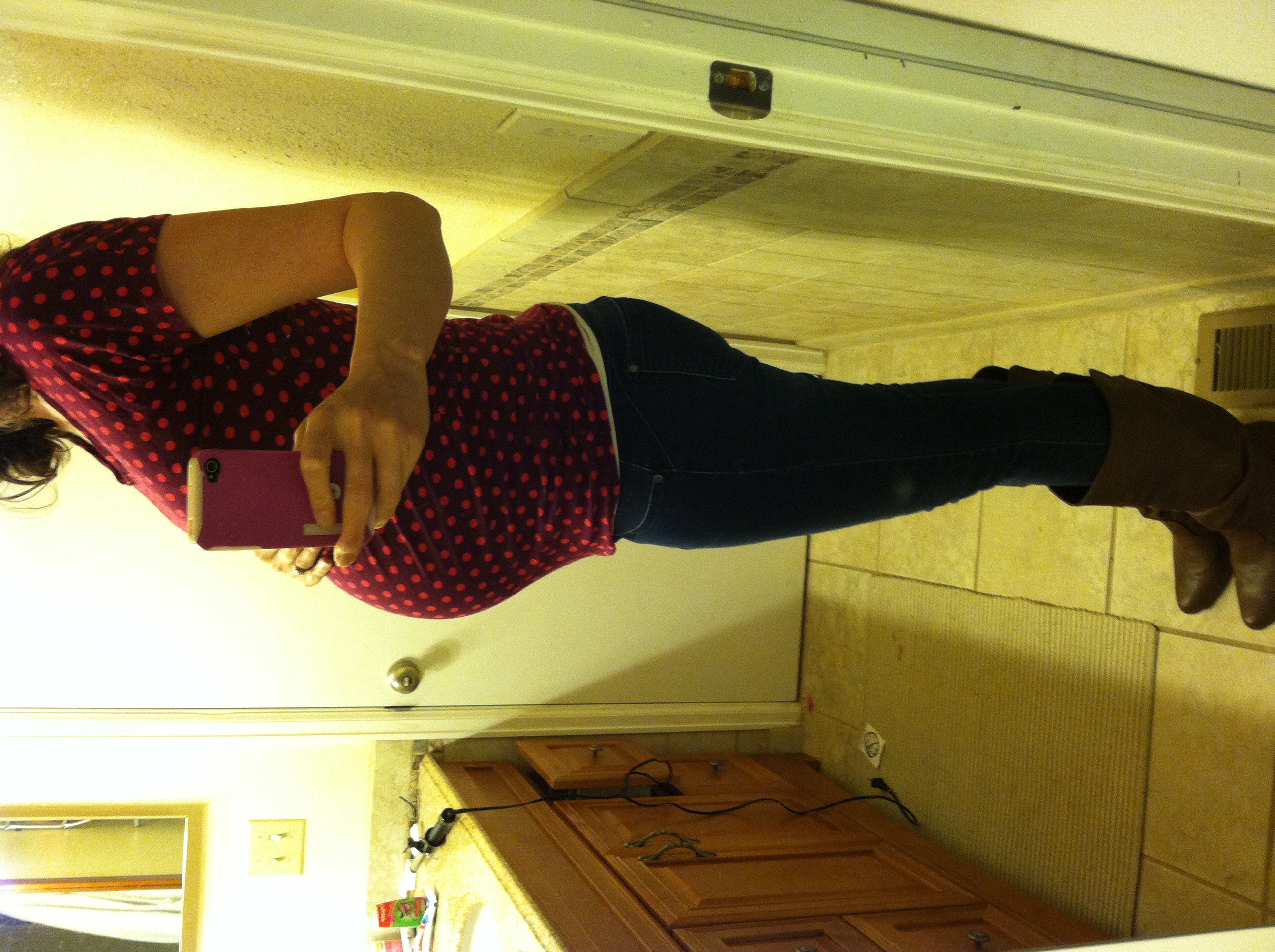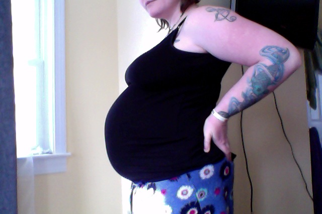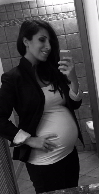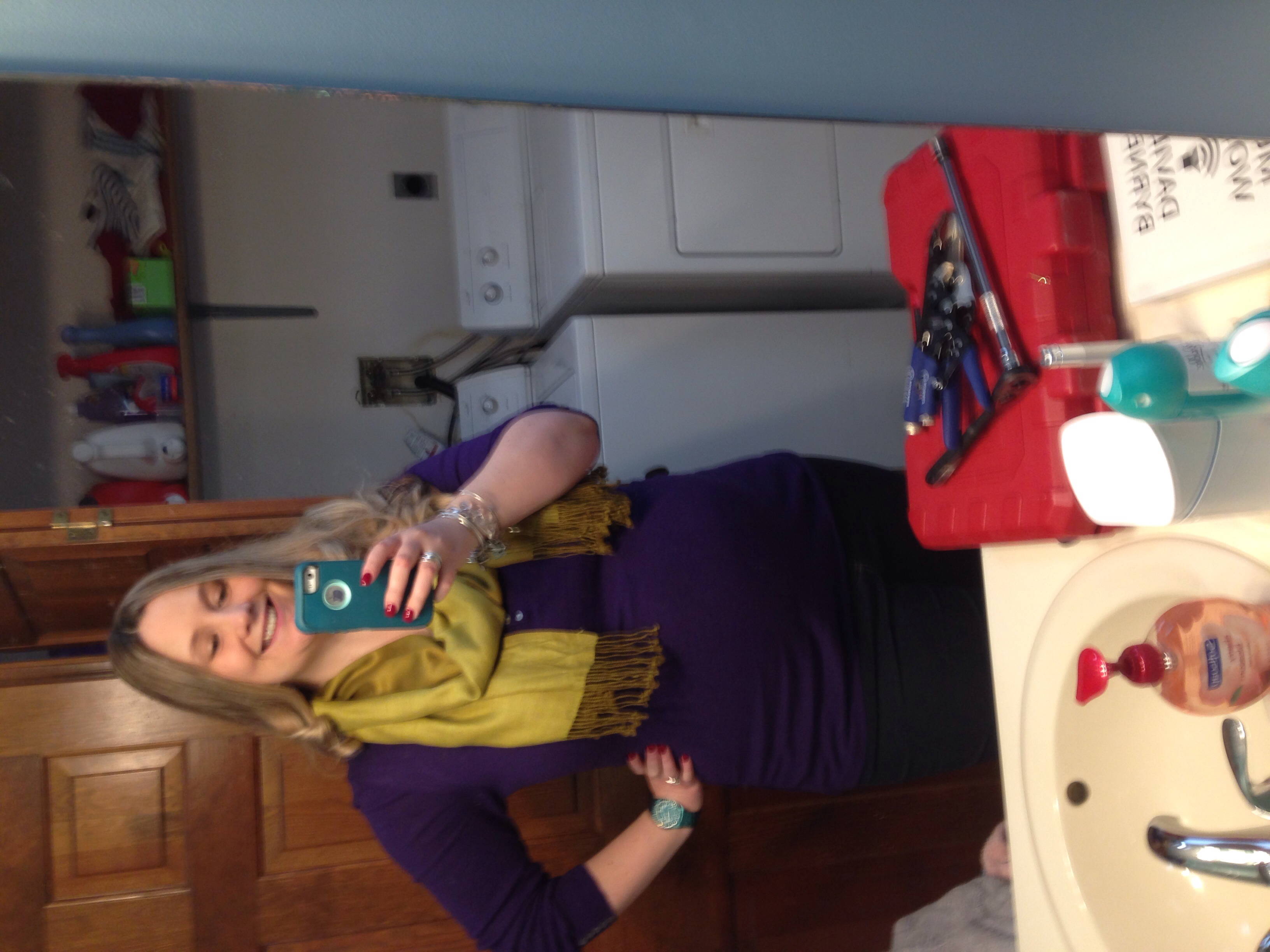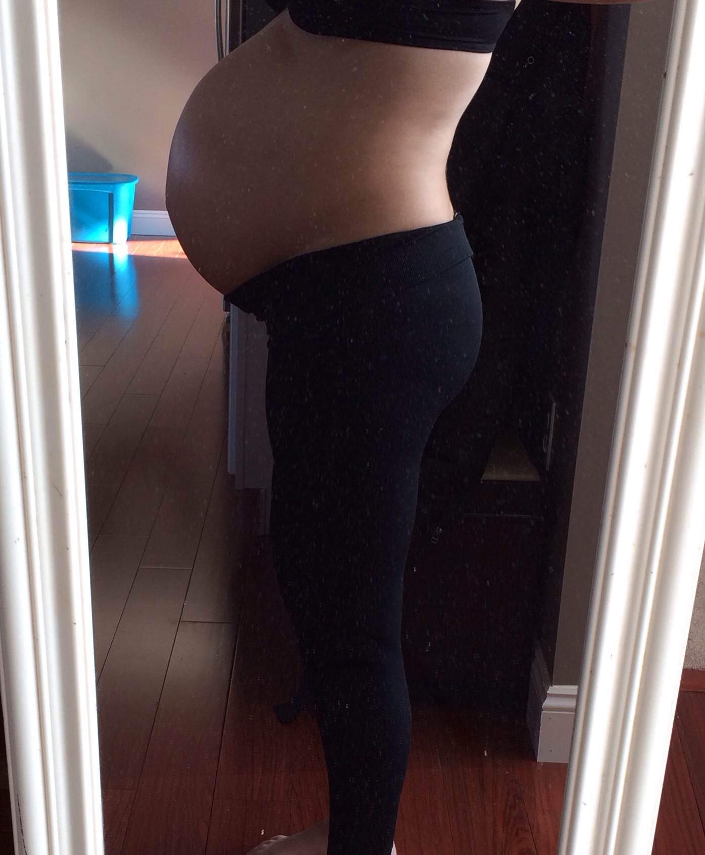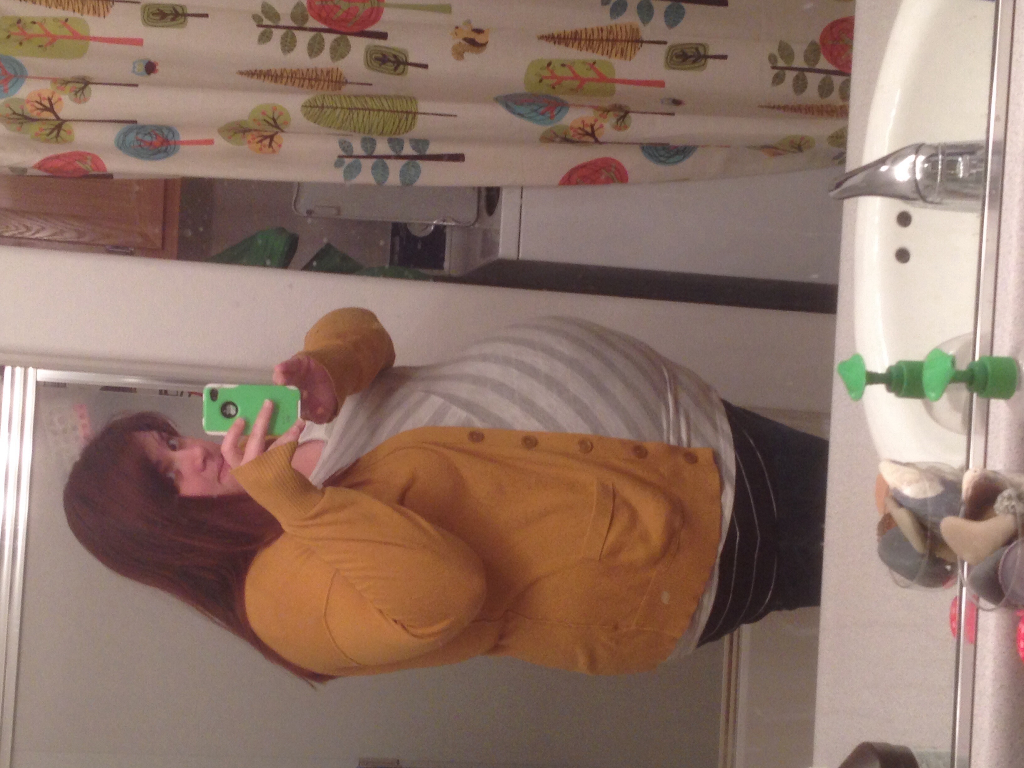 Ahhh those classy work bathroom shots. 33 weeks. I normally wear a D cup so it's fun to see a bump well exceed beyond the boobs, making the boobs appear smaller. Relativity! Everyone looks fantastic & healthy.