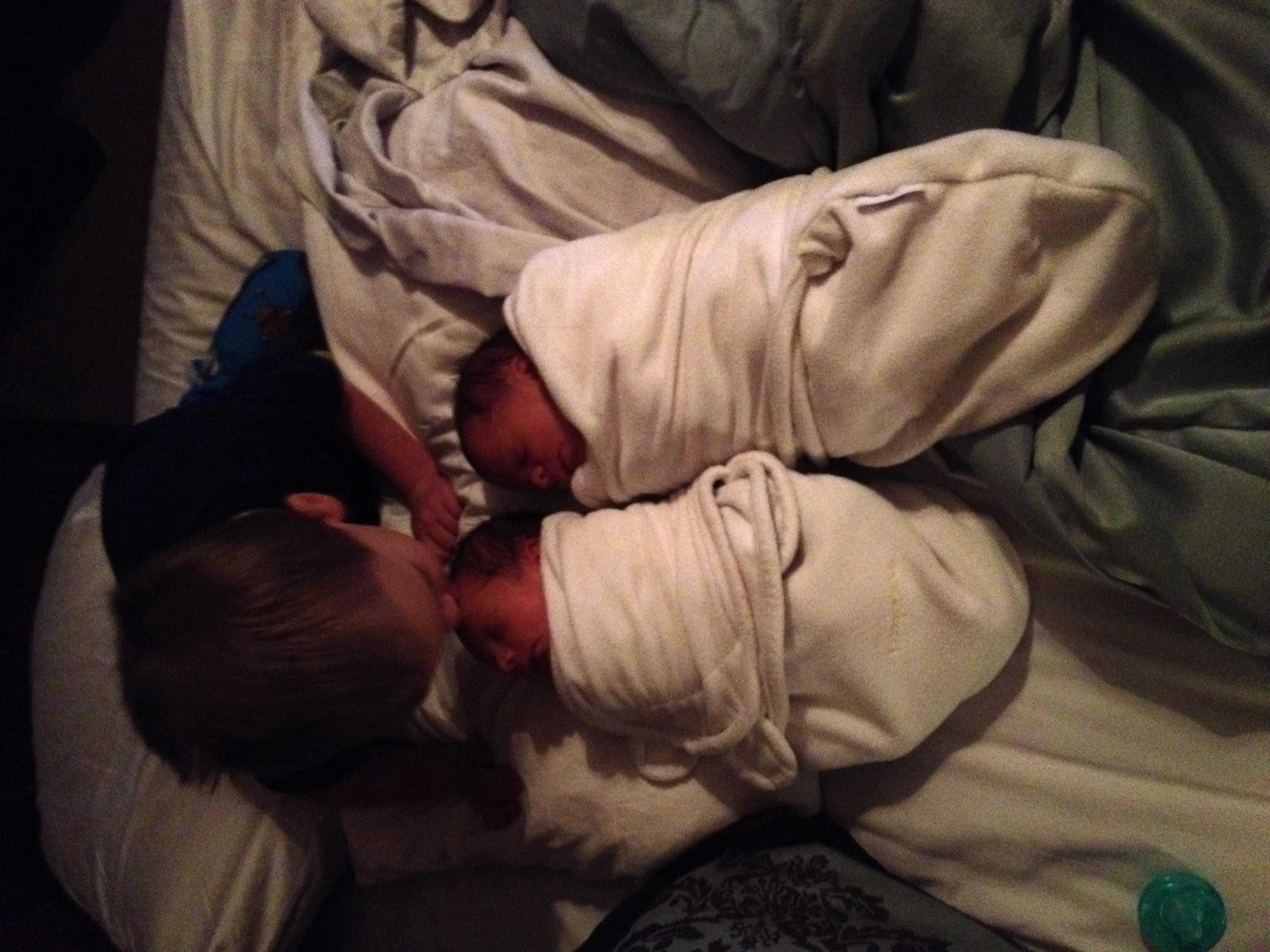 All three (I still can't believe I've got 3!!!) of my boys cuddling in the big bed.