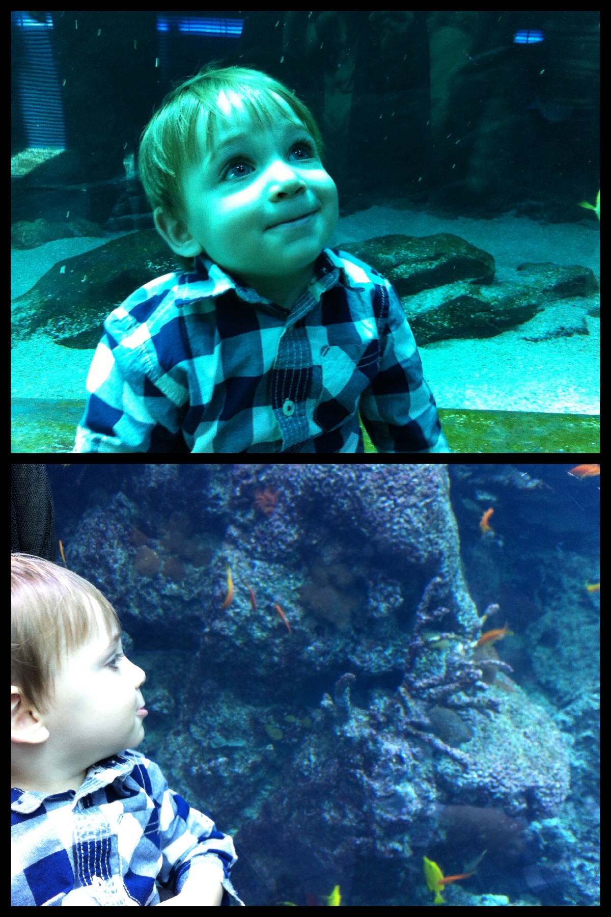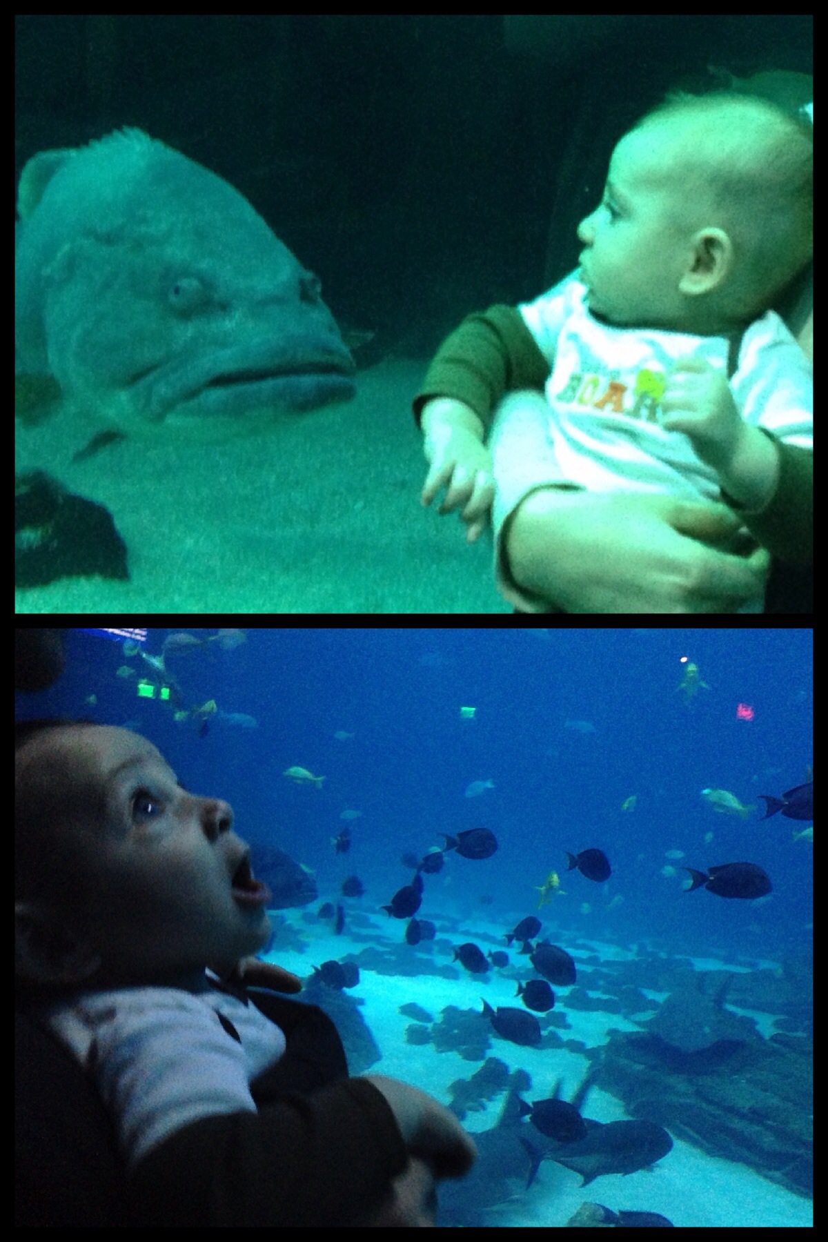 I took DS to the aquarium today and did a quick comparison to when we went last March. DS has grown! I tried to get a pic of him standing or walking in front of the big tanks, but he ran away every time I set him down, so I mostly kept him in the stroller. Happy Friday, everyone!